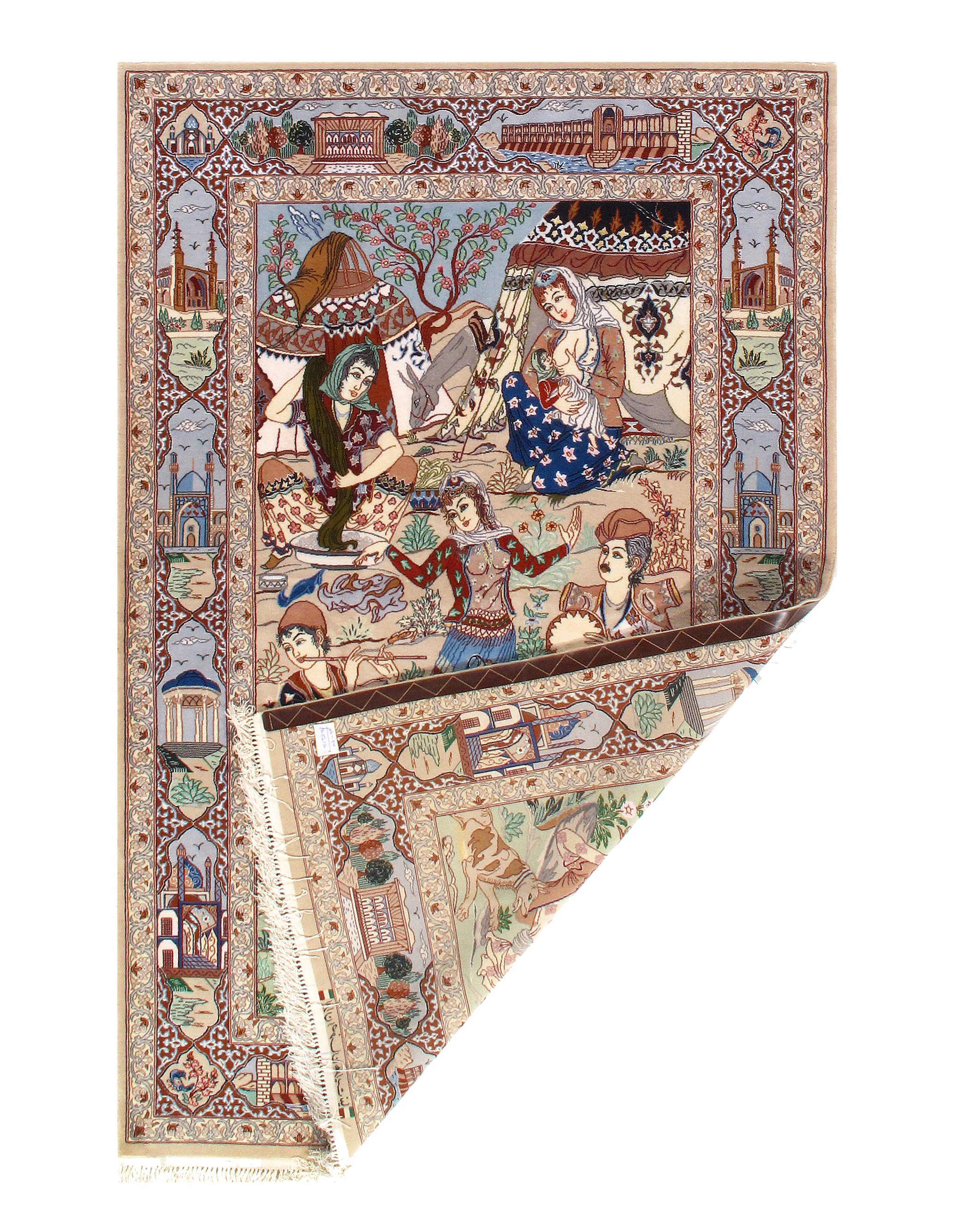 The Isfahan rugs are made with exceptionally good quality of wool & silk. They use traditional motifs inspired by architectural tiles that once decorated the historical buildings from which these rugs originated in. When it comes to high class designs the composition, patterns, and materials of Isfahan meets those expectations. The motifs usually consist of medallions with palmetts and also figural motifs. Isfahan rugs have an extremely high knot density and are woven with silk and golden threads, which give them their luxurious look.