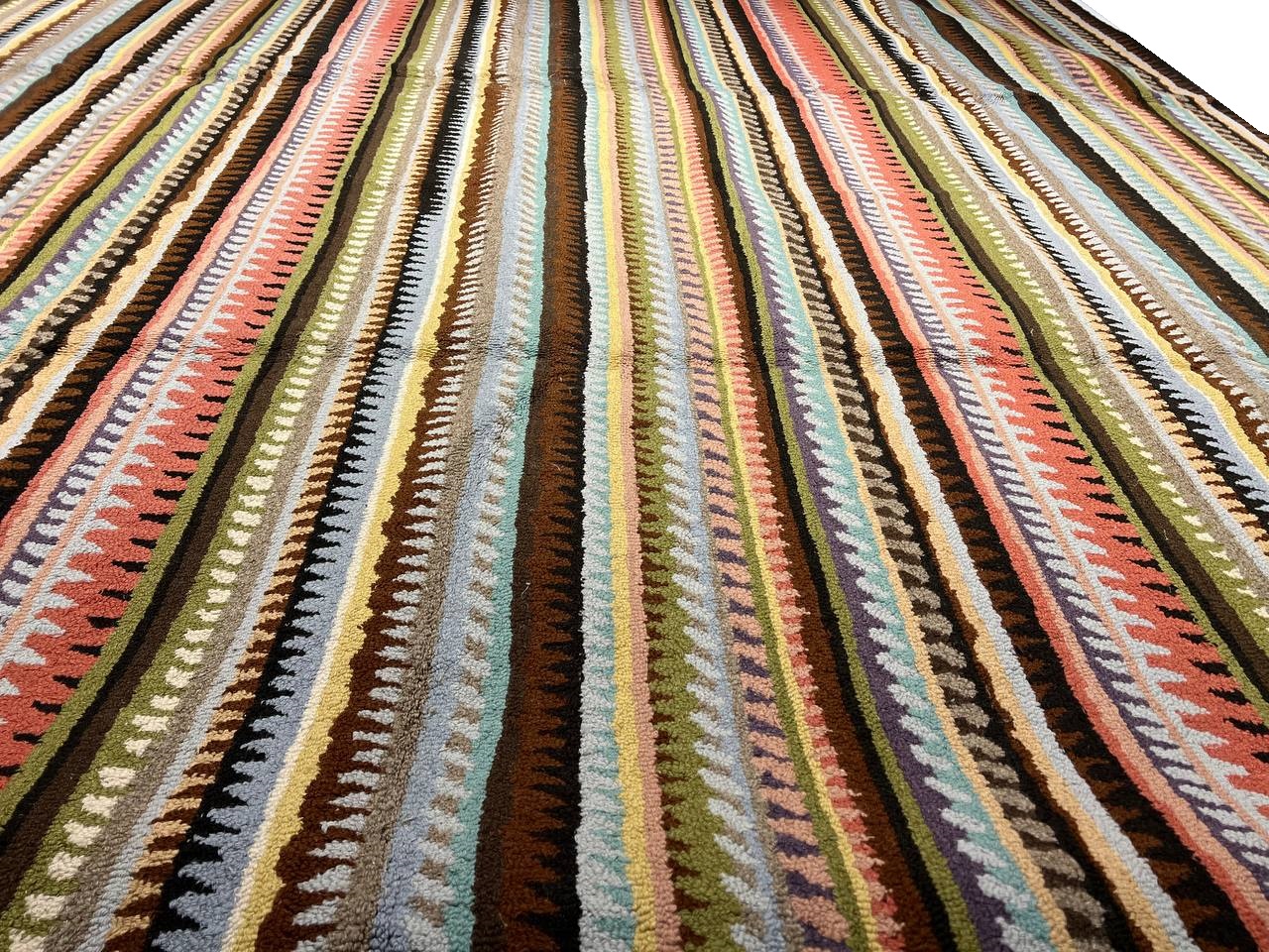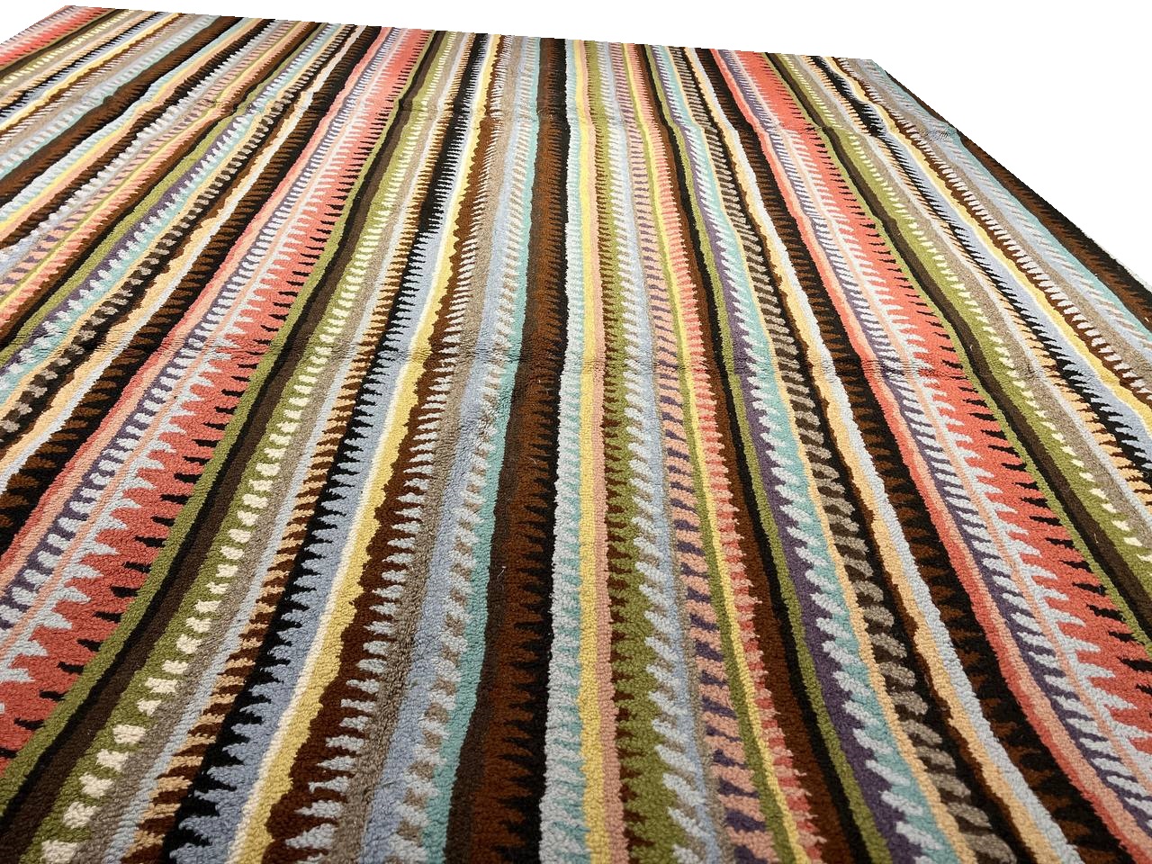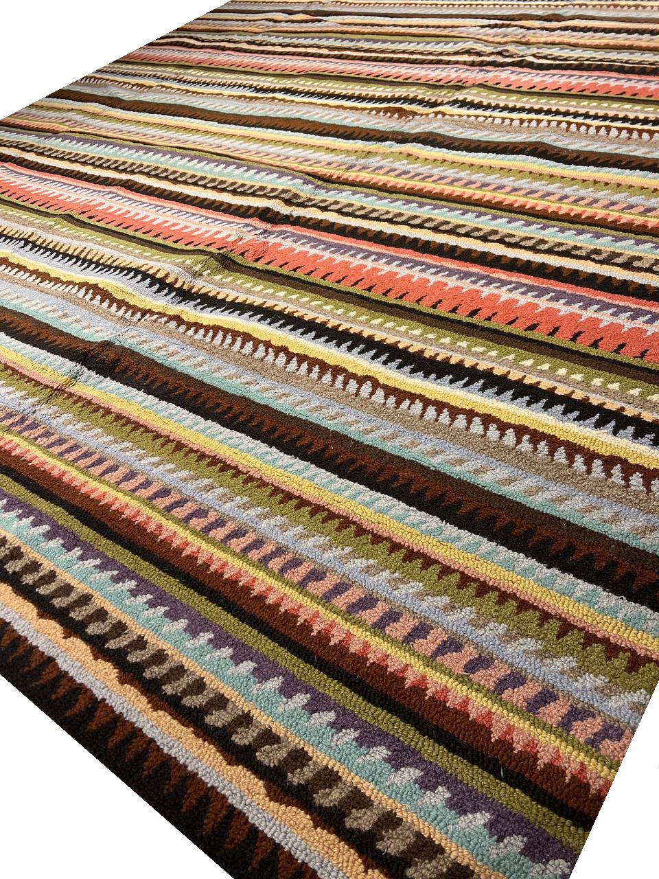 This collection breathes life into any living space with its varied color palette which includes shades of persimmon Green & Beige,red brown . The rugs feature lively patterns with a focus on diagonals with broad variation across the collection. This hand- tufted area rug is made from soft durable fibers and are crafted to stand the test of time.