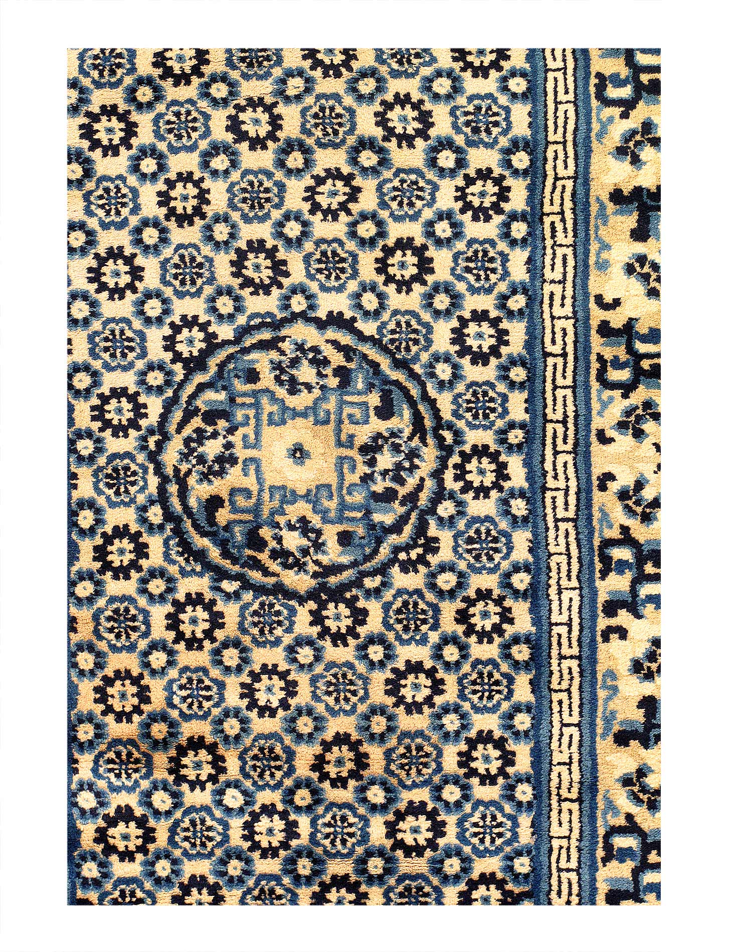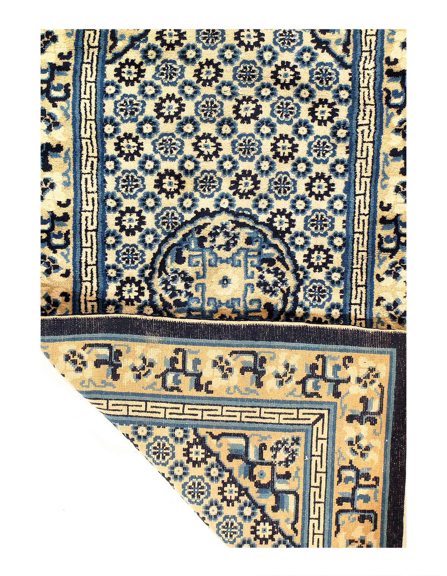 Very fine lamb's wool pile and cotton foundation. Hand-woven Peking rug. This rug has a dense, soft pile, and excellent quality, to ensure that you will enjoy the look and feel of your rug for years to come. Circa 1920 D12303