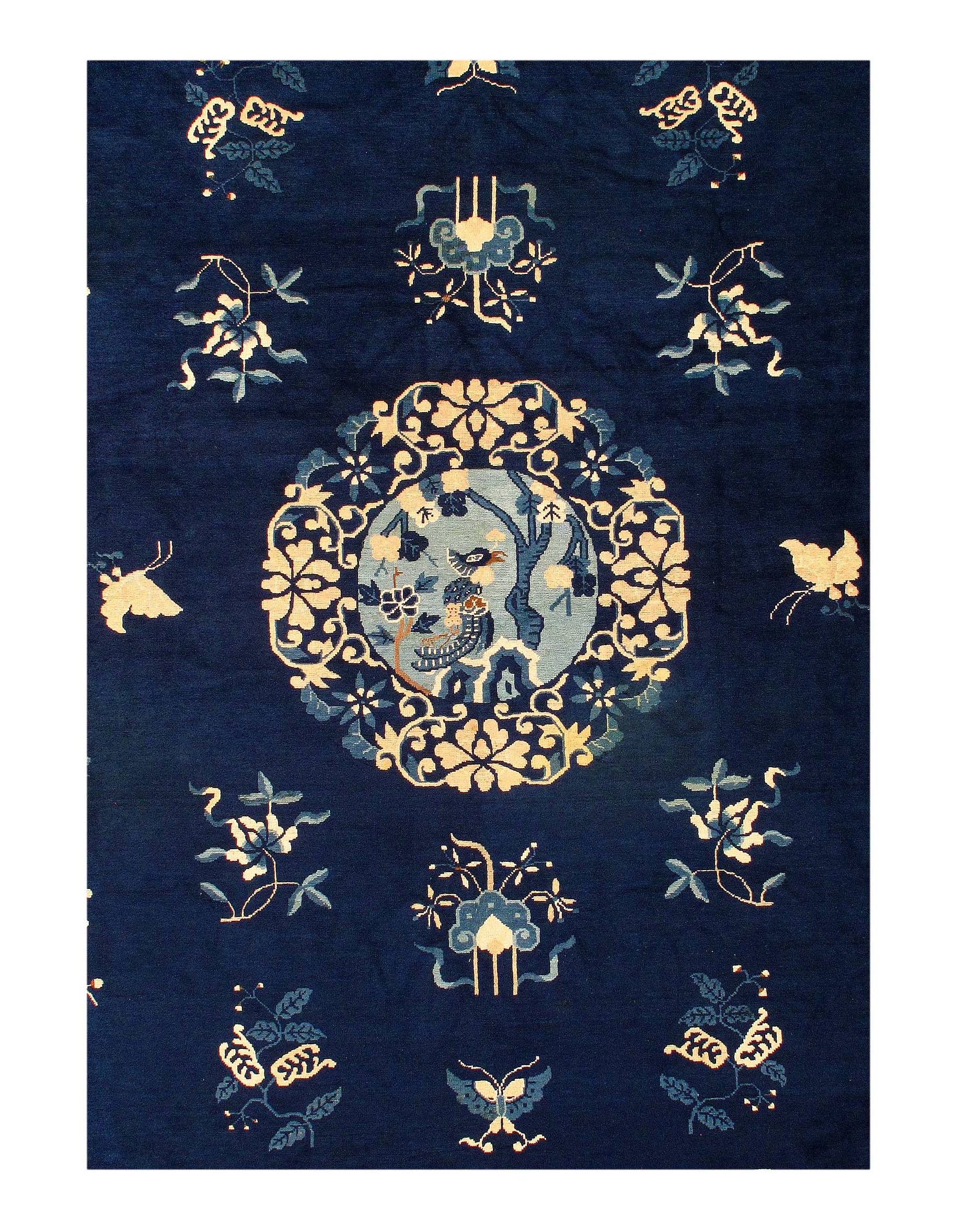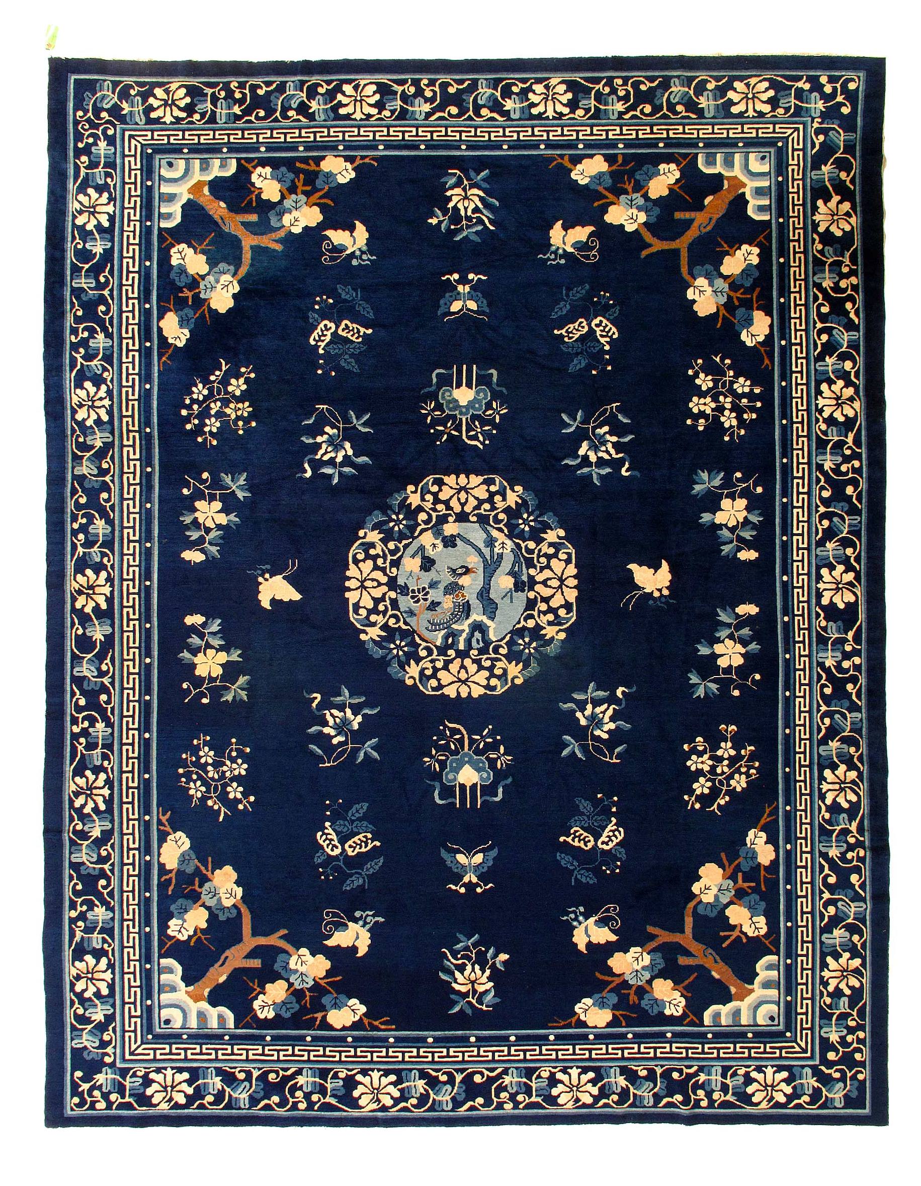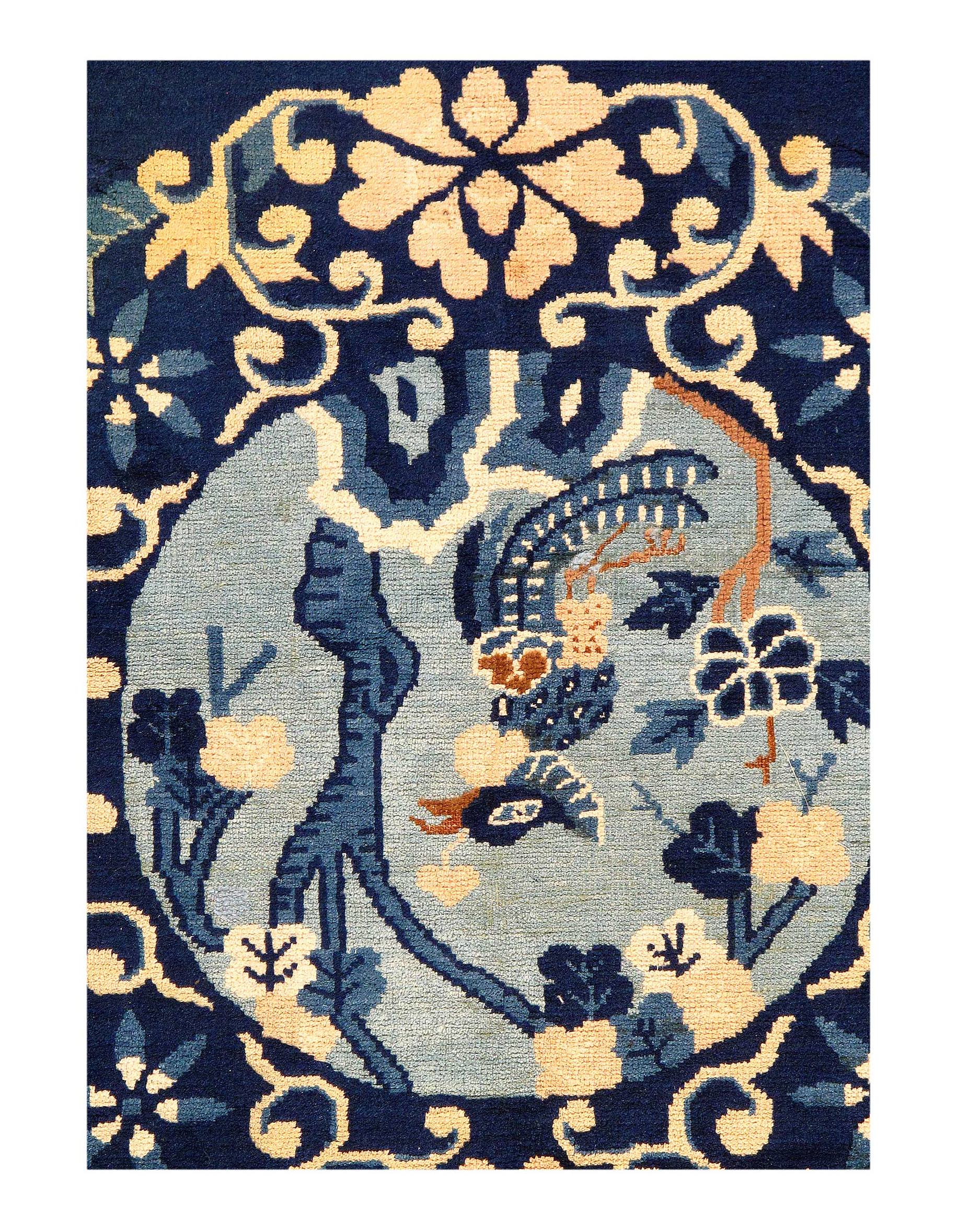 Antique Chinese Deco Rug, Origin: China, Circa: Early 20th Century – Here is an exciting and appealing antique Oriental carpet – an antique Art Deco rug that was designed and woven in China during the early years of the twentieth century. Heavily informed by the aesthetic inclinations of the Art Deco period, this unique carpet is a compelling and thought-provoking example. A scalloped Purple encloses a Light Green sand field on this exquisitely subtle and restrained antique Chinese Art Deco. At first the field appears empty or open, but it is actually covered by a tone-on-tone design of scrolls and cloud-bands emanating inward from the outer edges. In their sinuous rhythms they echo the scalloped forms of the border and continue its visual effects across the carpet in a more subdued manner. This carpet testifies to the masterful design sensibilities of Chinese weavers as they made the transition into the modern world. The Art Deco movement had an outside influence on the world of art and design, and some of the most important qualities and characteristics of that movement may be found in this fine rug.