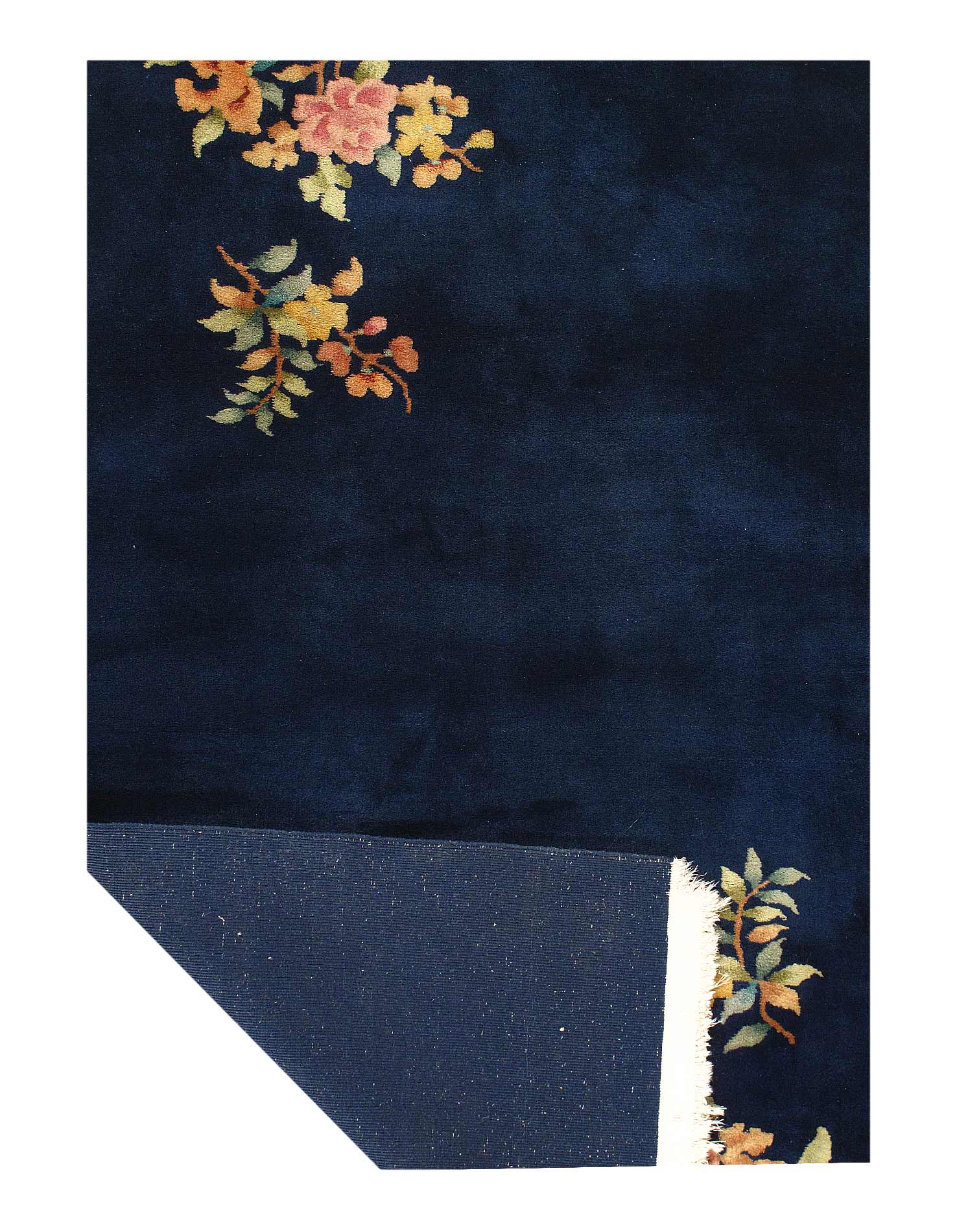 Antique Chinese Deco Rug, Origin: China, Circa: Early 20th Century – Here is an exciting and appealing antique Oriental carpet – an antique Art Deco rug that was designed and woven in China during the early years of the twentieth century. Heavily informed by the aesthetic inclinations of the Art Deco period, this unique carpet is a compelling and thought-provoking example. A scalloped Purple encloses a Light Green sand field on this exquisitely subtle and restrained antique Chinese Art Deco. At first the field appears empty or open, but it is actually covered by a tone-on-tone design of scrolls and cloud-bands emanating inward from the outer edges. In their sinuous rhythms they echo the scalloped forms of the border and continue its visual effects across the carpet in a more subdued manner. This carpet testifies to the masterful design sensibilities of Chinese weavers as they made the transition into the modern world. The Art Deco movement had an outside influence on the world of art and design, and some of the most important qualities and characteristics of that movement may be found in this fine rug.