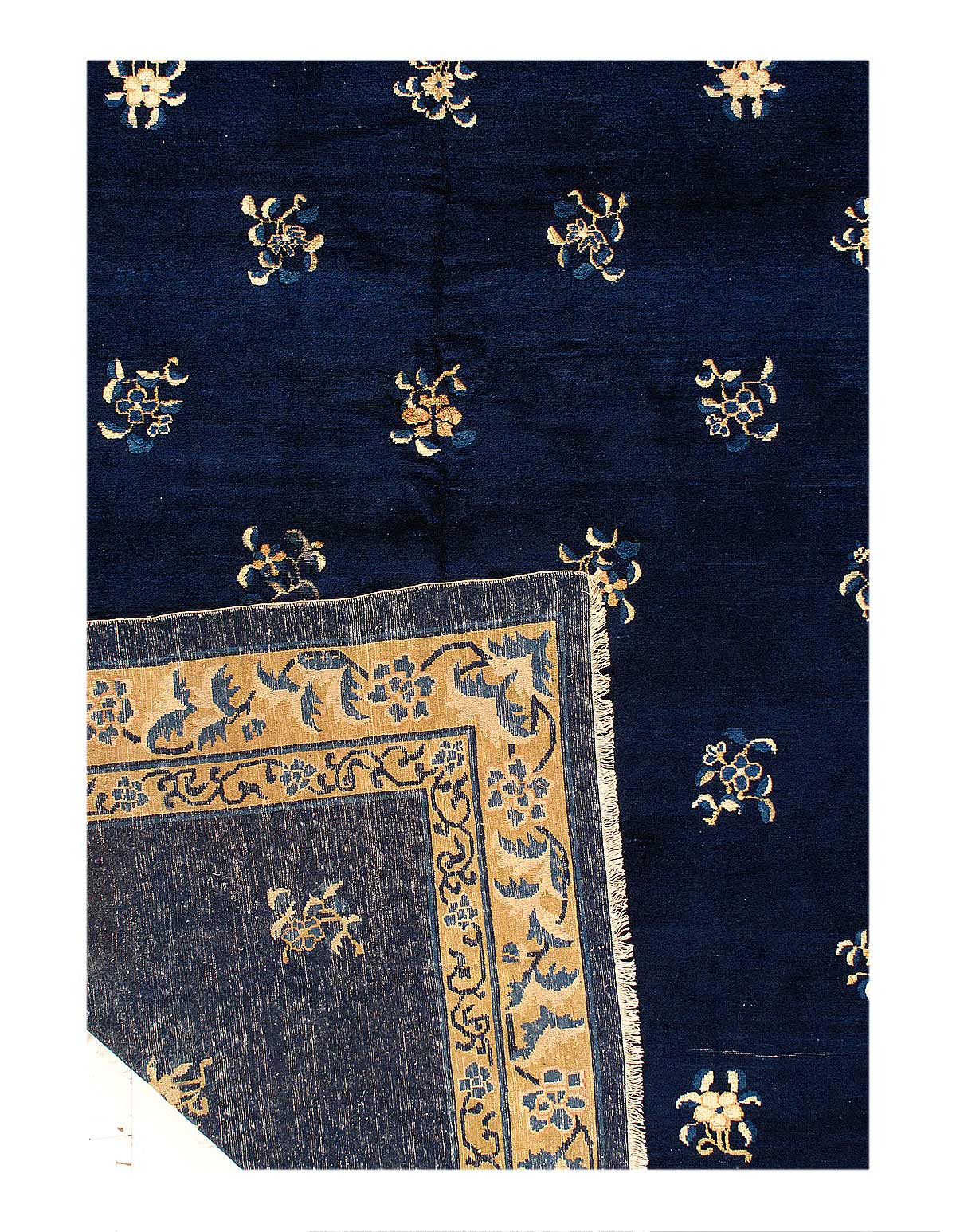 Antique Chinese Peking, Origin: China, Circa: Early 20th Century – Here is an exciting and appealing antique Oriental carpet – an antique Peking rug that was designed and woven in China during the early years of the twentieth century. Heavily informed by the aesthetic inclinations of the Peking period, this unique carpet is a compelling and thought-provoking example. A scalloped Purple encloses a Light Green sand field on this exquisitely subtle and restrained antique Chinese Peking, At first the field appears empty or open, but it is actually covered by a tone-on-tone design of scrolls and cloud-bands emanating inward from the outer edges. In their sinuous rhythms they echo the scalloped forms of the border and continue its visual effects across the carpet in a more subdued manner. This carpet testifies to the masterful design sensibilities of Chinese weavers as they made the transition into the modern world. The Peking movement had an outside influence on the world of art and design, and some of the most important qualities and characteristics of that movement may be found in this fine rug.