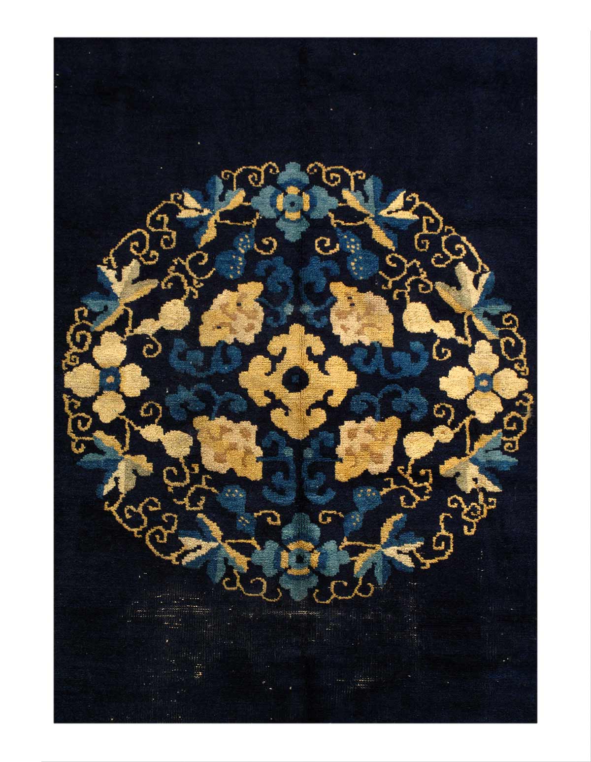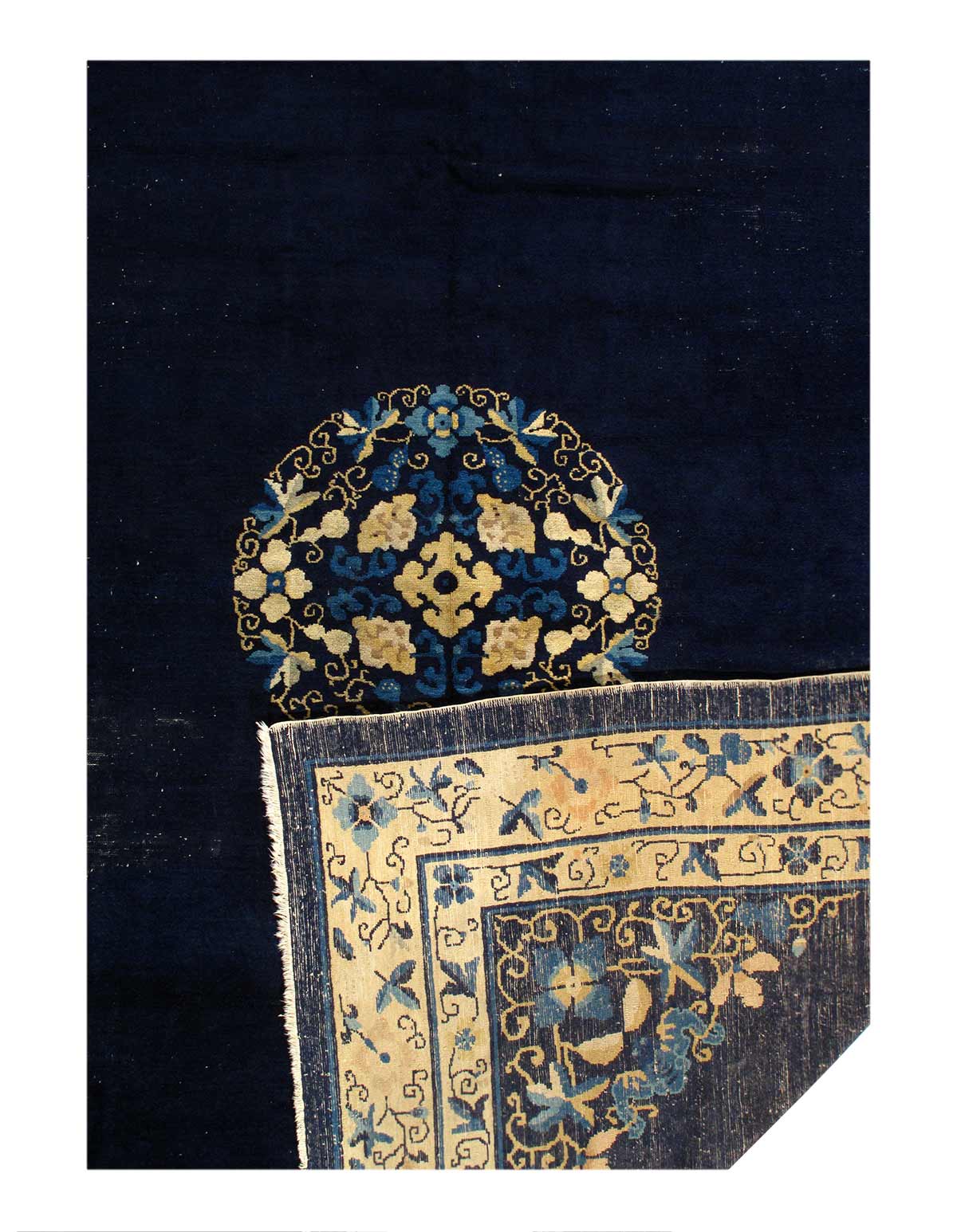 Antique Chinese Peking, Origin: China, Circa: Early 20th Century – Here is an exciting and appealing antique Oriental carpet – an antique Peking rug that was designed and woven in China during the early years of the twentieth century. Heavily informed by the aesthetic inclinations of the Peking period, this unique carpet is a compelling and thought-provoking example. A scalloped Purple encloses a Light Green sand field on this exquisitely subtle and restrained antique Chinese Peking, At first the field appears empty or open, but it is actually covered by a tone-on-tone design of scrolls and cloud-bands emanating inward from the outer edges. In their sinuous rhythms they echo the scalloped forms of the border and continue its visual effects across the carpet in a more subdued manner. This carpet testifies to the masterful design sensibilities of Chinese weavers as they made the transition into the modern world. The Peking movement had an outside influence on the world of art and design, and some of the most important qualities and characteristics of that movement may be found in this fine rug.