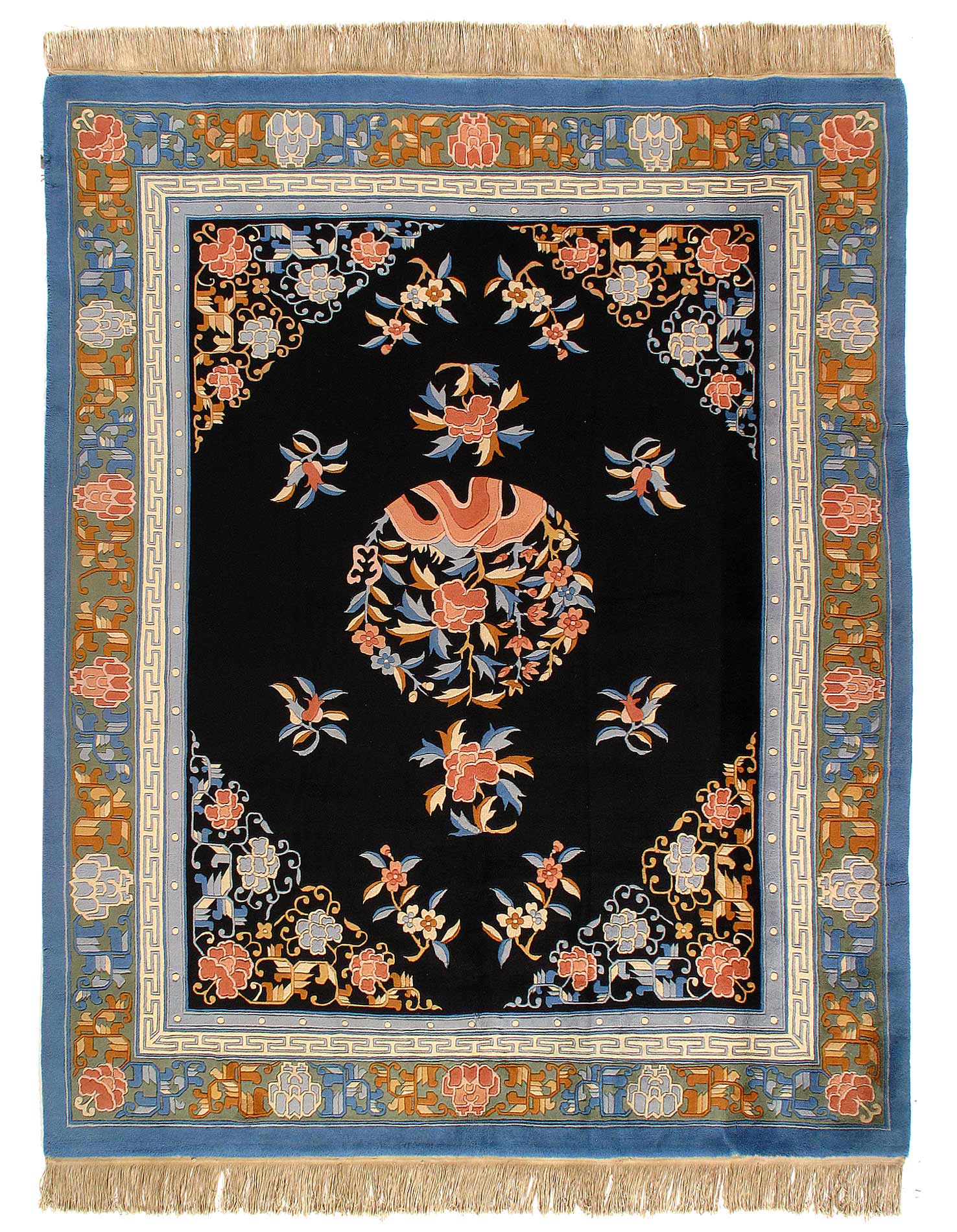 Fine Hand Knotted chinese peking lambs wool pile on cotton foundations , Chinese rugs representing a newer and fresher period of antique production that began in China immediately following the end of the First World War, peking Carpets are those antique rugs that were manufactured in the China.