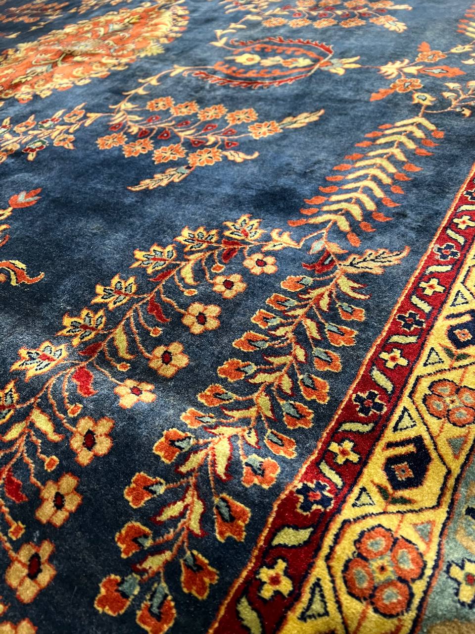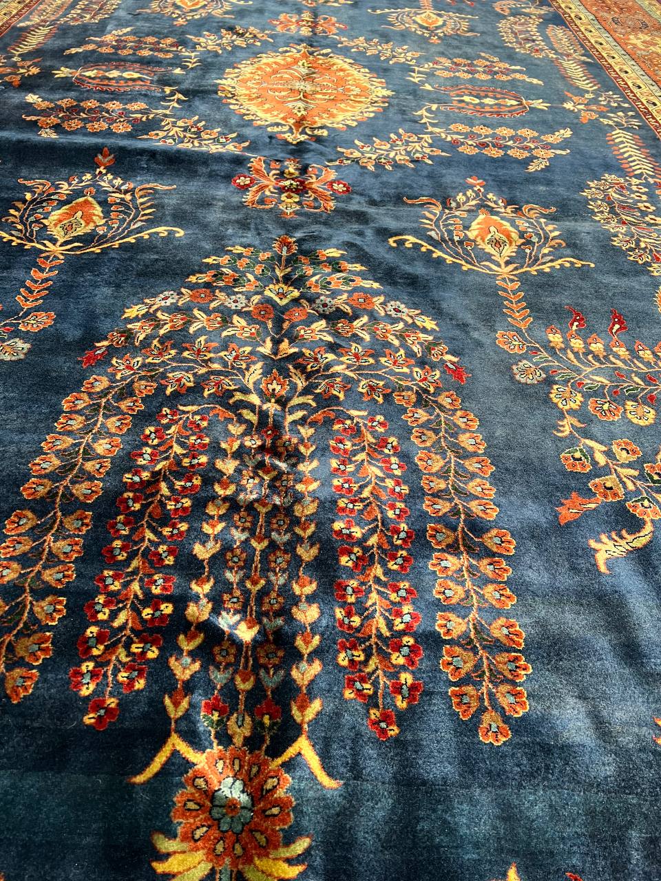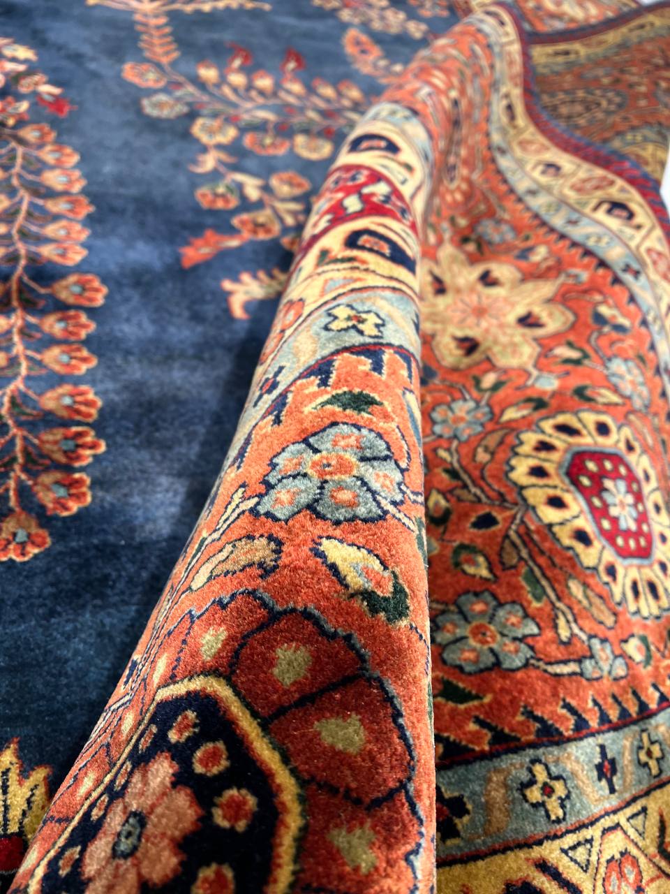 Hand knotted by weavers in a workshop in northern India using blended local with worsted New Zealand wool. The detailed traditional design requires a very fine weave, and the weavers, like all artists, have to be continually focused while working. Their hard work pays off when a rug comes out right like this one, a beautiful recreation of a Persian Sarouk. This rug will bring quality and taste to any space it lands. Pasargad rugs from these workshops are the finest traditional Indian rugs due to their fine weave, excellent workmanship, and high quality materials.