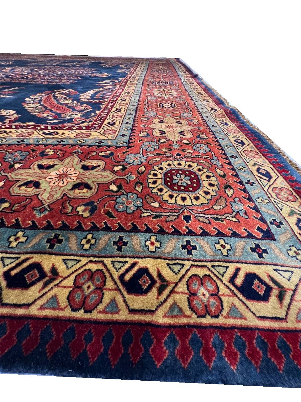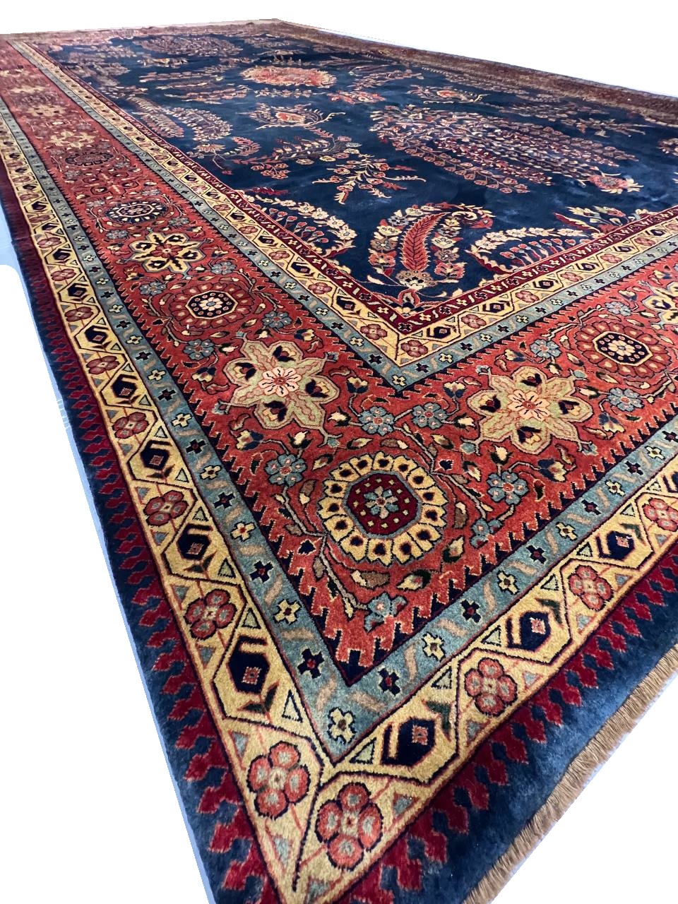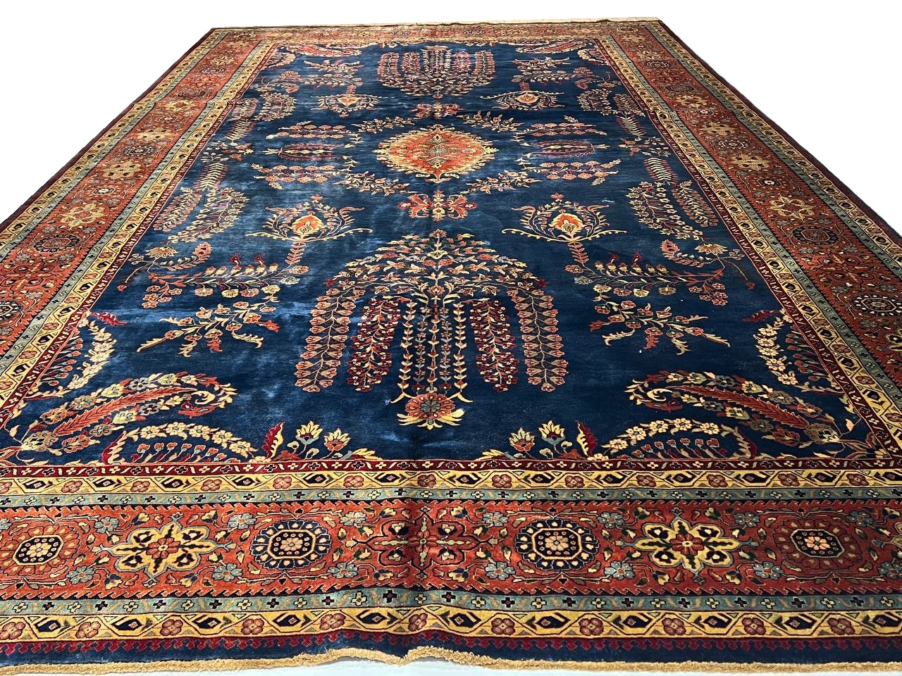 Hand knotted by weavers in a workshop in northern India using blended local with worsted New Zealand wool. The detailed traditional design requires a very fine weave, and the weavers, like all artists, have to be continually focused while working. Their hard work pays off when a rug comes out right like this one, a beautiful recreation of a Persian Sarouk. This rug will bring quality and taste to any space it lands. Pasargad rugs from these workshops are the finest traditional Indian rugs due to their fine weave, excellent workmanship, and high quality materials.