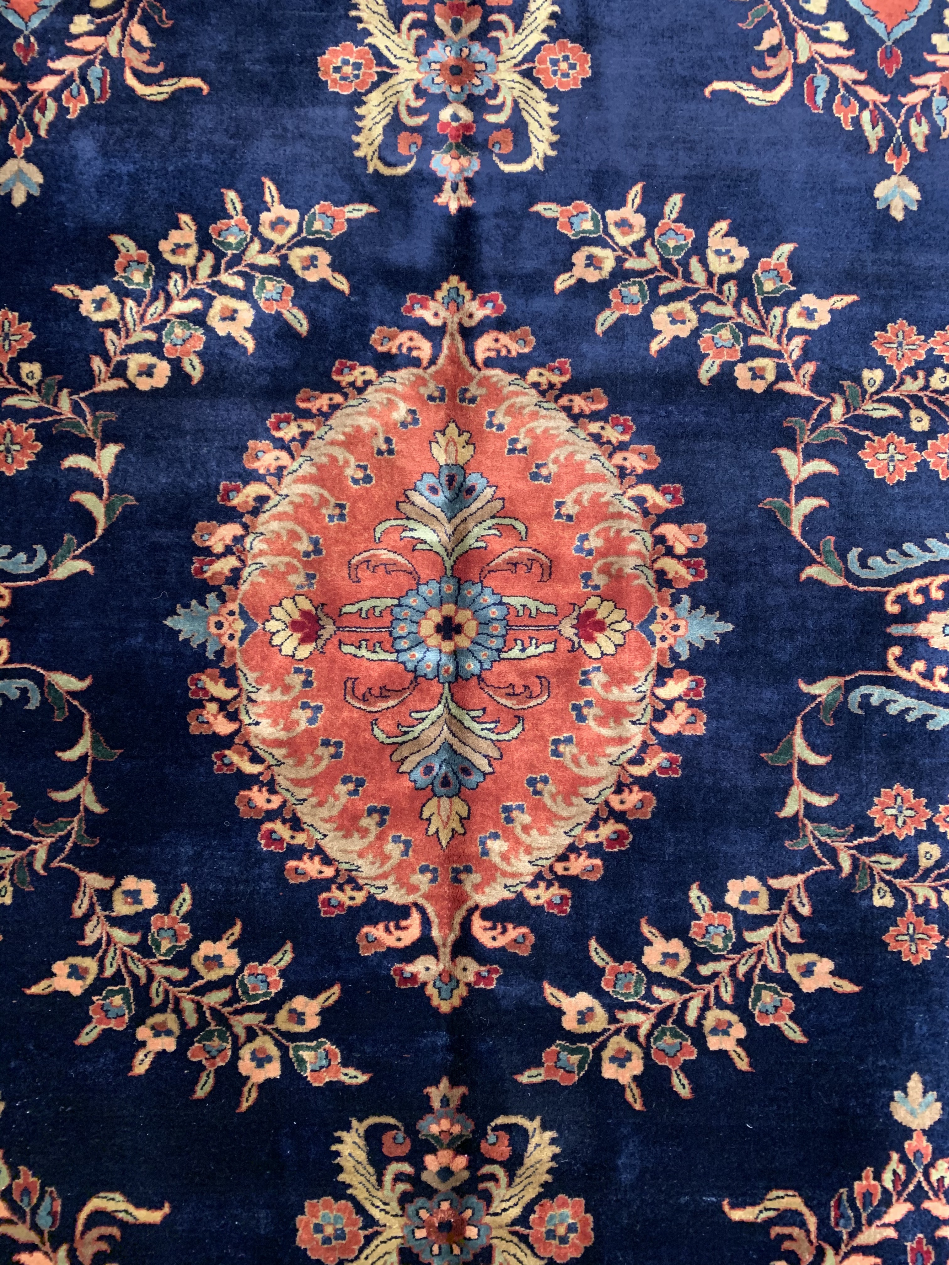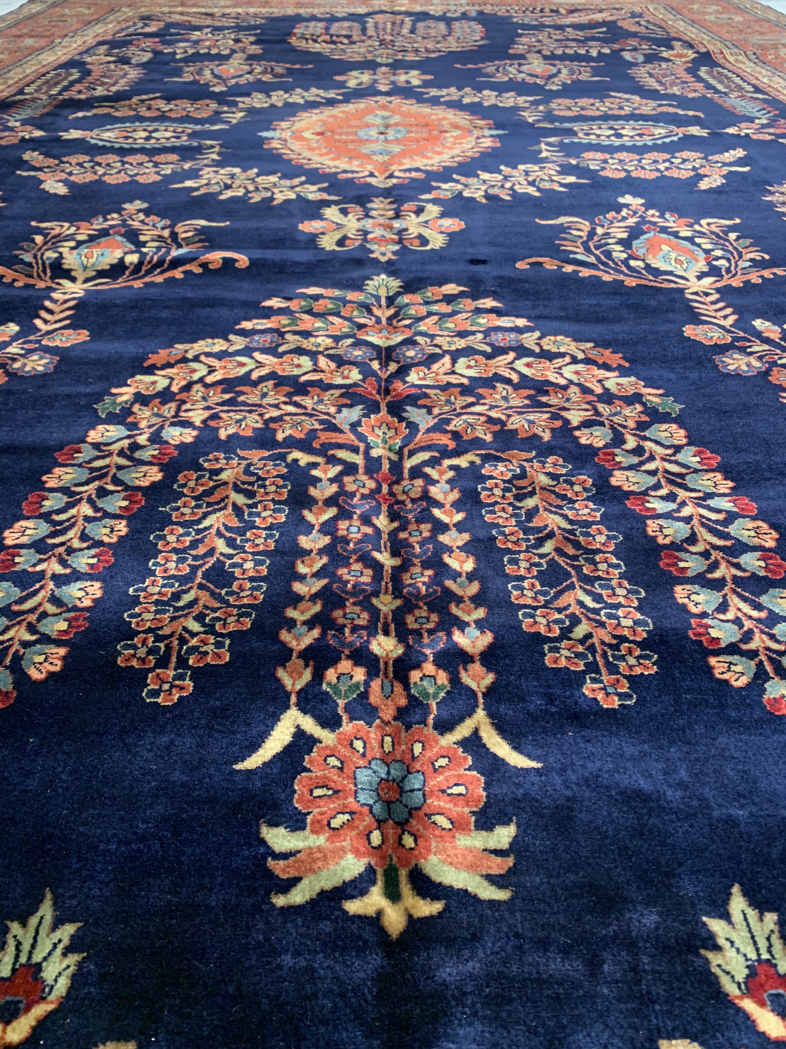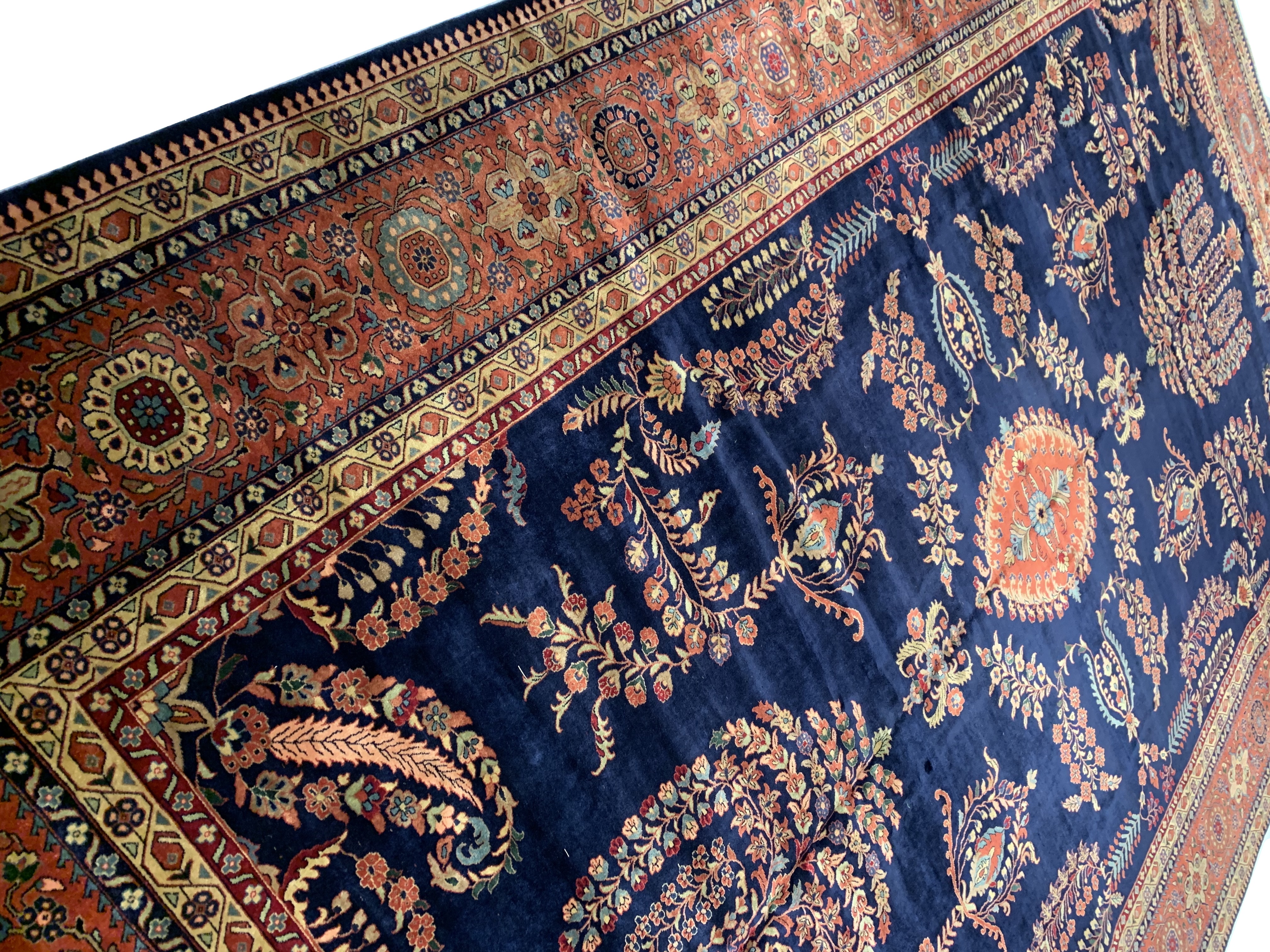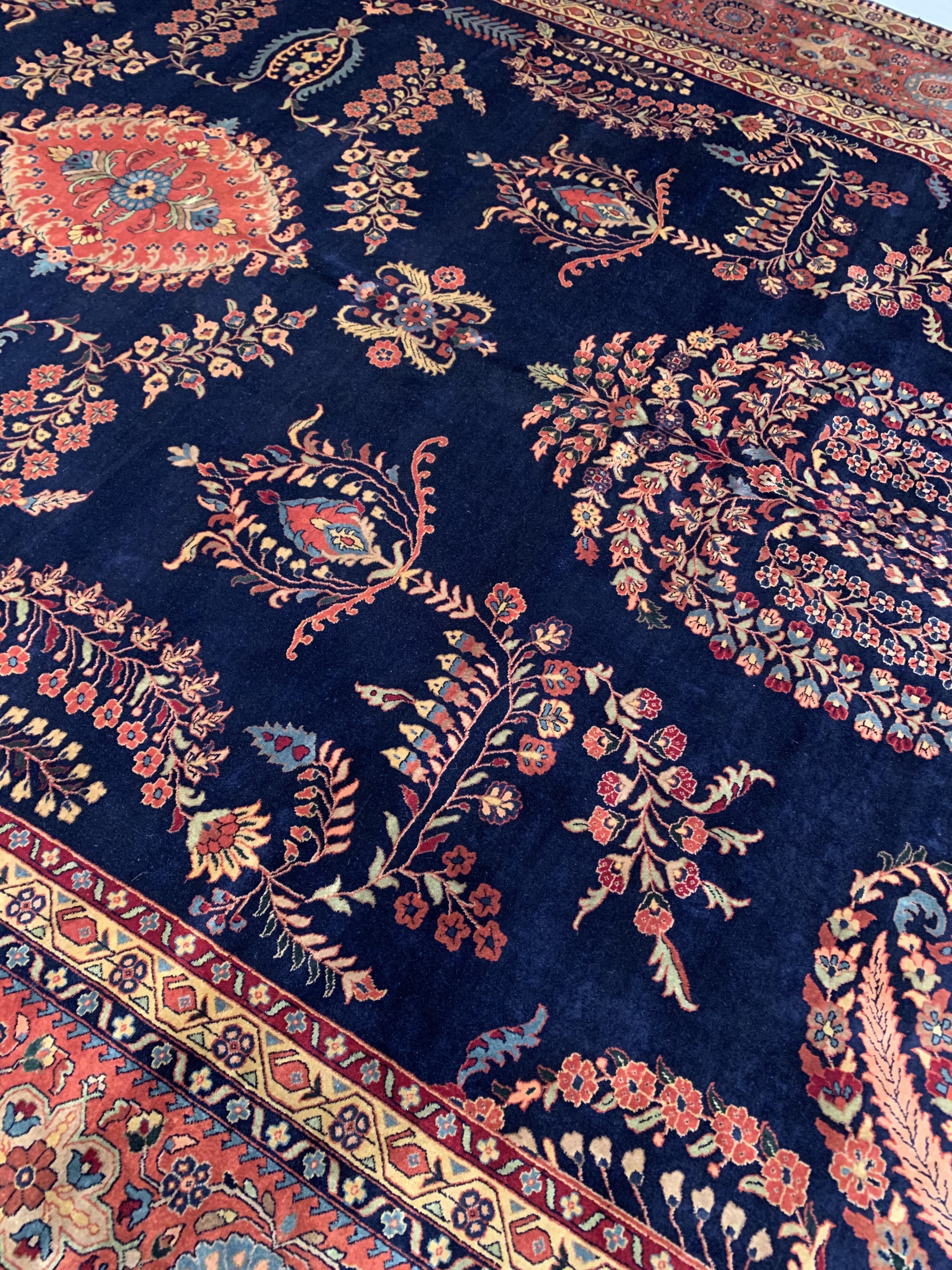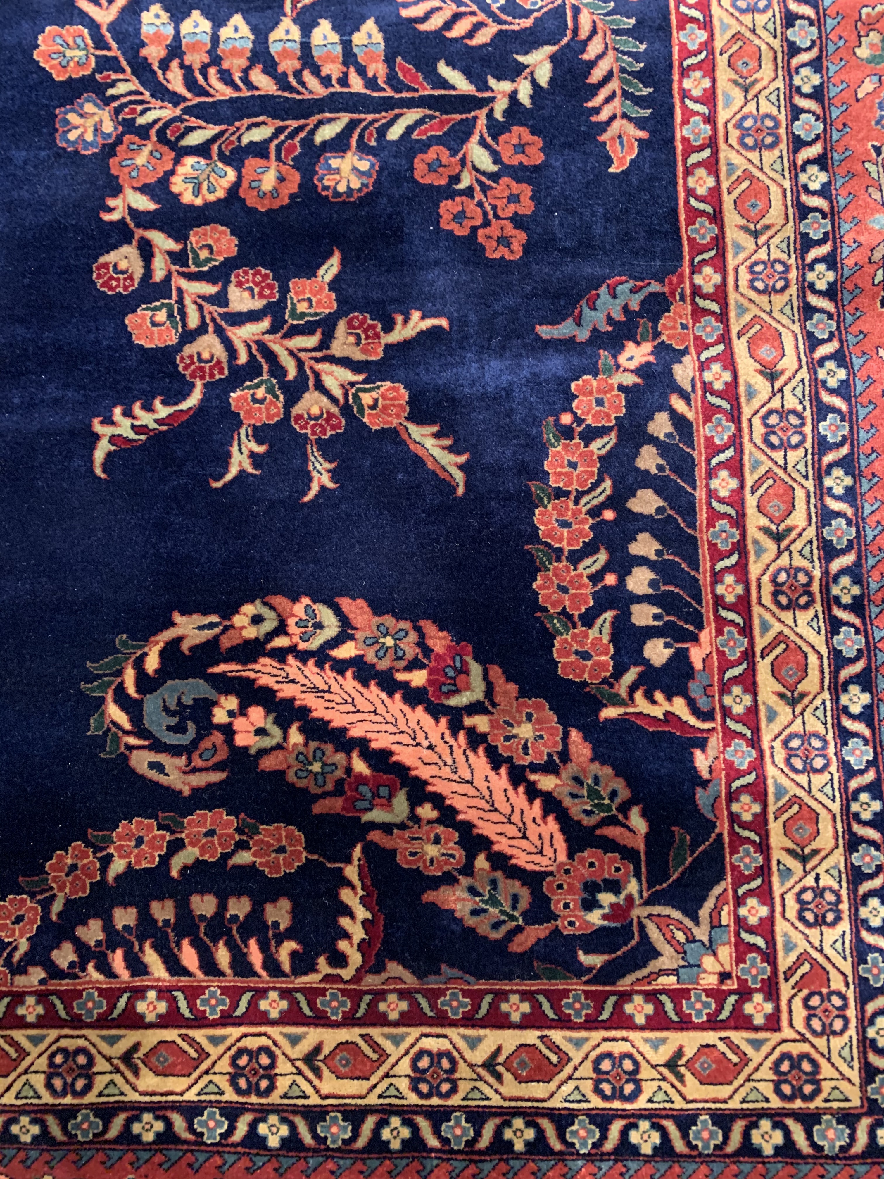 Hand knotted by weavers in a workshop in northern India using blended local with worsted New Zealand wool. The detailed traditional design requires a very fine weave, and the weavers, like all artists, have to be continually focused while working. Their hard work pays off when a rug comes out right like this one, a beautiful recreation of a Persian Sarouk. This rug will bring quality and taste to any space it lands. Pasargad rugs from these workshops are the finest traditional Indian rugs due to their fine weave, excellent workmanship, and high quality materials.#24439