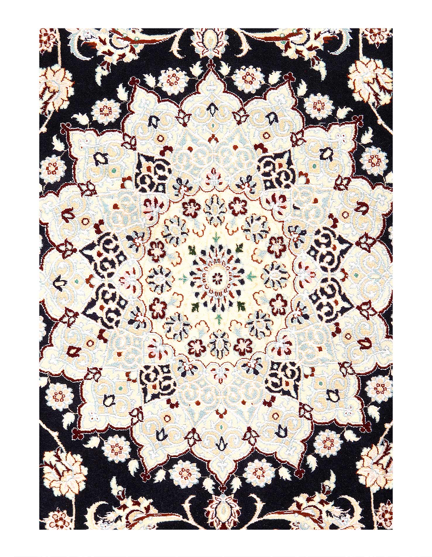 Beautiful hand-knotted Nain rug made from wool and silk. Nain is a small village located in central Iran that has relatively recently become a renowned center for carpet weaving. Production began here in the 1930s. Although Nain rugs are not as old as many of the traditional Persian rugs, they retain their value in terms of construction. They are also exquisite in design due to their use of silk in weaving both the foundation and fine pile of many rugs from the area.