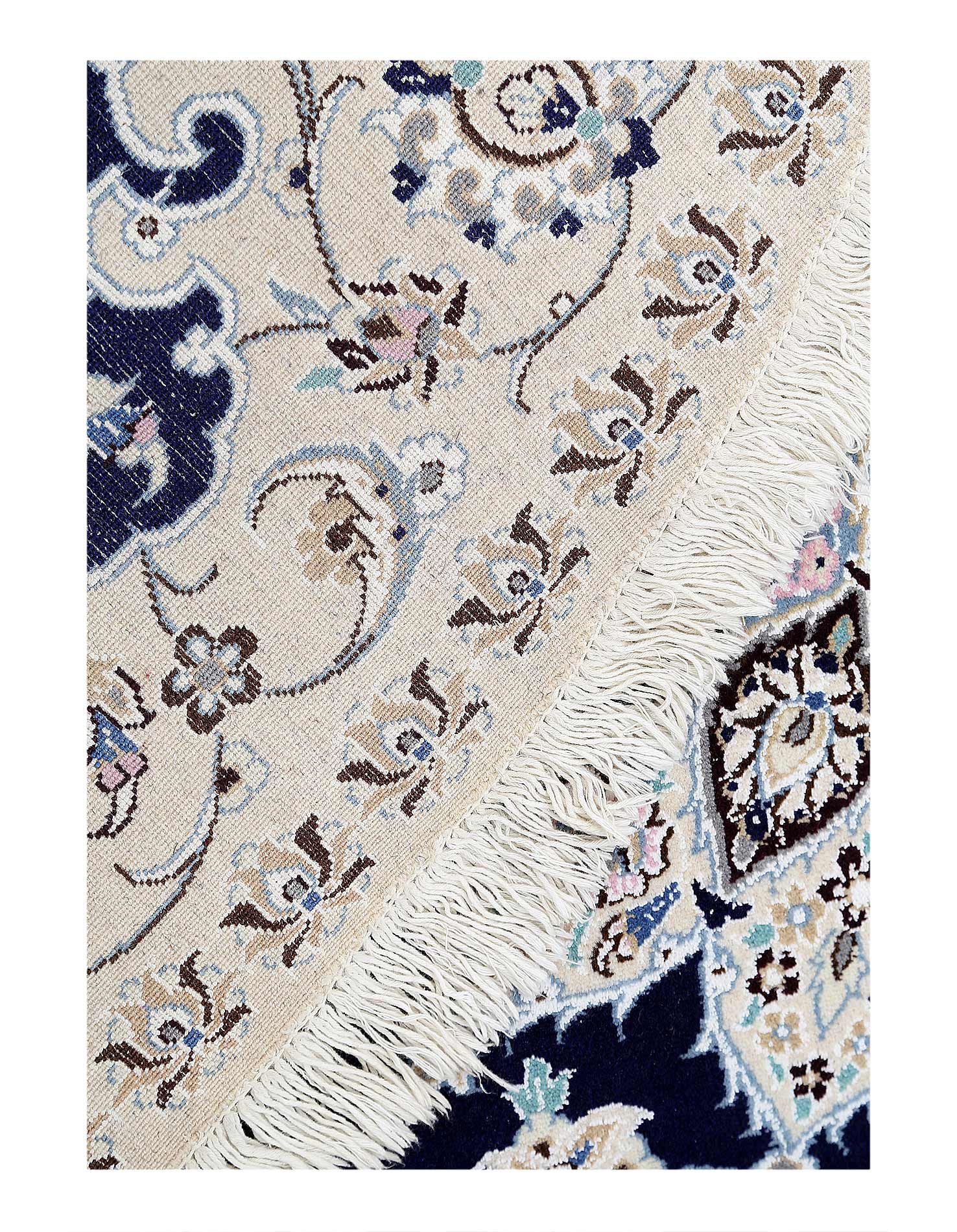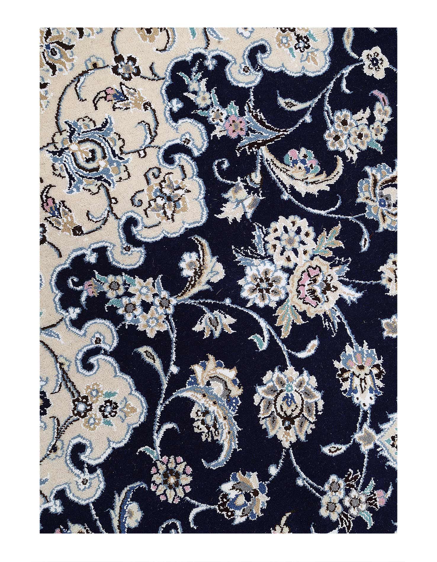 Persian Nain rugs are renowned for their detail and fine use of outlining along the central motifs. Breaking from the classical style of many vintage rugs produced around central Iran, Persian Nain rugs became renowned for their modern appeal and personal style, establishing the classical motifs of many other regional rugs, only through a more precise lens. In this striking piece, the precision is particularly visible along the heart of the vintage Persian rug, where the attention to detail allows each individual color to stand out as a unique part of the whole. The surrounding borders help ground the masterpiece and add horizontal intrigue to the natural elements within, which are arranged vertically to establish a cascading effect.