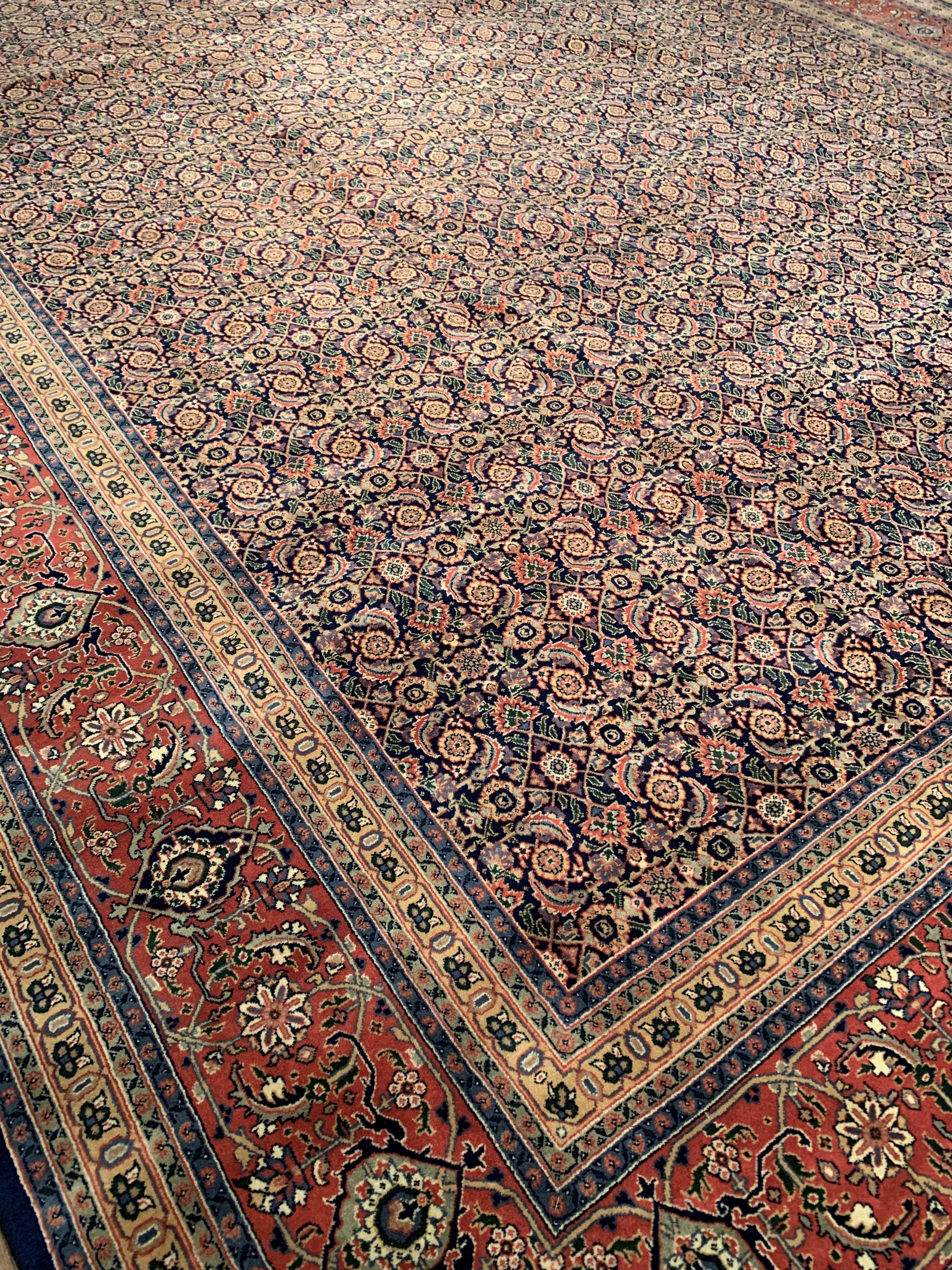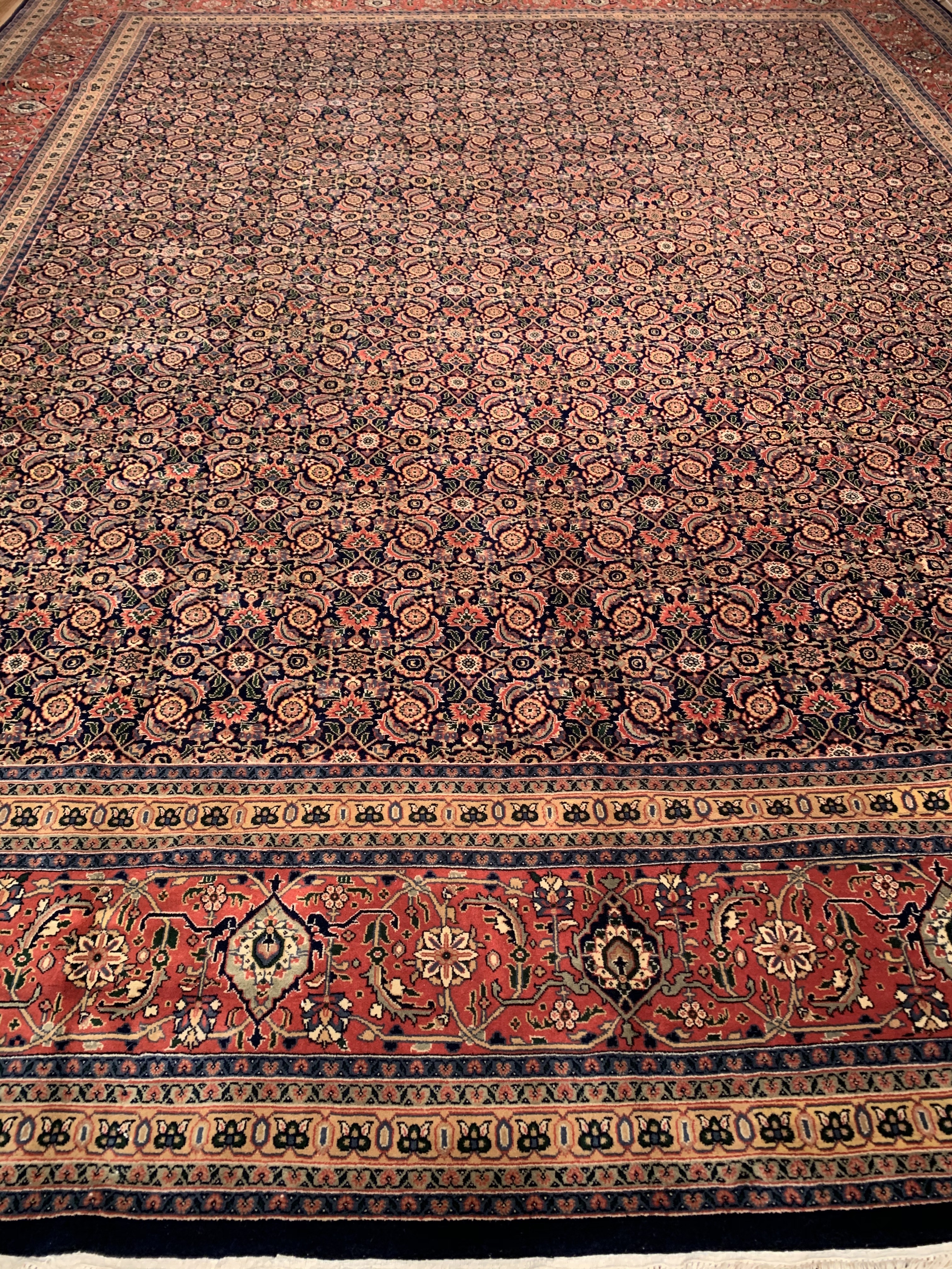 The elegant designs and rich colors of this Herati rug are inspired from the 19th century antique Persian rugs. Made from 100-percent wool, this rug has been given a luster wash for a soft finish to ensure a luxurious look and feel.
