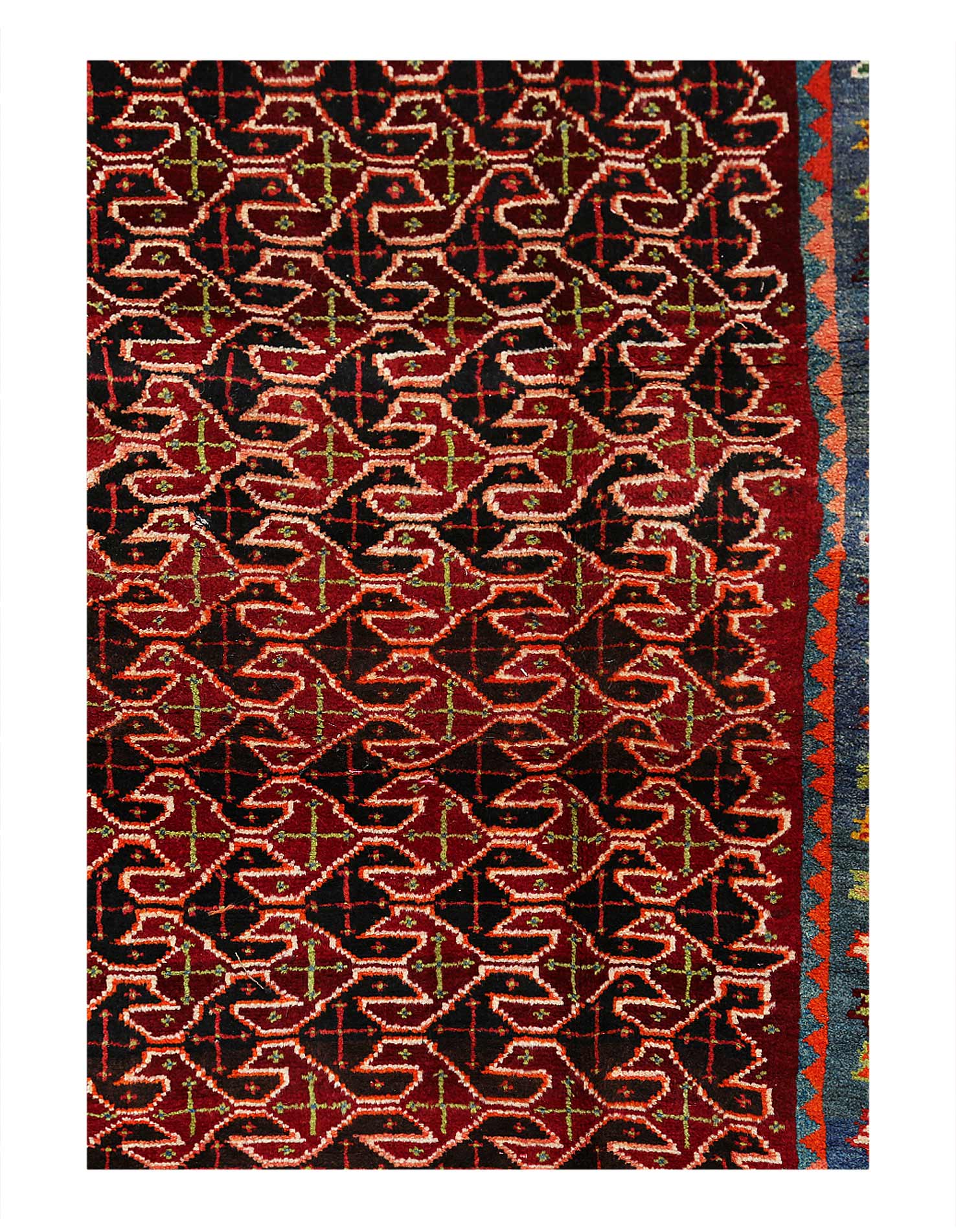 North West Persian Rugs – is the area straddling the Caucasus mountains, Caspian sea and borders with South Asiaa. Rugs produced in North West Persia represent a convergence of cultures from the Kazakhs and Khazars to the invading Mughals. The region of N. West Persia includes parts of Iran, Azerbaijan and Armenia. Carpet weavers in N. West Persia were not the most prolific craftspeople but their rare high quality carpets are sought after commodities that regularly sell for record breaking sums. Historic evidence depicting looms and detailed carpet patterns confirms the development of knotted pile carpets and flat woven Kilim rugs during the Timurid dynasty which thrived