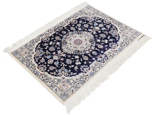 Hand knotted Nain rug ,Original Fine Persian Rug. Handmade Hand-knotted Silk & wool on a Silk .Classical combination of colors, Navy blue ground .