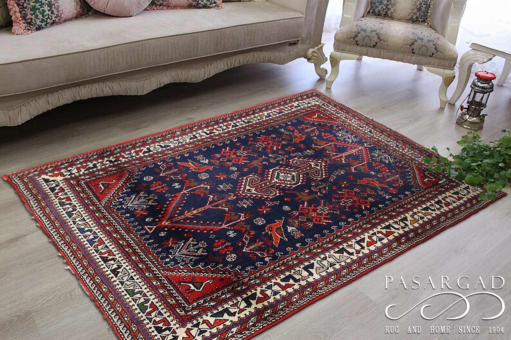 This is a very attractive and durable carpet woven in the village of Abadeh in southwestern Persia. The pattern is influenced by nomads and usually consists of a hexagon in the middle containing a rosette or a medallion. A good bargain since the carpet retains its value for a long time.