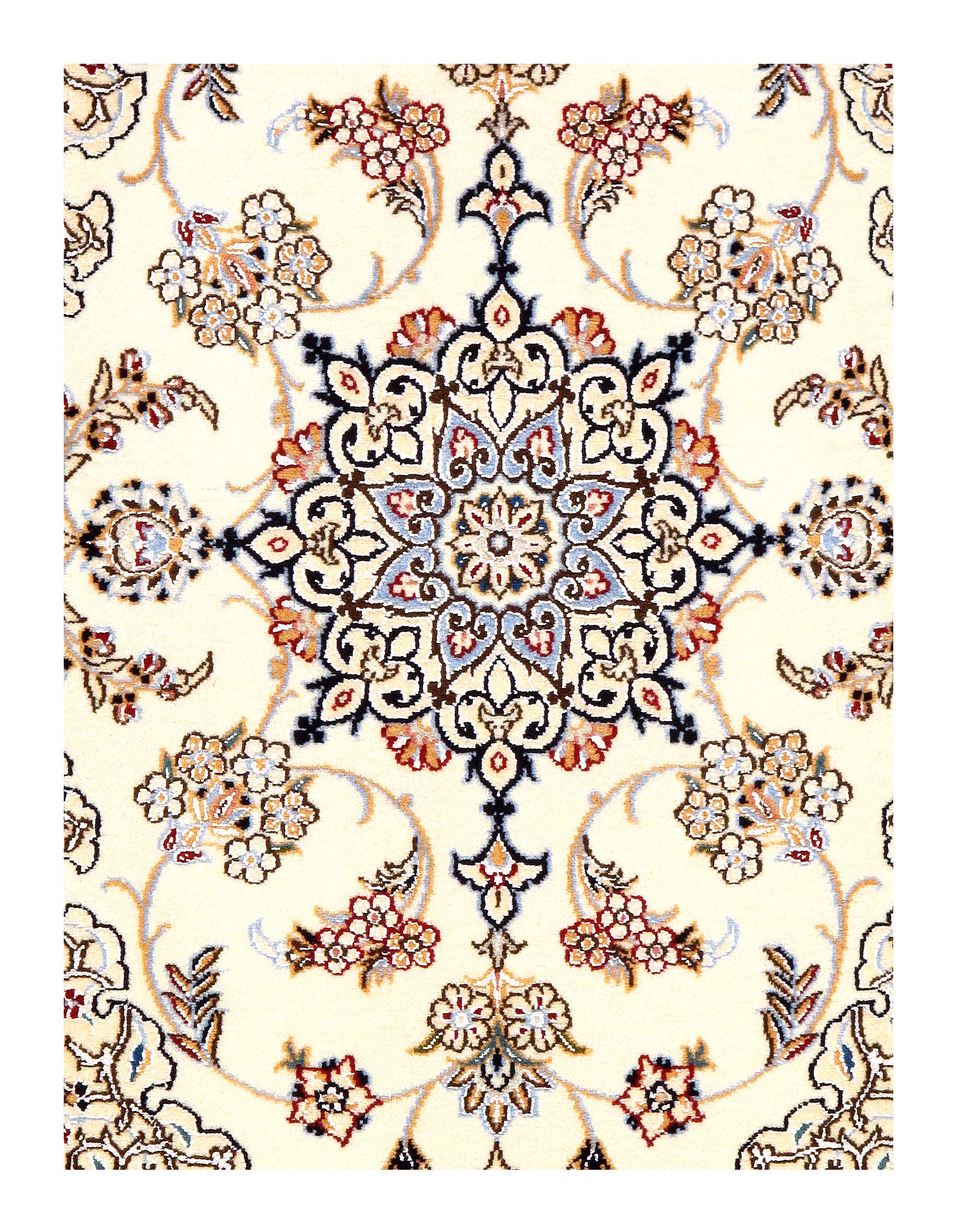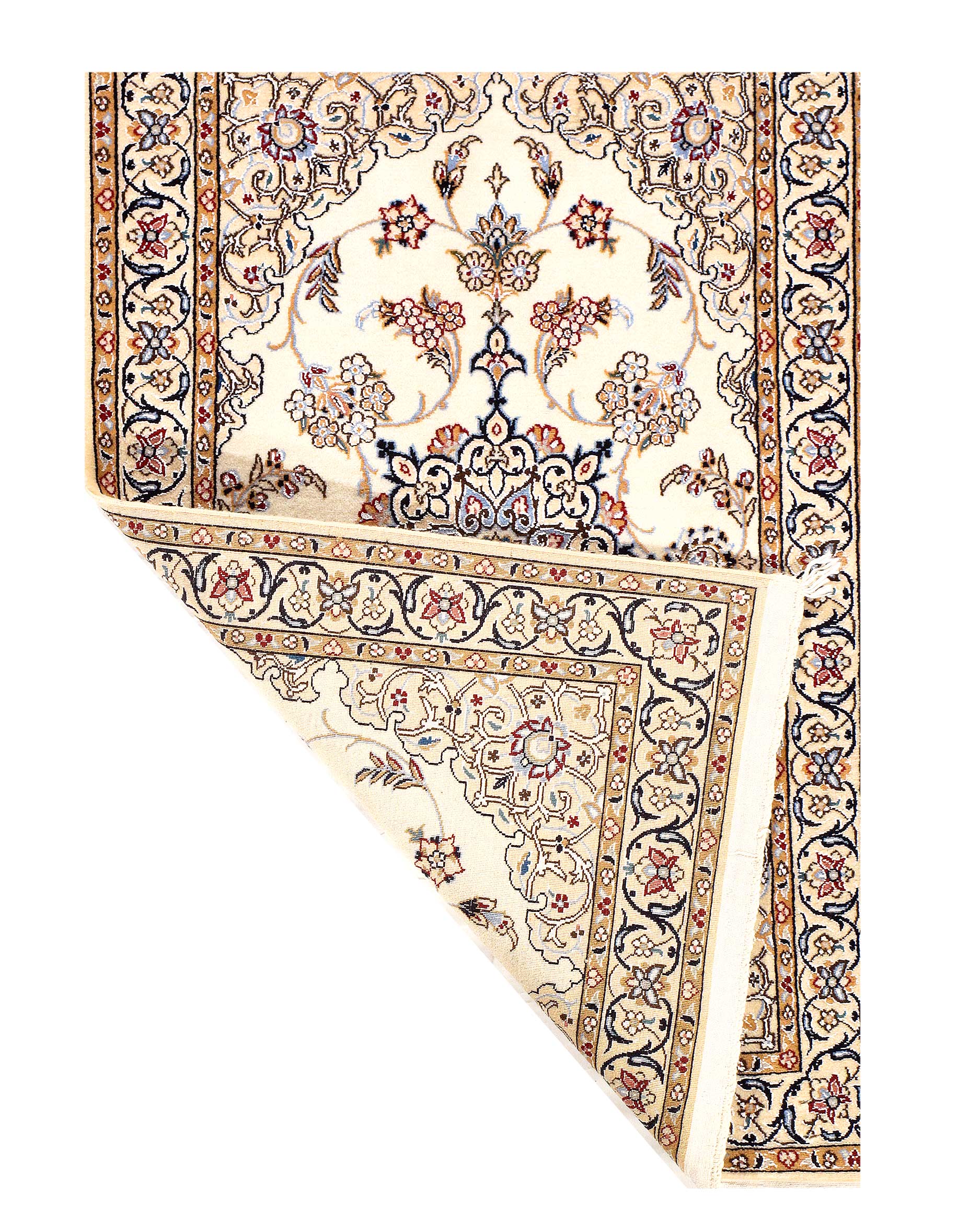 Hand knotted Nain rug ,Original Fine Persian Rug. Handmade Hand-knotted Silk & wool on a Silk .Classical combination of colors, cream ground .
