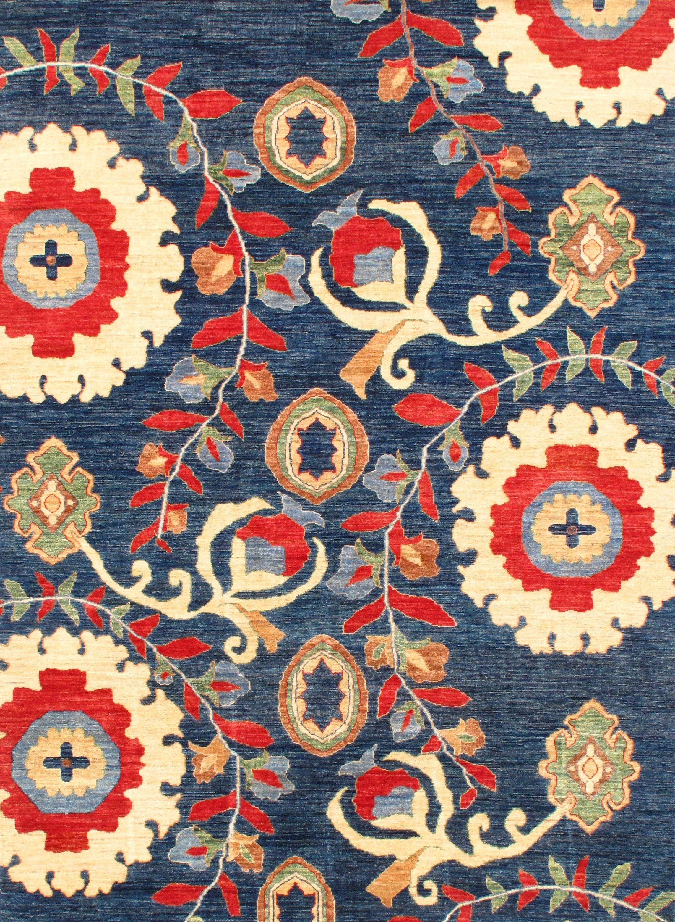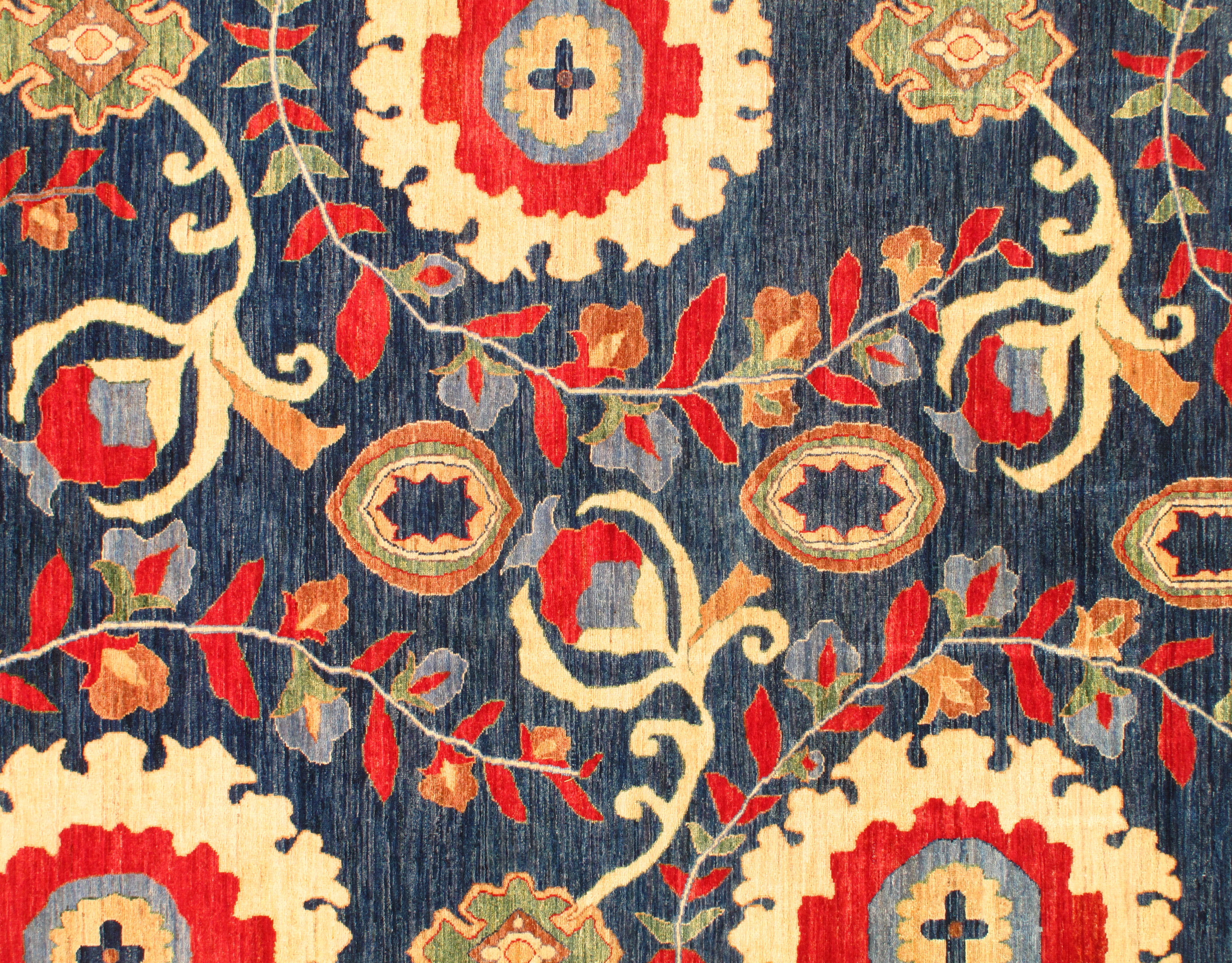 This is one of our most popular area rug collections. Based on the concept of embroidered textiles from Uzbekistan, we find the floral Suzani. It has endlessly found itself in the form of drapes, couches, pillows, but most importantly, rugs. Like its counterpart, the Ikat, Suzani is yet another tribal concept that has had a colossal impact on household items as well as the fashion industry. Included in this collection are area rugs whose designs are derived from Turkish embroideries, silk ikats, and at a further remove arts and crafts fabrics.