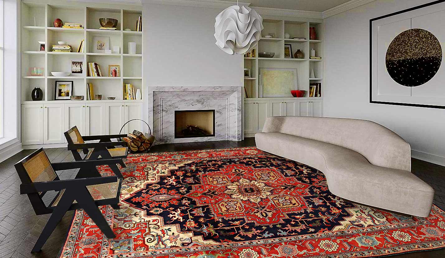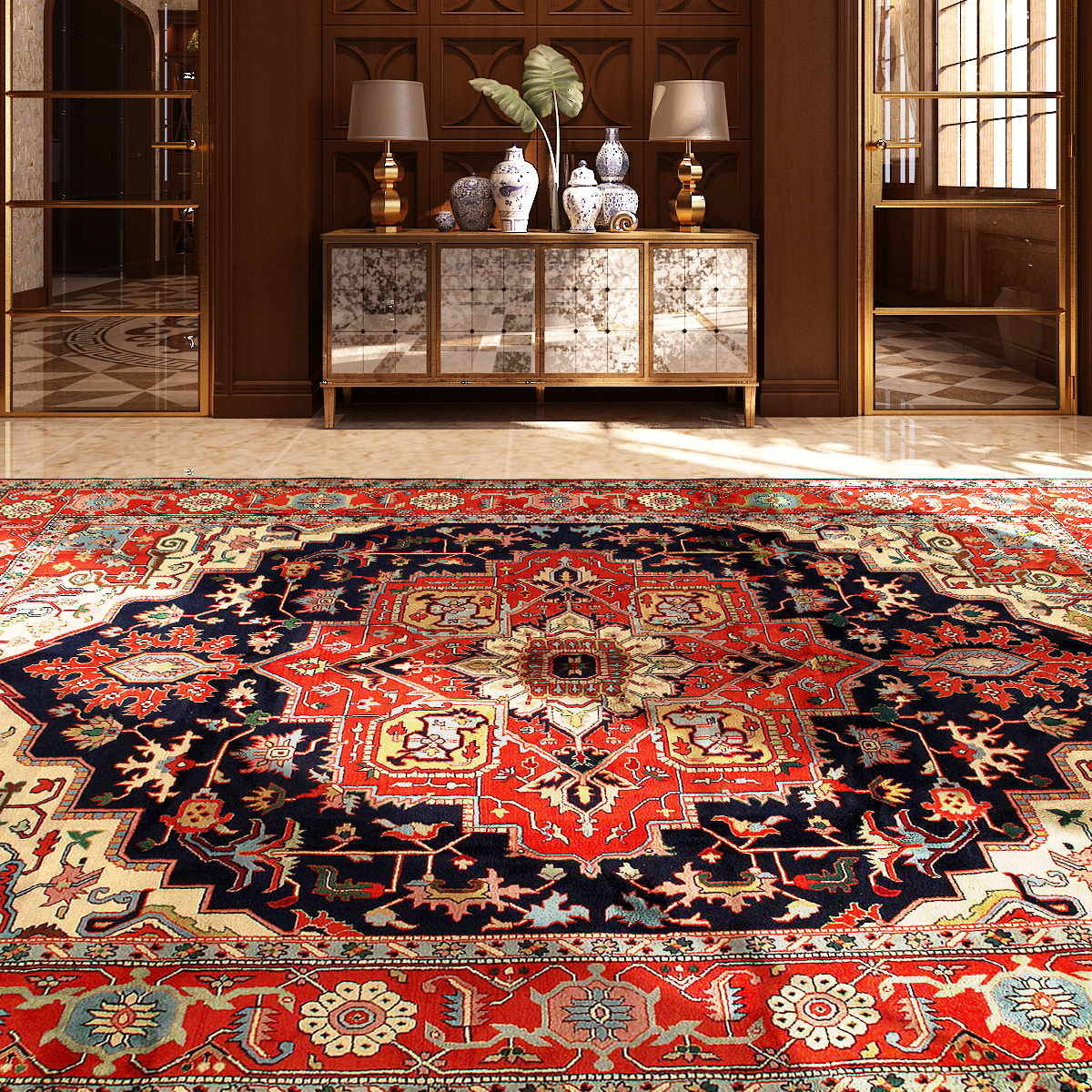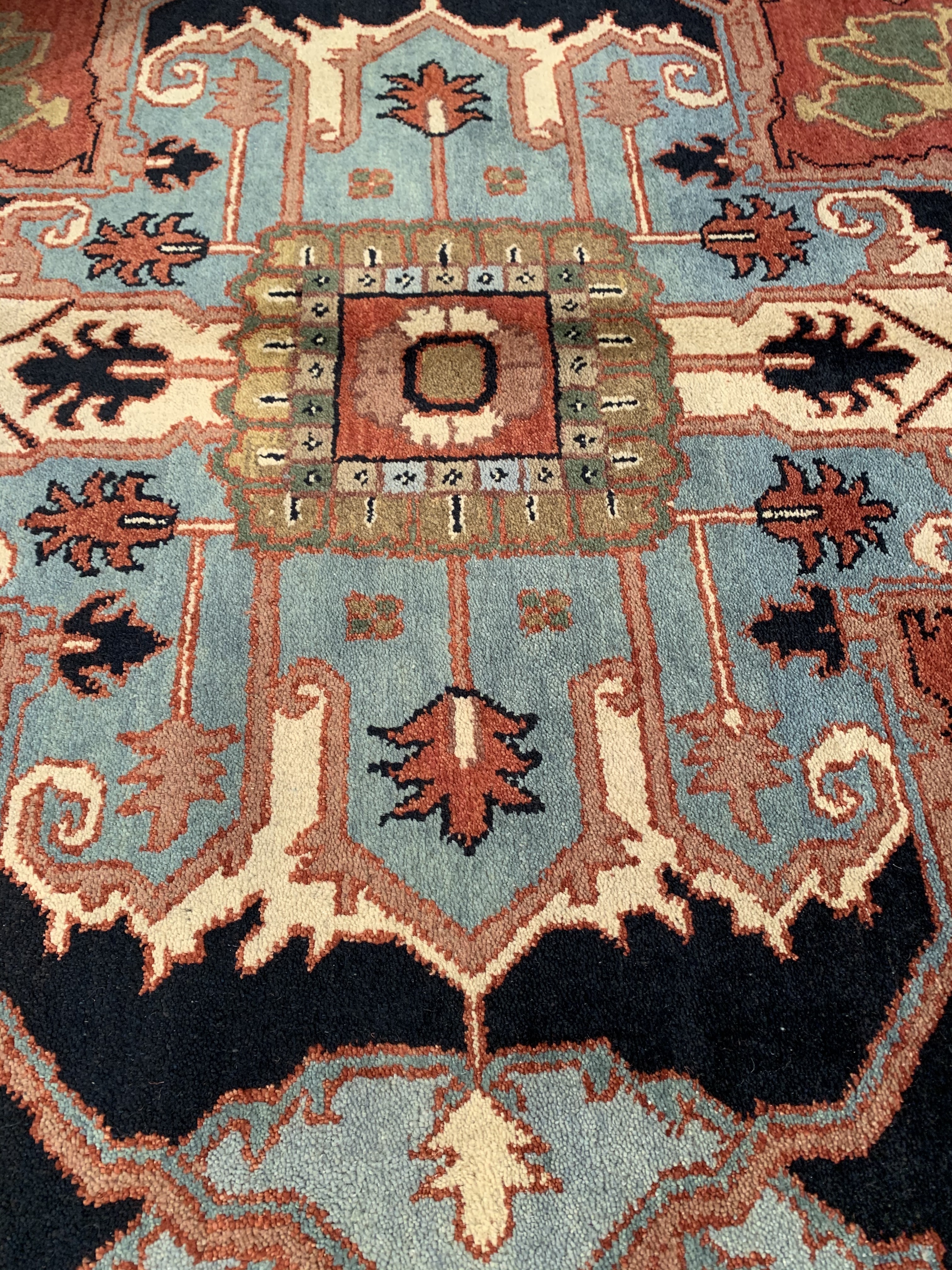 Original Persian Heriz design handmade and hand-knotted in Indian