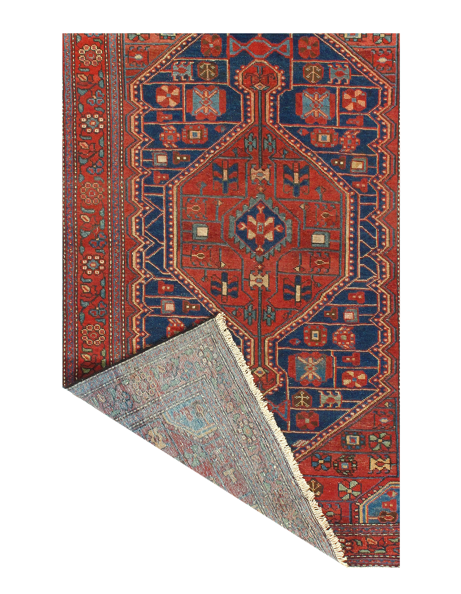 Hand knotted in a village around Hamadan, western Iran. Hamadan rugs can originate from any one of hundreds of villages across the vast region. While materials used can vary from one village to another, one uniting characteristic of this area is that virtually all Hamadan rugs are single-wefted, unlike most tribal rugs which are double-wefted. This particular Persian antique rug is in excellent condition and has superb quality wool that must be felt to be fully realized. As far as Hamadans go, this piece is outstanding.