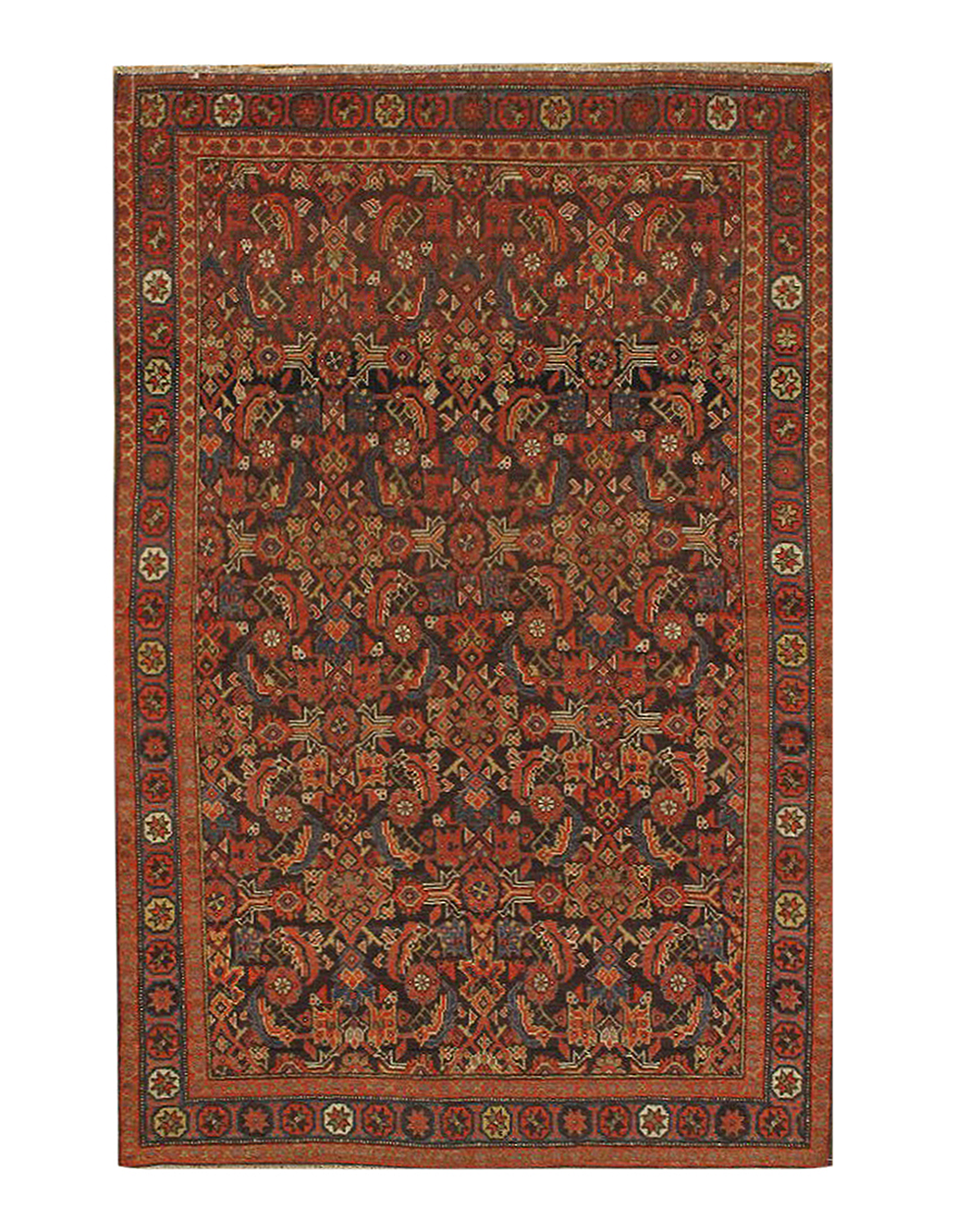 Antique Persian Malayer Carpet, Circa: 1900s – Here is a lovely antique Malayer runer that was woven in Persia around the turn of the twentieth century. Extraordinarily elaborate throughout, this rug features elaborate borders, as well as an especially intricate allover pattern that populates almost the entire field. Indeed, this entire composition of this antique Malayer is characterized by the complex nature of its detail work. This gives the entire carpet a sense of dynamism and energy. Beautifully woven, this antique Malayer carpet from Persia is an exciting example.