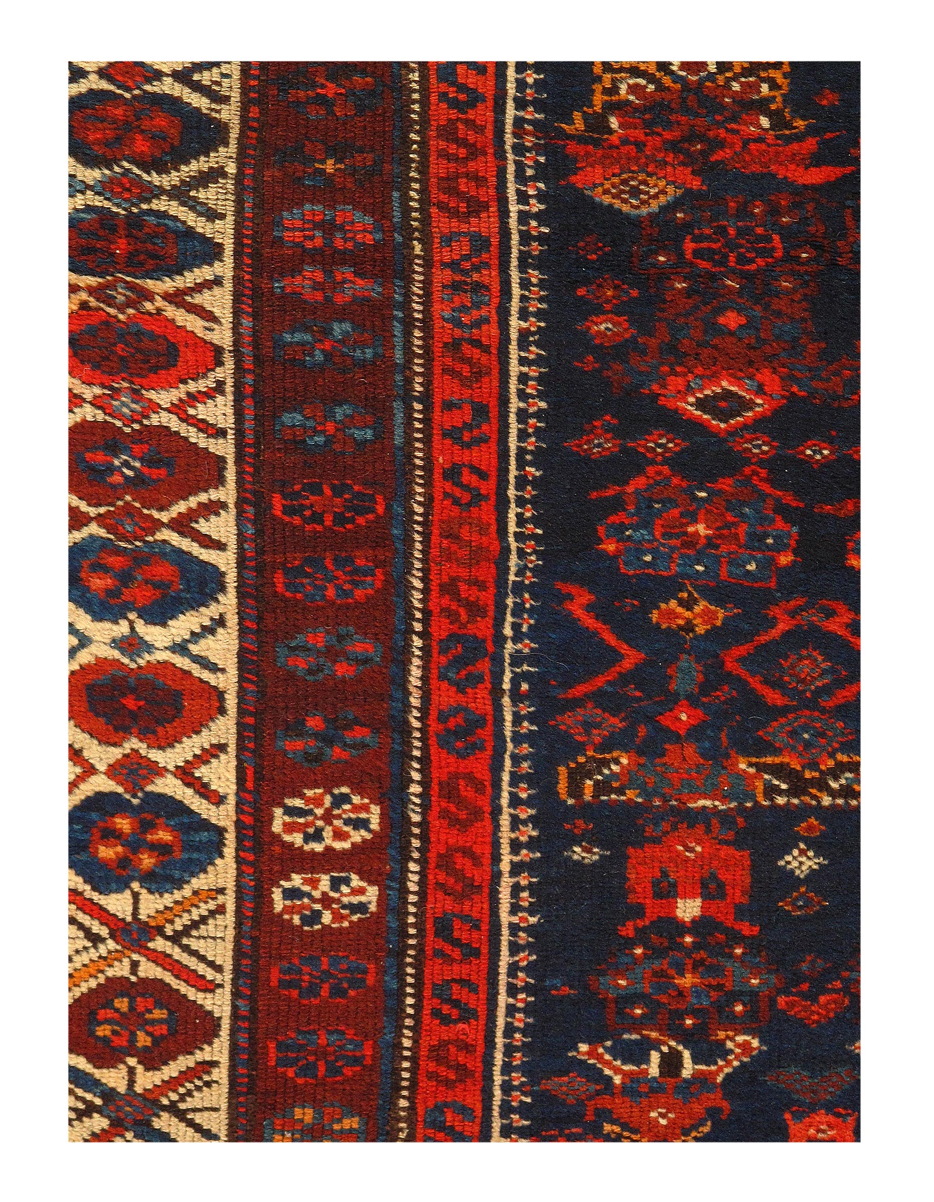 North West Persian Rugs – is the area straddling the Caucasus mountains, Caspian sea and borders with South Asiaa. Rugs produced in North West Persia represent a convergence of cultures from the Kazakhs and Khazars to the invading Mughals. The region of N. West Persia includes parts of Iran, Azerbaijan and Armenia. Carpet weavers in N. West Persia were not the most prolific craftspeople but their rare high quality carpets are sought after commodities that regularly sell for record breaking sums. Historic evidence depicting looms and detailed carpet patterns confirms the development of knotted pile carpets and flat woven Kilim rugs during the Timurid dynasty which thrived