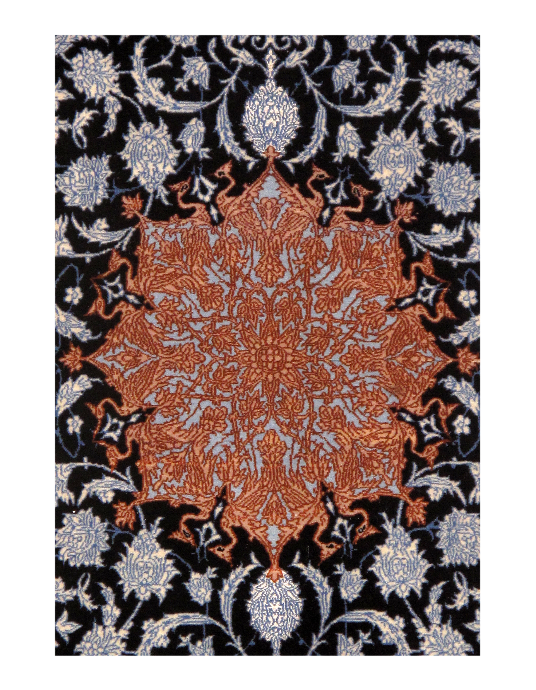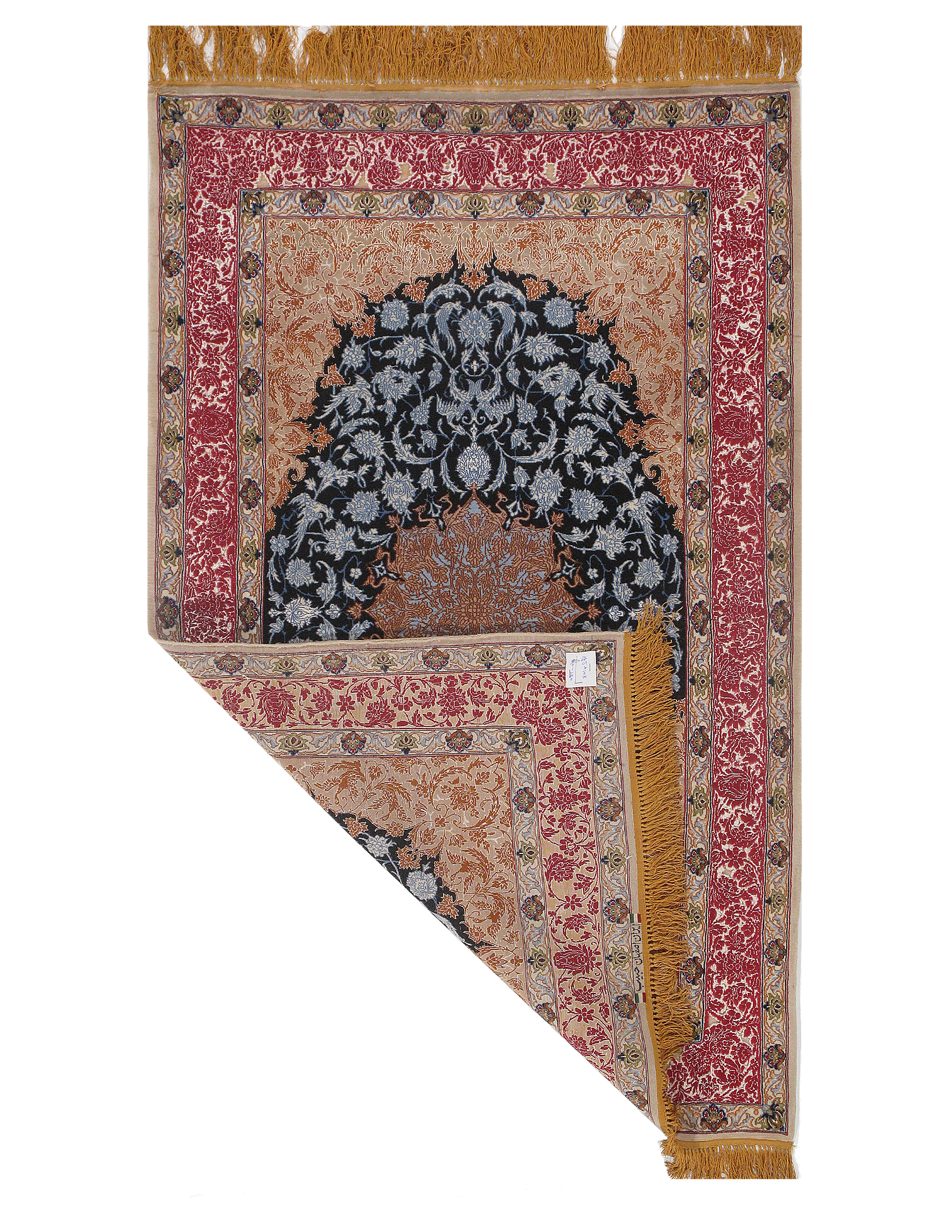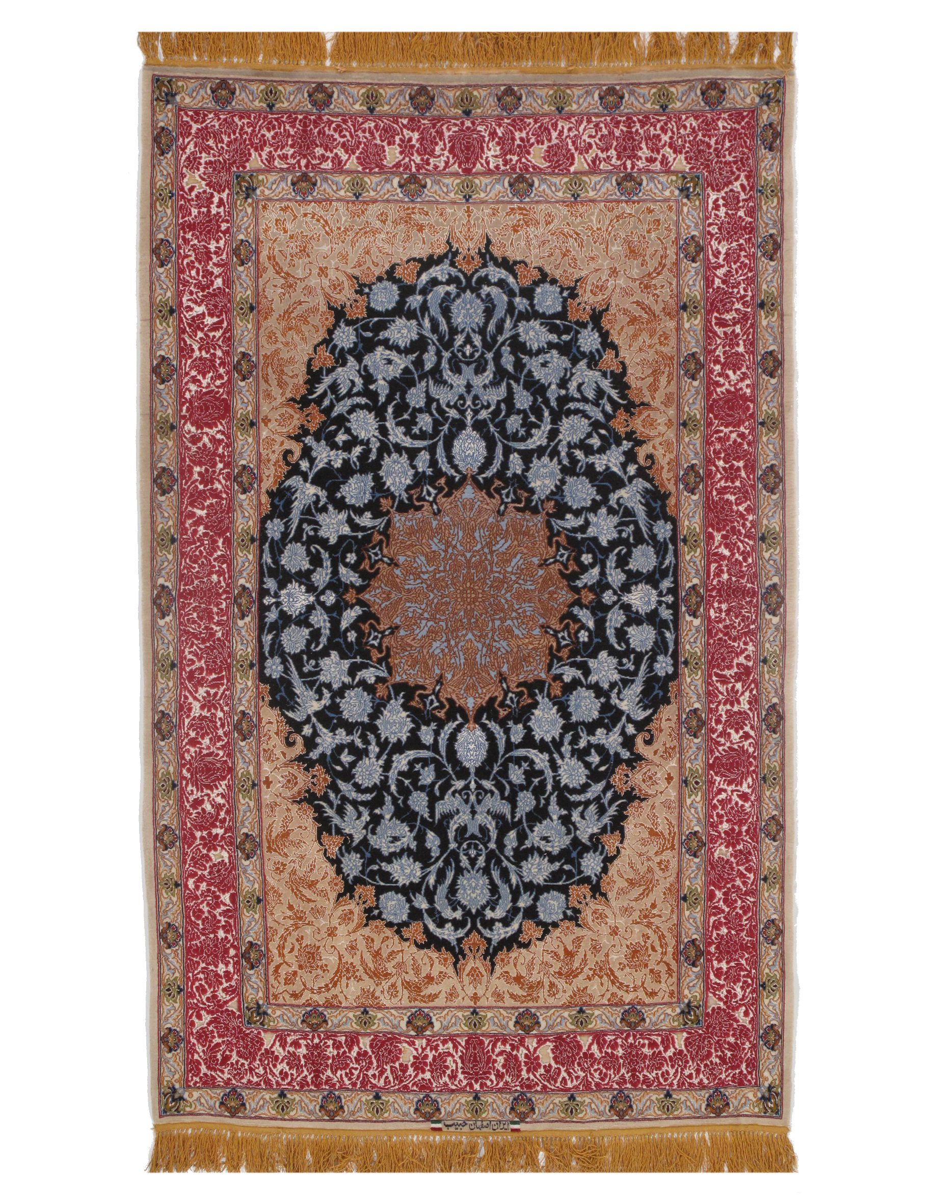 The Isfahan rugs are made with exceptionally good quality of wool & silk. They use traditional motifs inspired by architectural tiles that once decorated the historical buildings from which these rugs originated in. When it comes to high class designs the composition, patterns, and materials of Isfahan meets those expectations. The motifs usually consist of medallions with palmetts and also figural motifs. Isfahan rugs have an extremely high knot density and are woven with silk and golden threads, which give them their luxurious look.singed By Habib