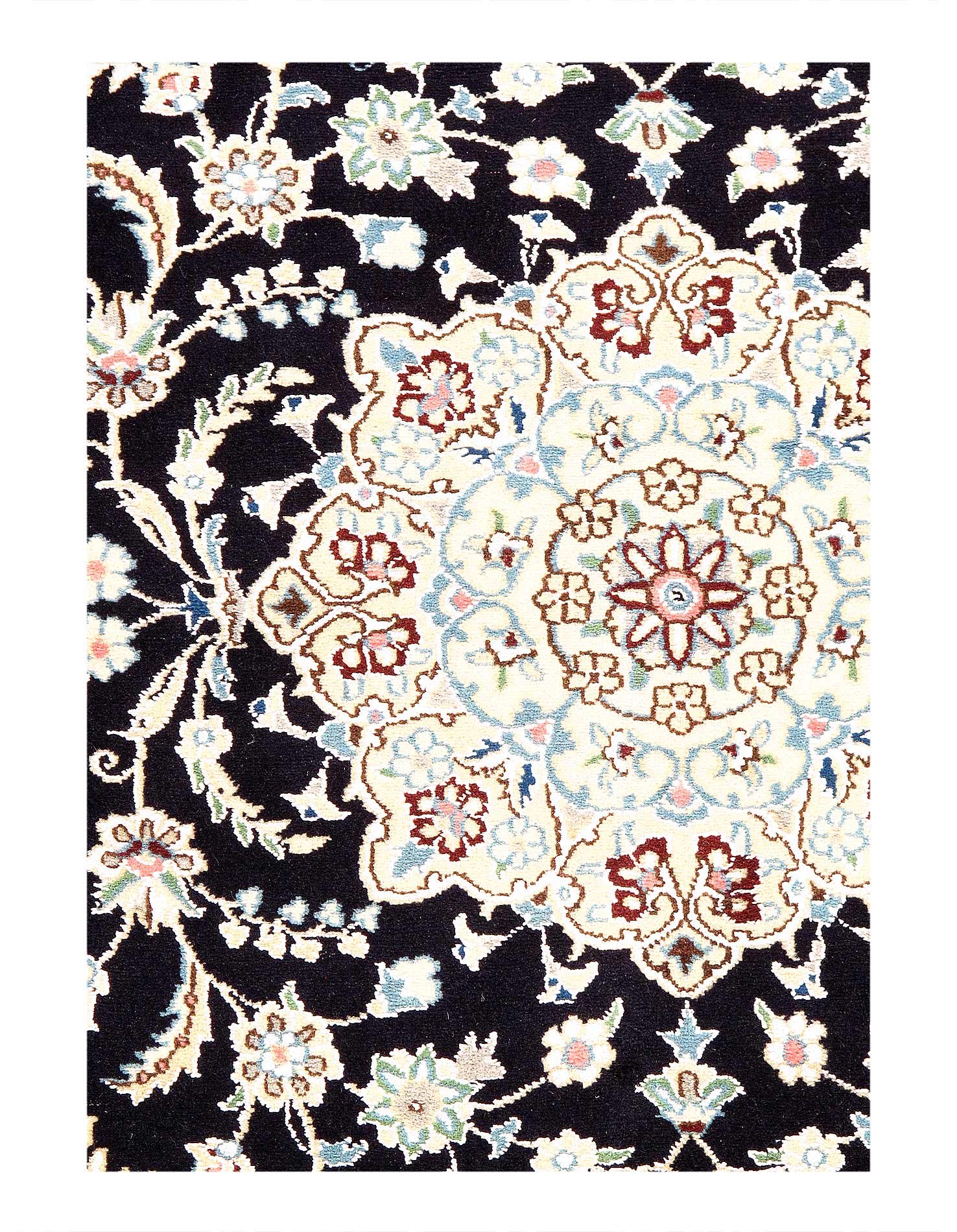 Persian Nain rugs are renowned for their detail and fine use of outlining along the central motifs. Breaking from the classical style of many vintage rugs produced around central Iran, Persian Nain rugs became renowned for their modern appeal and personal style, establishing the classical motifs of many other regional rugs, only through a more precise lens. In this striking piece, the precision is particularly visible along the heart of the vintage Persian rug, where the attention to detail allows each individual color to stand out as a unique part of the whole. The surrounding borders help ground the masterpiece and add horizontal intrigue to the natural elements within, which are arranged vertically to establish a cascading effect.