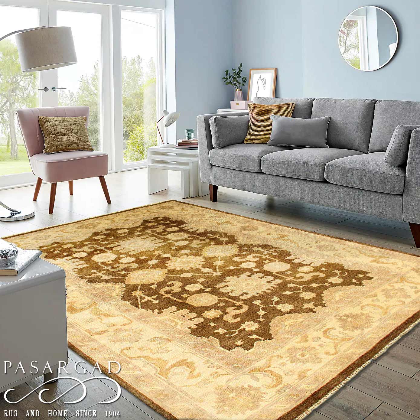 Original Indian OUSHAK Design rug. Handmade Hand-knotted Lamb's Wool on a Cotton Foundation Hand-Spun Wool Rug. This rug has a dense, soft pile, and excellent quality, to ensure that you will enjoy the look and feel of your rug for years to come. Vegetable Dyed