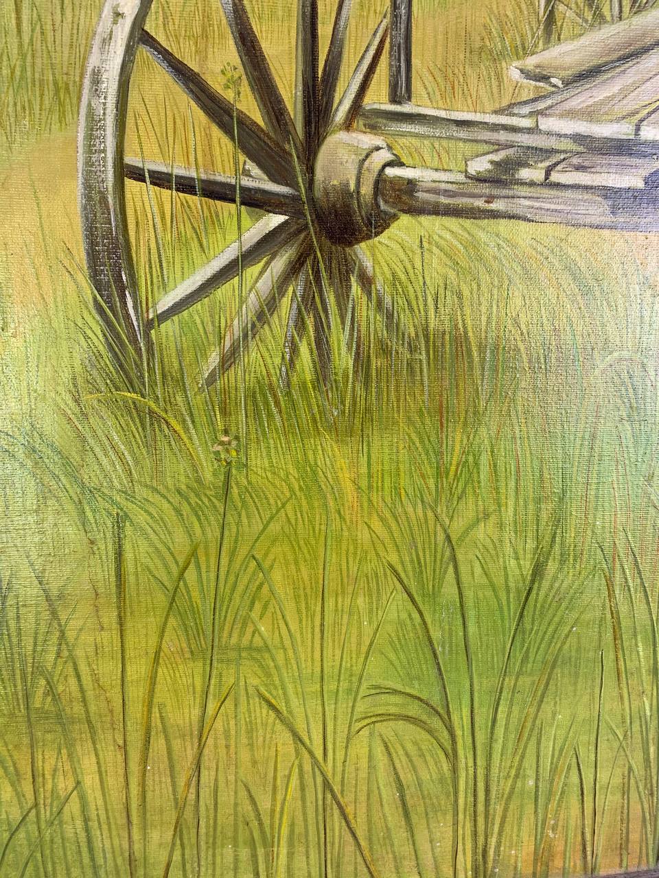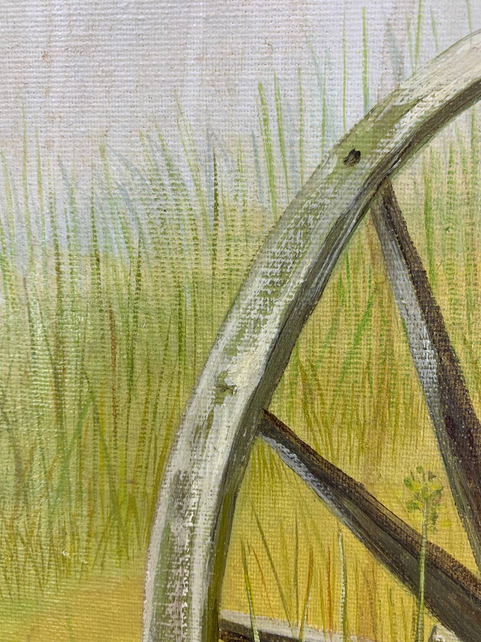 Wheel in Grass canvas . Bring your artwork to life with the texture and depth of a stretched canvas ,