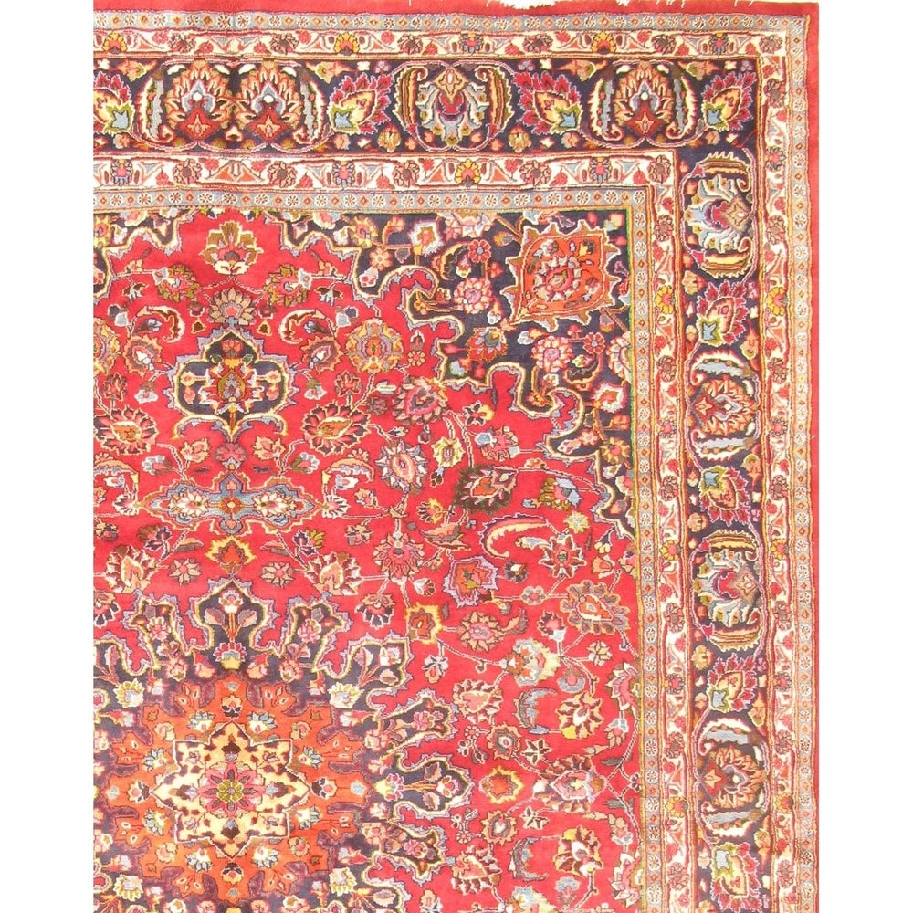 The wool used in Mashad rugs is softer than that found in most other types of Persian rugs. The colors are non varying and most use exclusively red and blue as the dominating colors with ivory or khaki used to provide interesting contrast. The background is typically deep, dark red with dark blue highlights found in the center medallion, corner pendants and border. The red background is a distinguishing characteristic of Mashad rugs.