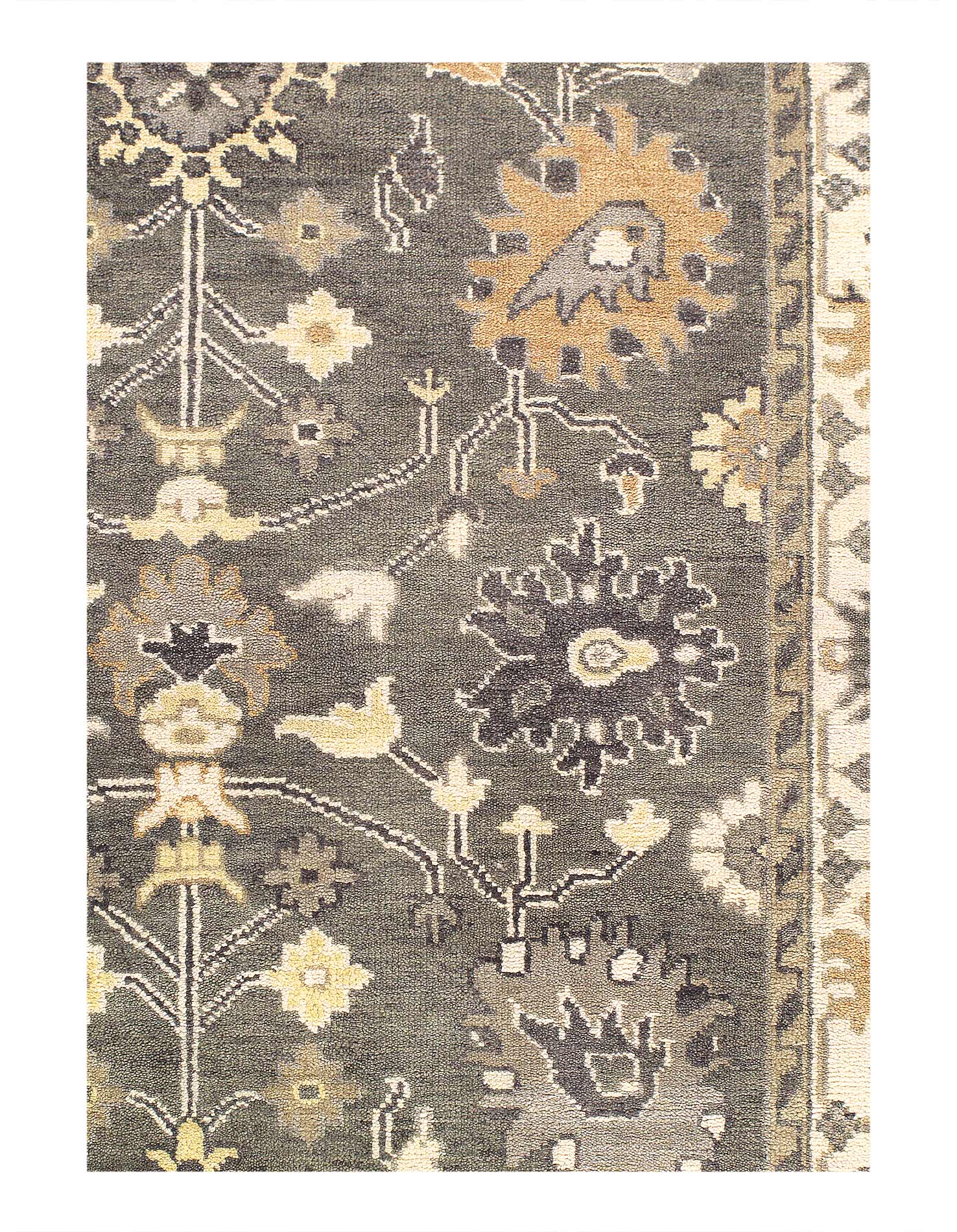 These Fine Indian Oushak carpets are extremely desirable because of their colors – which are usually much lighter and “happier” in feel than rugs from other regions. So if you are looking for an antique or vintage rug with a soft colors, theses should top your list. Fine Indian Oushak Carpets reflects the values of the time period in which they were woven. The weaving techniques, dyes used, and patterns incorporated all have their own time stamp attributed to them. These lighter colors will bring vibrancy and life to your home.