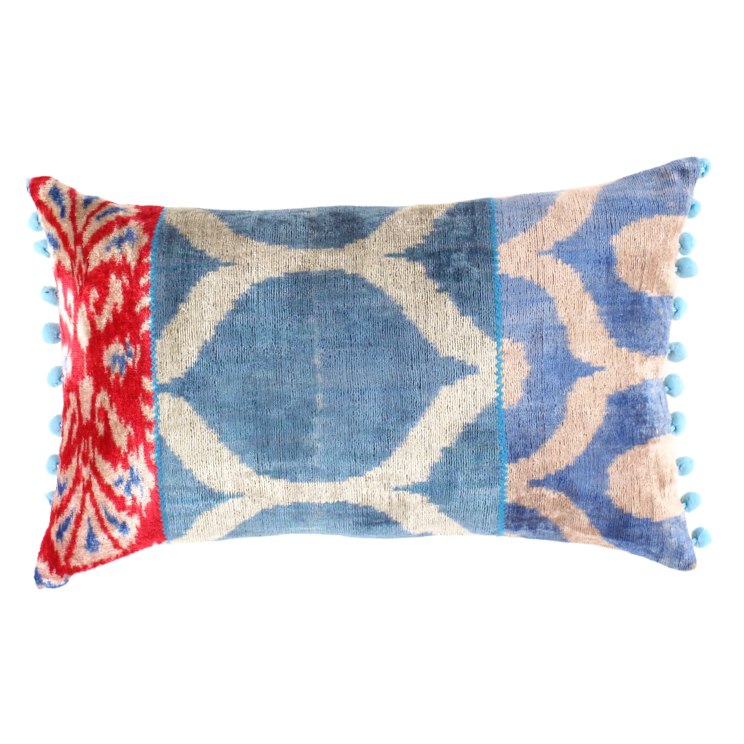 These are warp-faced plain weave silk warp, cotton weft ikats. Ikat is a style of weaving that uses a tie-dye process on the warp threads before the threads are woven to create a pattern or design. In Central Asia the practiced type of ikat is warp faced Ikat since they do not make any DOUBLE Ikats in which case both the warp and weft threads are tie-dyed. Ikat weaving can be a laborious process since it requires a multi process of tying and dyeing carefully.