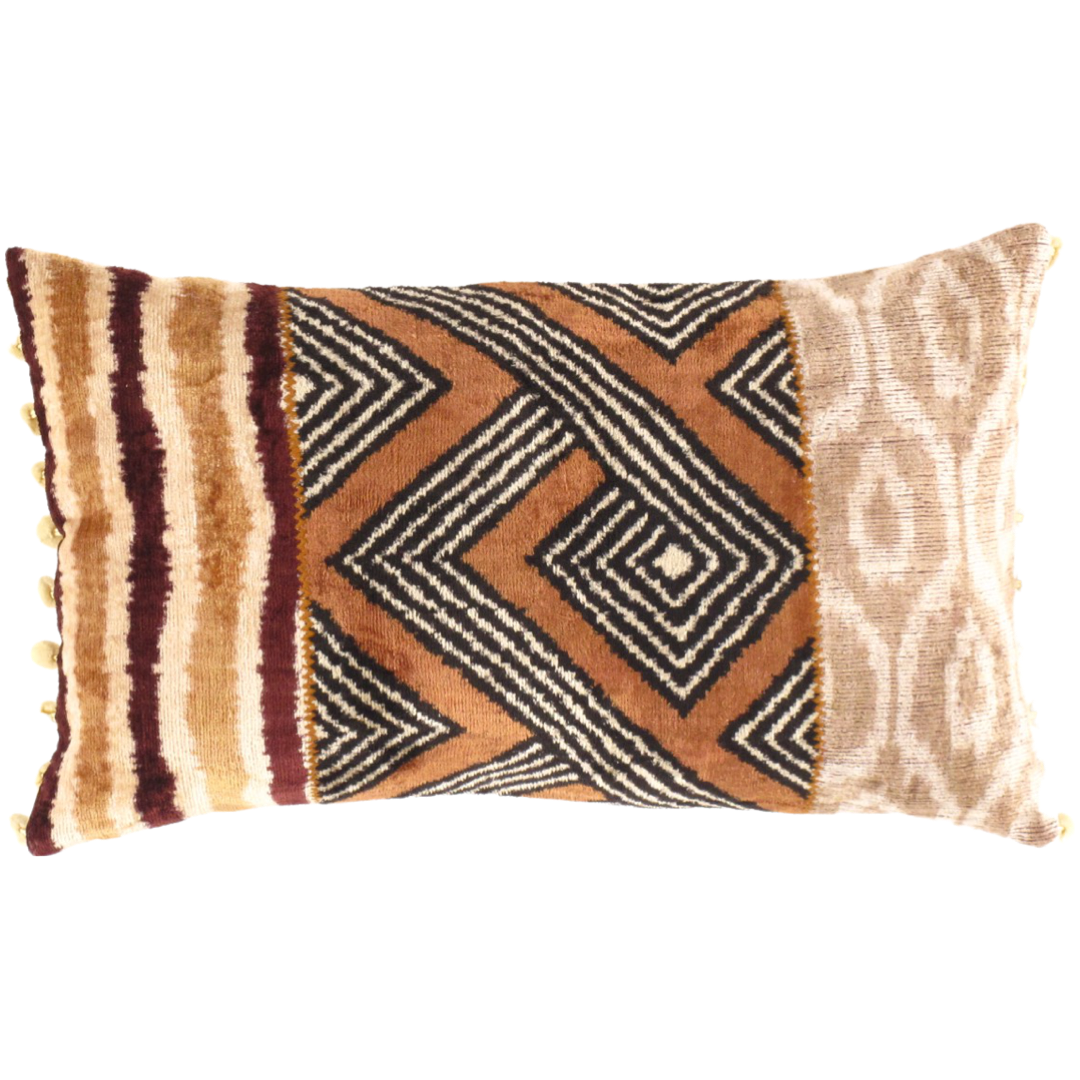 These are warp-faced plain weave silk warp, cotton weft ikats. Ikat is a style of weaving that uses a tie-dye process on the warp threads before the threads are woven to create a pattern or design. In Central Asia the practiced type of ikat is warp faced Ikat since they do not make any DOUBLE Ikats in which case both the warp and weft threads are tie-dyed. Ikat weaving can be a laborious process since it requires a multi process of tying and dyeing carefully.
