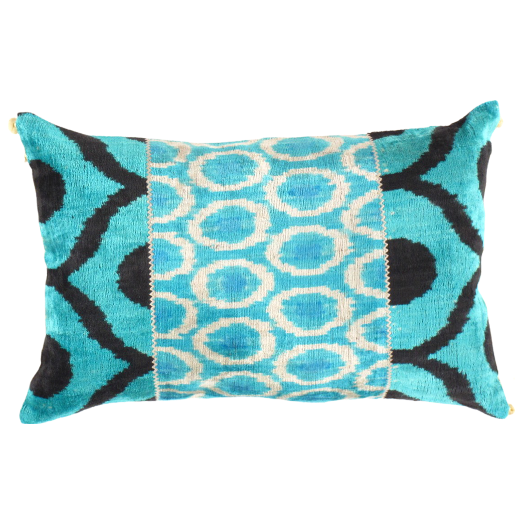 These are warp-faced plain weave silk warp, cotton weft ikats. Ikat is a style of weaving that uses a tie-dye process on the warp threads before the threads are woven to create a pattern or design. In Central Asia the practiced type of ikat is warp faced Ikat since they do not make any DOUBLE Ikats in which case both the warp and weft threads are tie-dyed. Ikat weaving can be a laborious process since it requires a multi process of tying and dyeing carefully.
