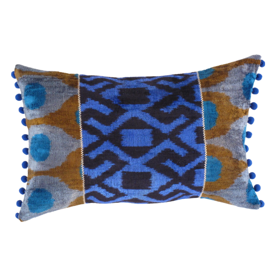 These are warp-faced plain weave silk warp, cotton weft ikats. Ikat is a style of weaving that uses a tie-dye process on the warp threads before the threads are woven to create a pattern or design. In Central Asia the practiced type of ikat is warp faced Ikat since they do not make any DOUBLE Ikats in which case both the warp and weft threads are tie-dyed. Ikat weaving can be a laborious process since it requires a multi process of tying and dyeing carefully.