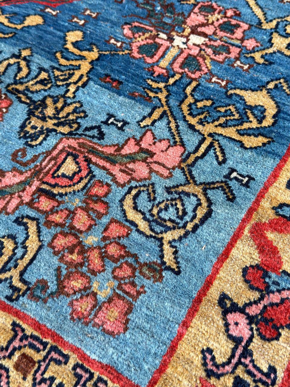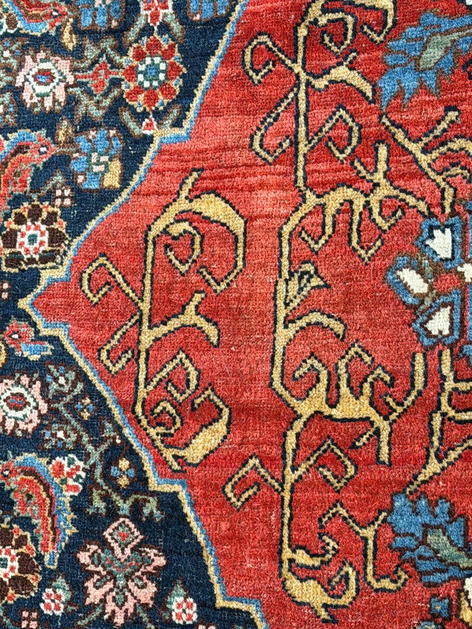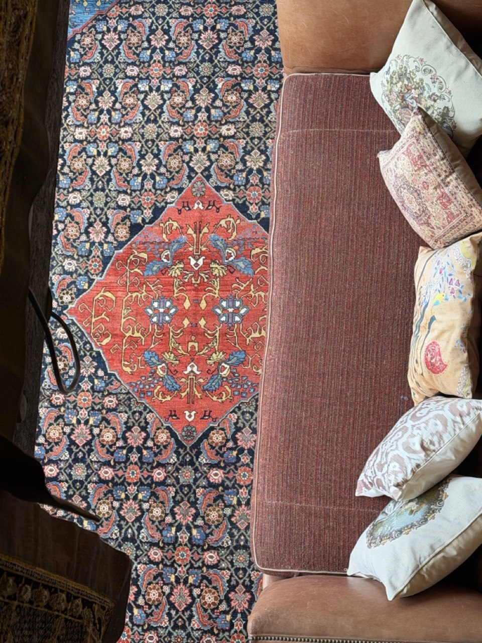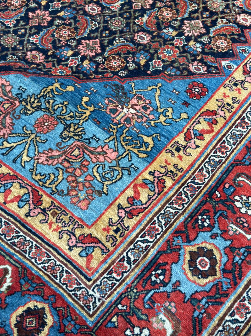 Gorgeous Spiritually Grounding Antique Persian Bidjar Rug, Country of origin: Persian Rugs, Circa date: 1900 – “This antique rug likely dates back several decades, showcasing the intricate artistry of traditional rug-making. Additionally, its design reflects a rich history, possibly linked to Persian or Anatolian influences. Moreover, the craftsmanship suggests it may be hand-knotted, a technique valued for its durability. However, without precise documentation, the exact origin remains speculative.