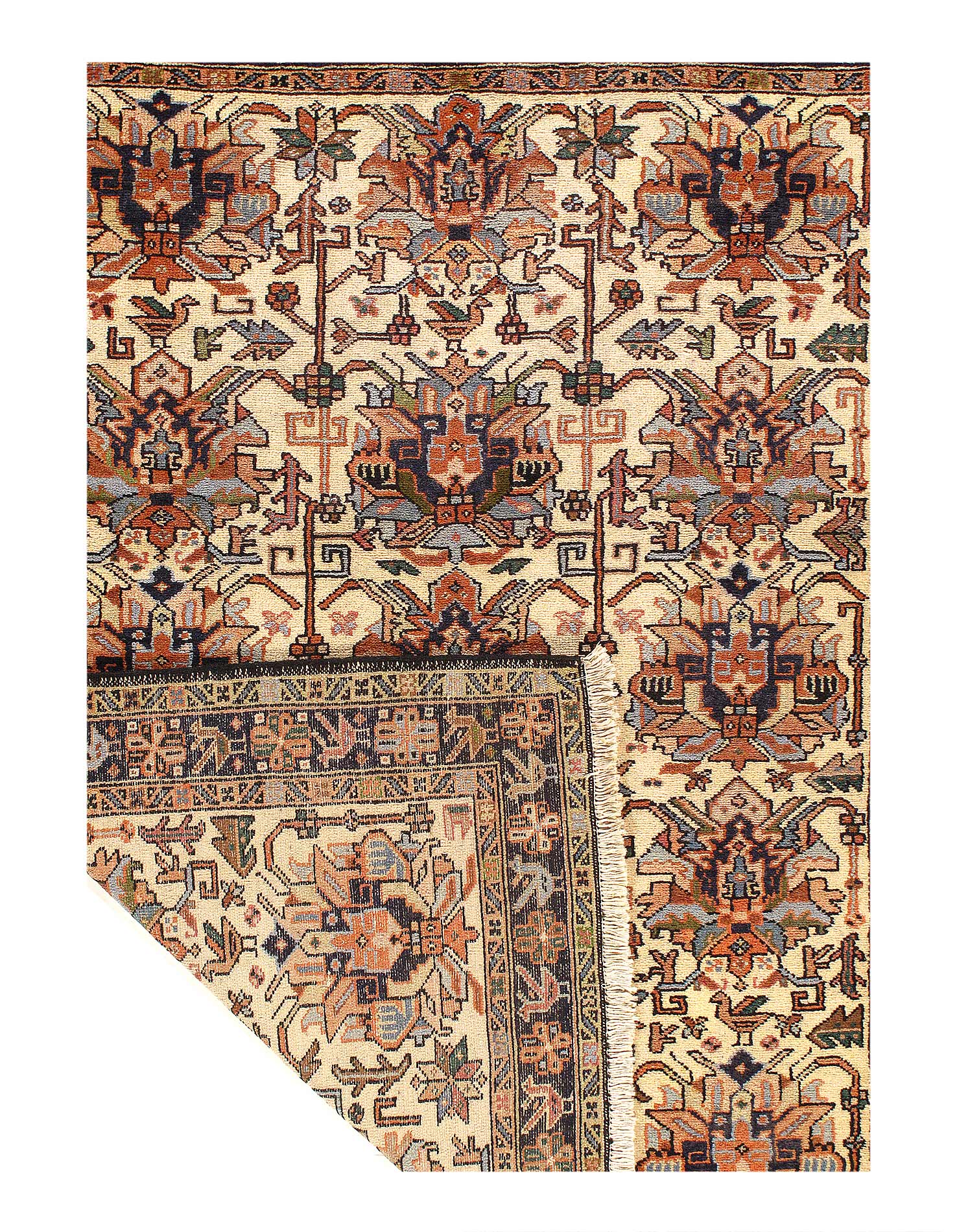 Fine Antique Persian Heriz S Rug, Country of Origin: Persia, Circa Date: 1880 – A formal garden of cypress and willow trees adorn this splendid Persian carpet from Heriz. This antique carpet was produced in the 1880 during a time when the Persian carpet industry was experiencing a revival. The upright nature of the cypress trees was a common element in the formal gardens of Persia. Their stately presence pointed to the heavens and connected man to the sublime. The downward pointing branches of the willow trees in this design create a point of contrast in line and form.