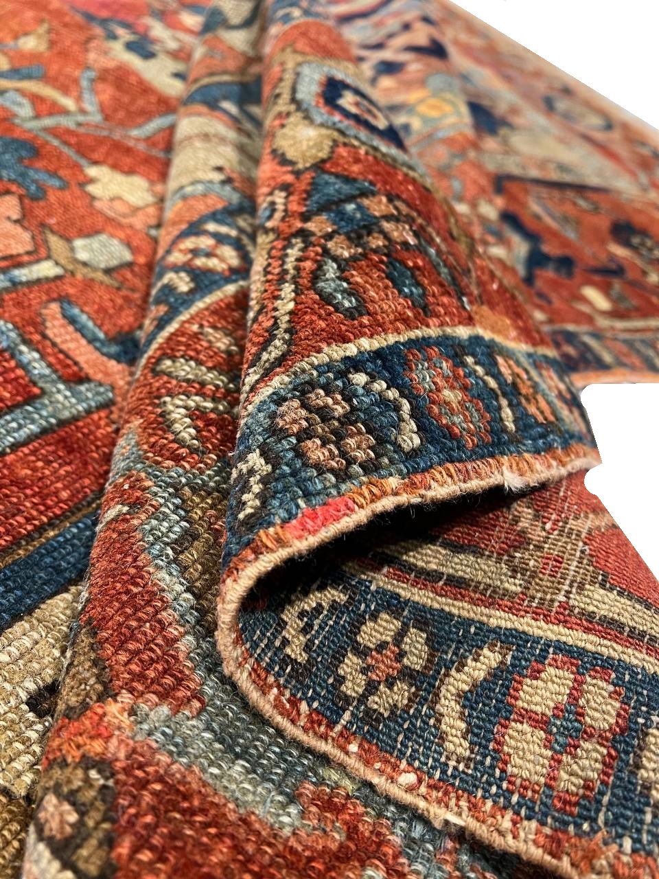 Larger size area rugs from this area were more common a few decades earlier than the date of production of this rug. This rug was created in the 1920βs. Antique rugs of this size and scale were seldom produced in the area after the beginning of the 20th century, making this one unique from a historical perspective. Due to its larger size for the period, it was more than likely a commissioned custom made rug.