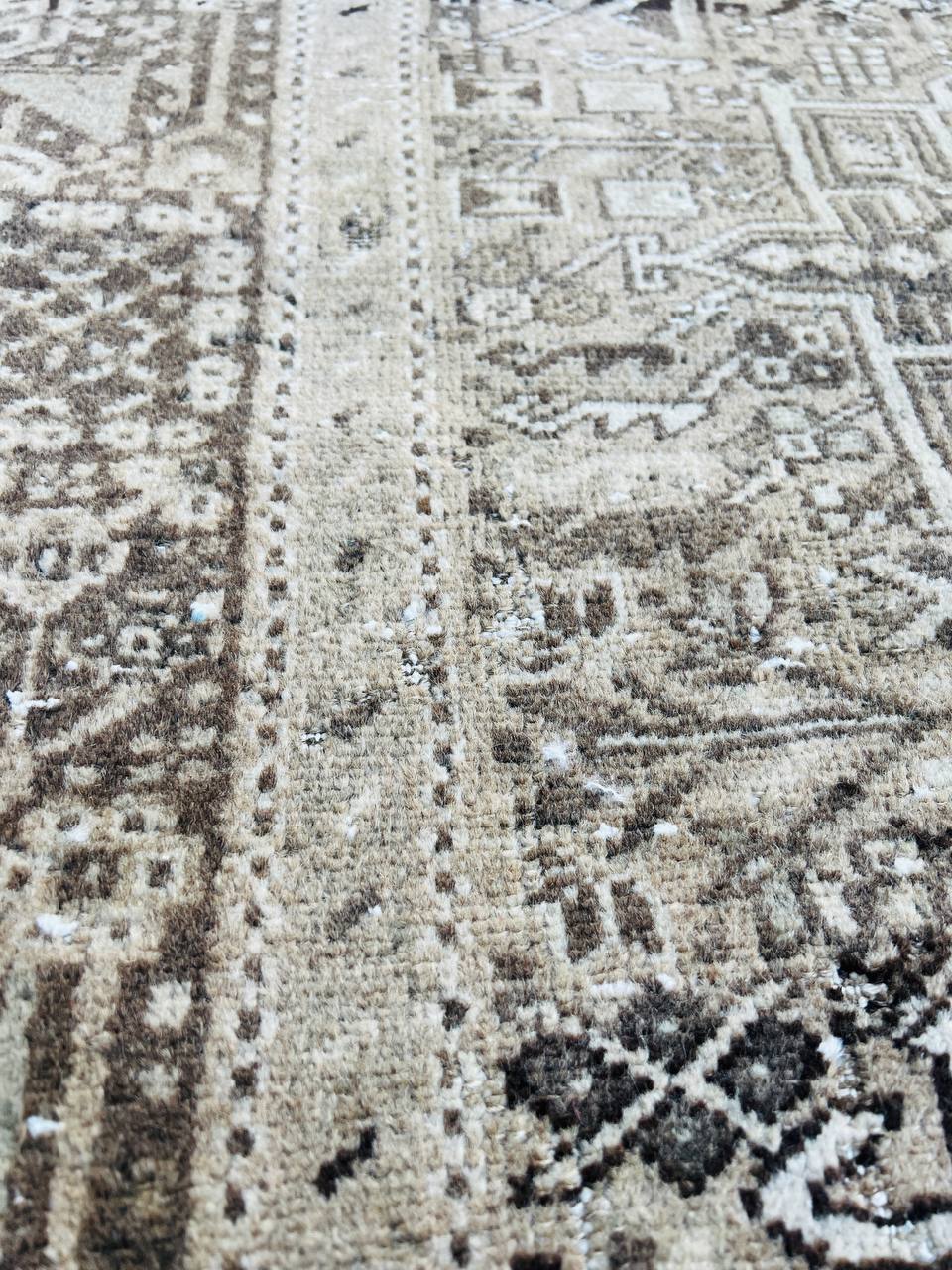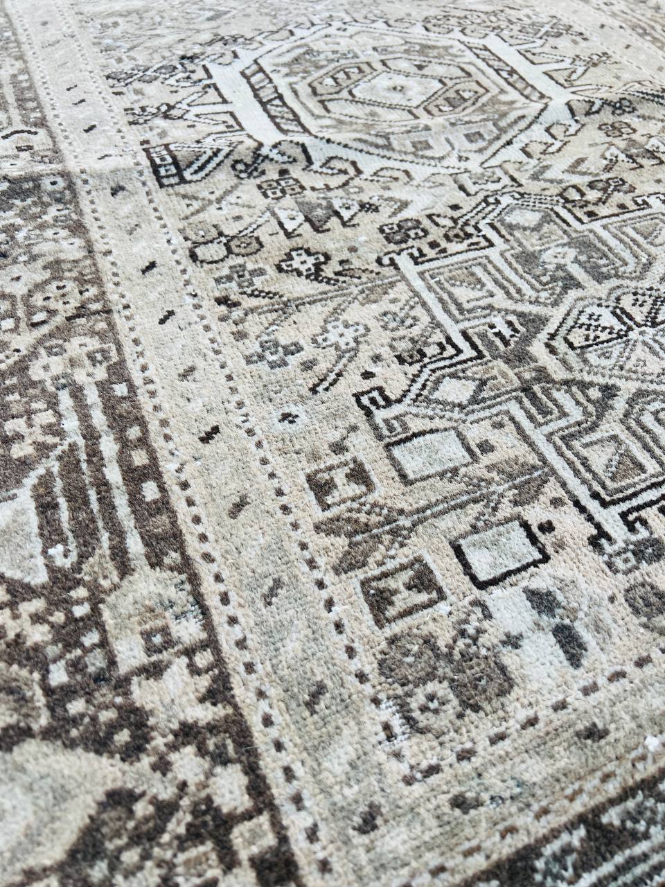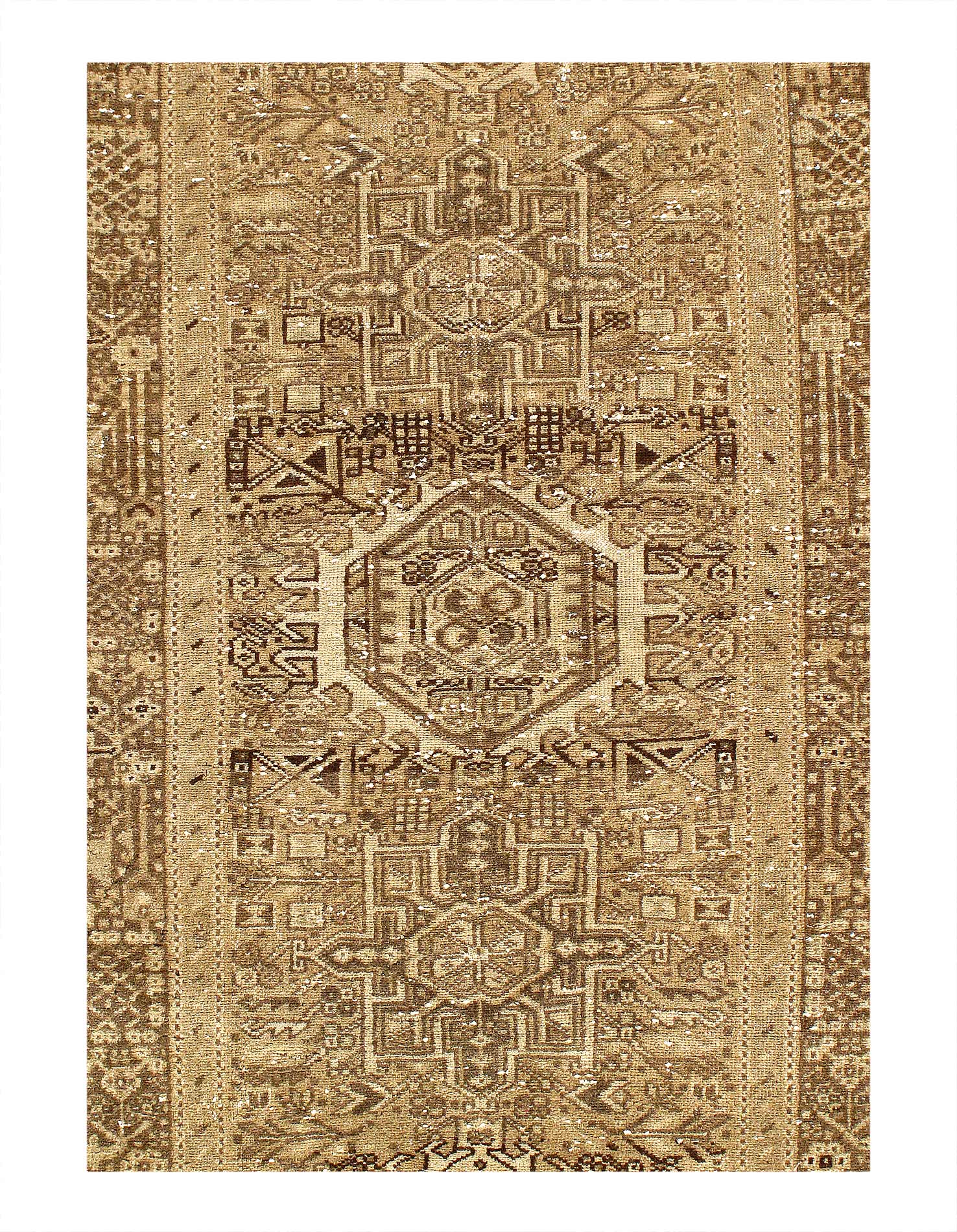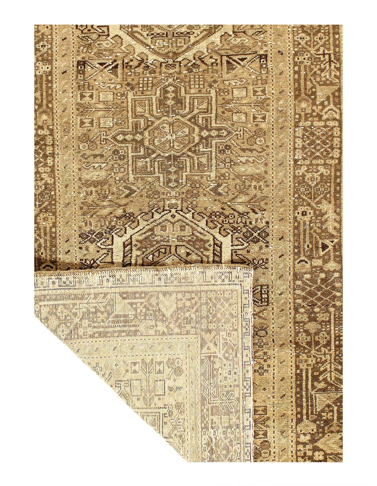 Established with luxurious jewel tones, this antique Karaje rug from Persia is a striking piece. It is engagingly accented with a brilliant white and tangerine tone, which play off of the cool-toned turquoise and navy elements to create an alluring design. This 1920โs beauty features a generous number of floral borders that seamlessly draw the eye to the center of the work. Its overall theme can be described as tribal, with the focal point featuring a diamond surrounded by florets of varying sizes and shapes, set in a field of beige / Brown .