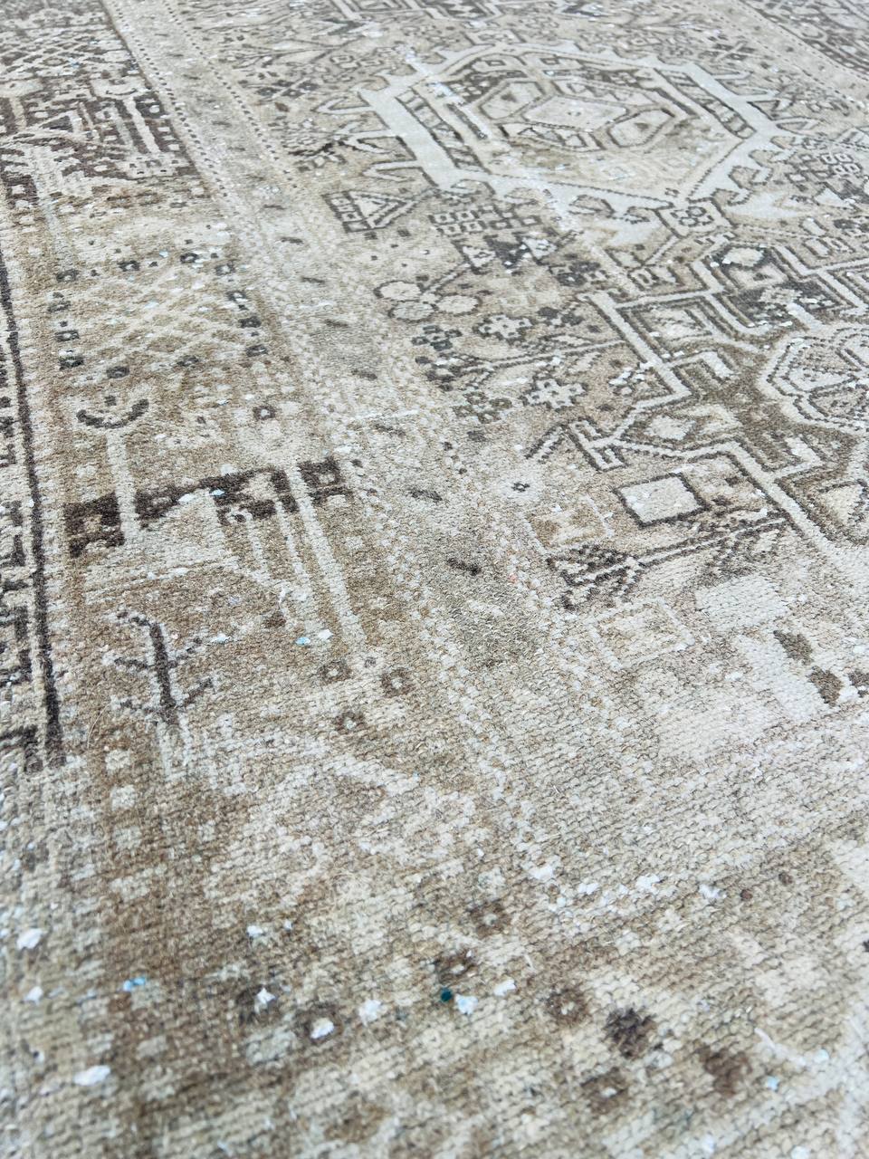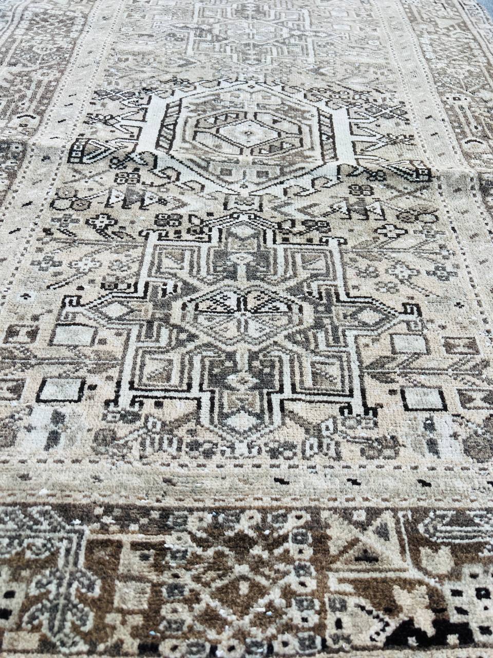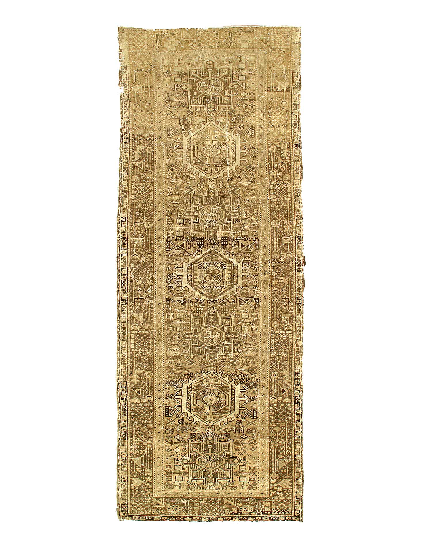 Established with luxurious jewel tones, this antique Karaje rug from Persia is a striking piece. It is engagingly accented with a brilliant white and tangerine tone, which play off of the cool-toned turquoise and navy elements to create an alluring design. This 1920โs beauty features a generous number of floral borders that seamlessly draw the eye to the center of the work. Its overall theme can be described as tribal, with the focal point featuring a diamond surrounded by florets of varying sizes and shapes, set in a field of beige / Brown .