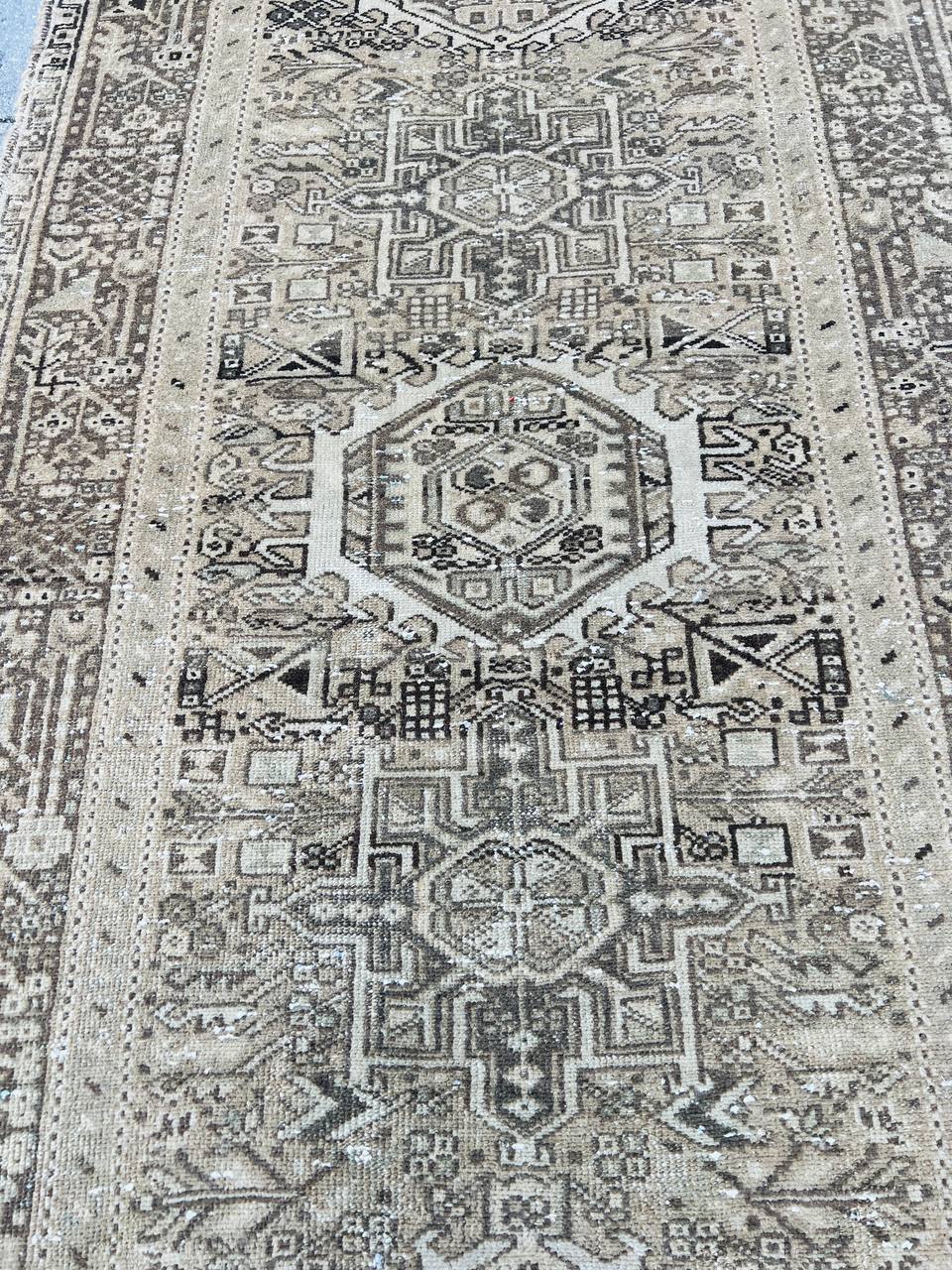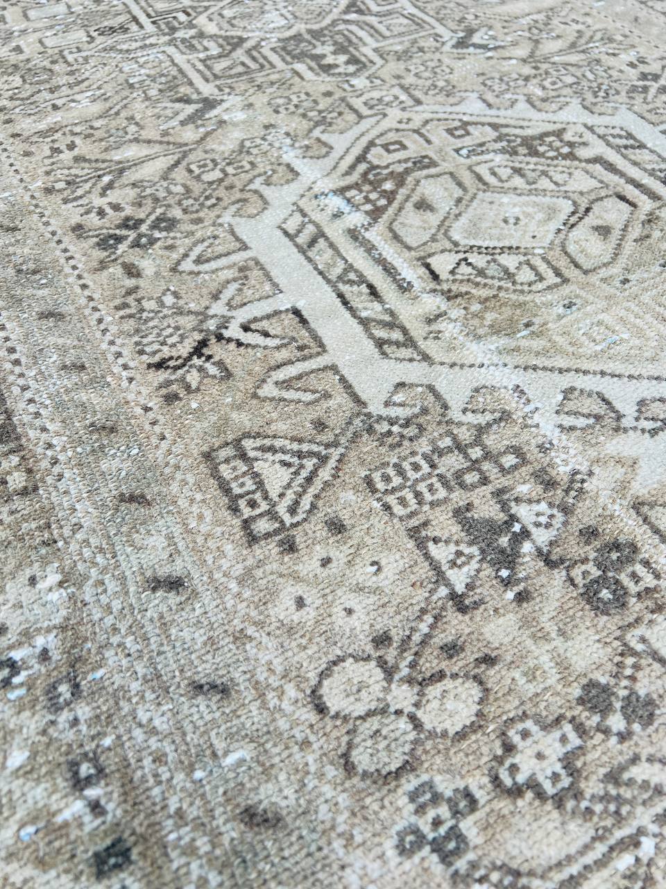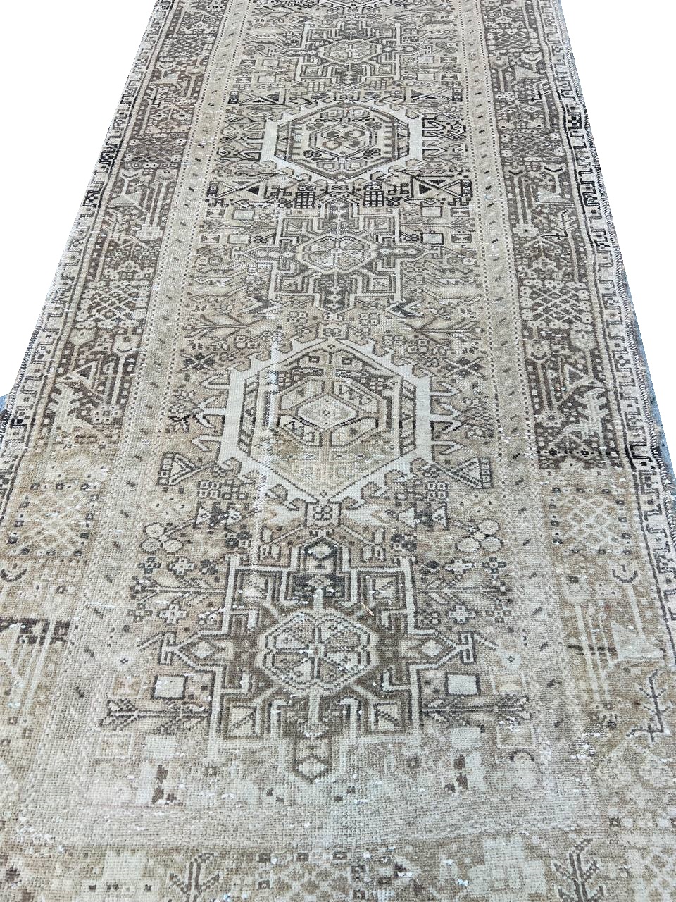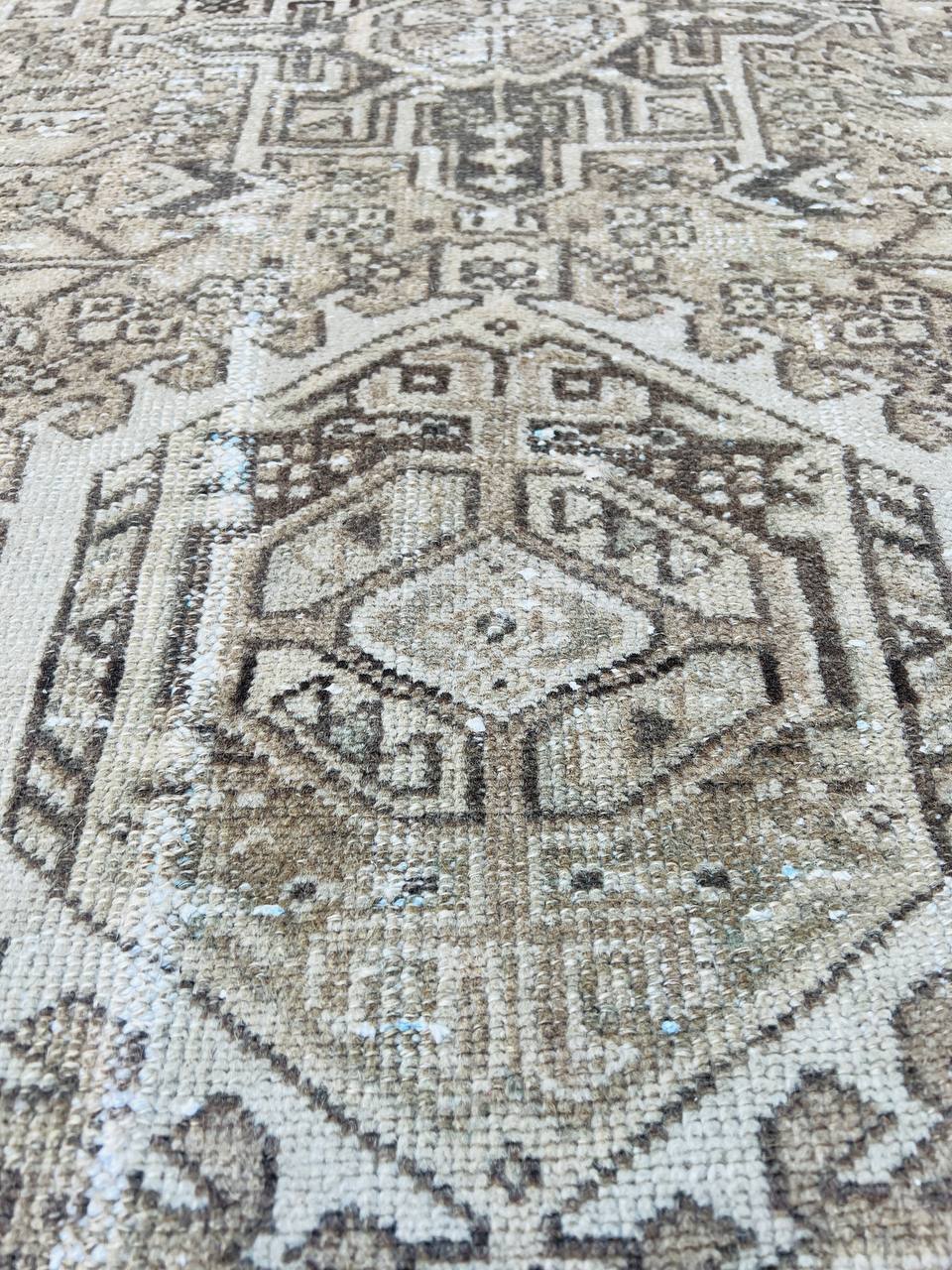 Established with luxurious jewel tones, this antique Karaje rug from Persia is a striking piece. It is engagingly accented with a brilliant white and tangerine tone, which play off of the cool-toned turquoise and navy elements to create an alluring design. This 1920โs beauty features a generous number of floral borders that seamlessly draw the eye to the center of the work. Its overall theme can be described as tribal, with the focal point featuring a diamond surrounded by florets of varying sizes and shapes, set in a field of beige / Brown .