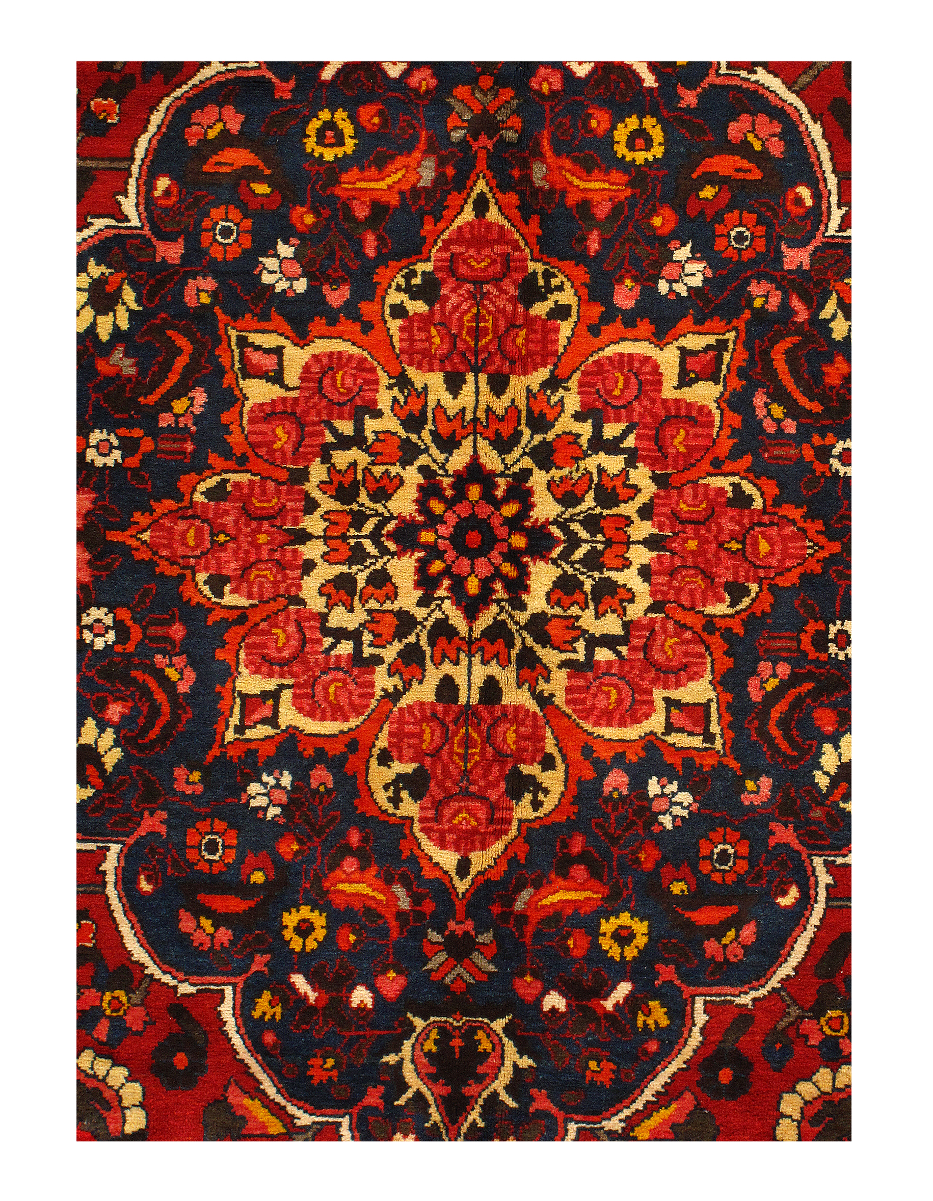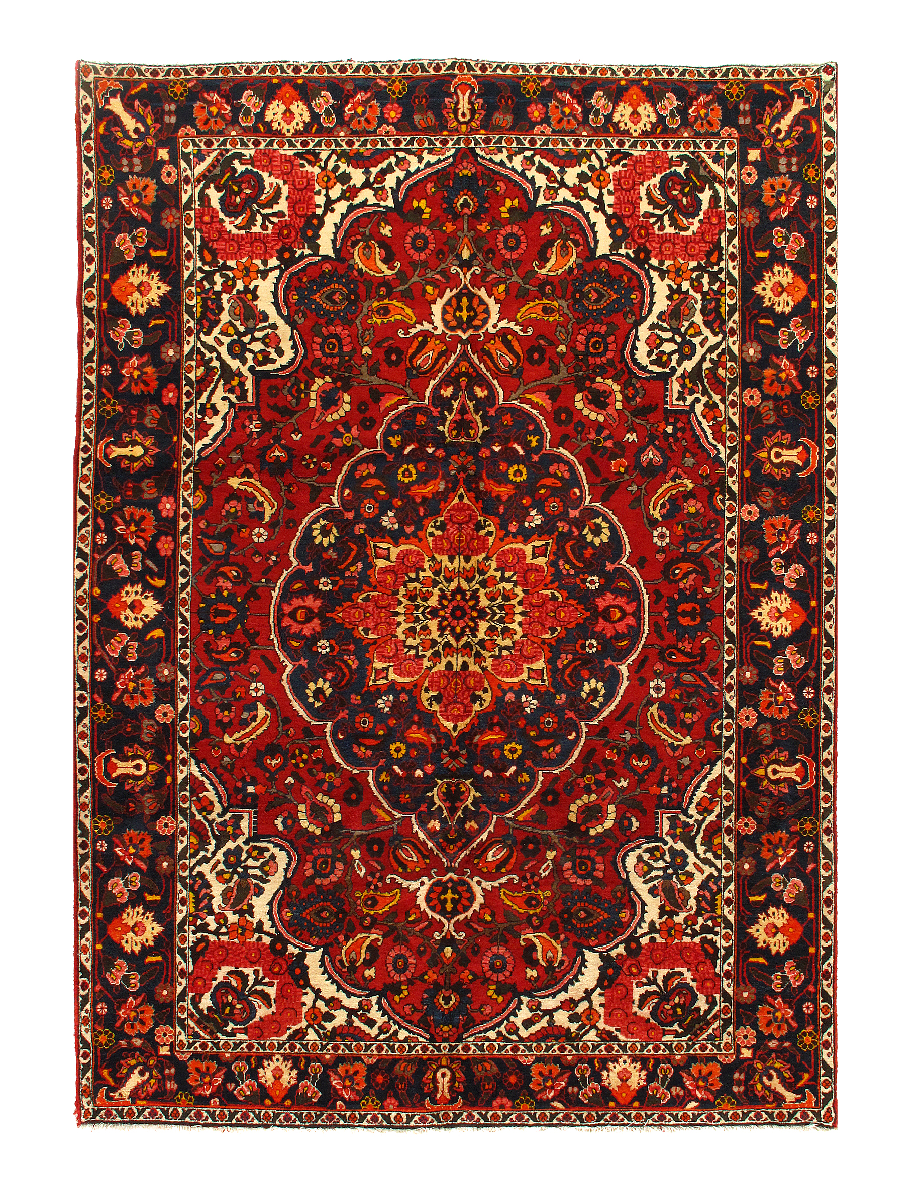 Offered is a gorgeous Persian Bakhtiari area rug. The luxurious hand-knotted pile is made from very fine lamb's wool and features a traditional Bakhtiari motif throughout. Handmade hand-knotted lamb's wool on a cotton foundation. This rug has a dense, soft pile, and excellent quality, to ensure that you will enjoy the look and feel of your rug for years to come. Made in Persia This rug has a dense, soft pile, and excellent quality, to ensure that you will enjoy the look and feel of your rug for years to come.
