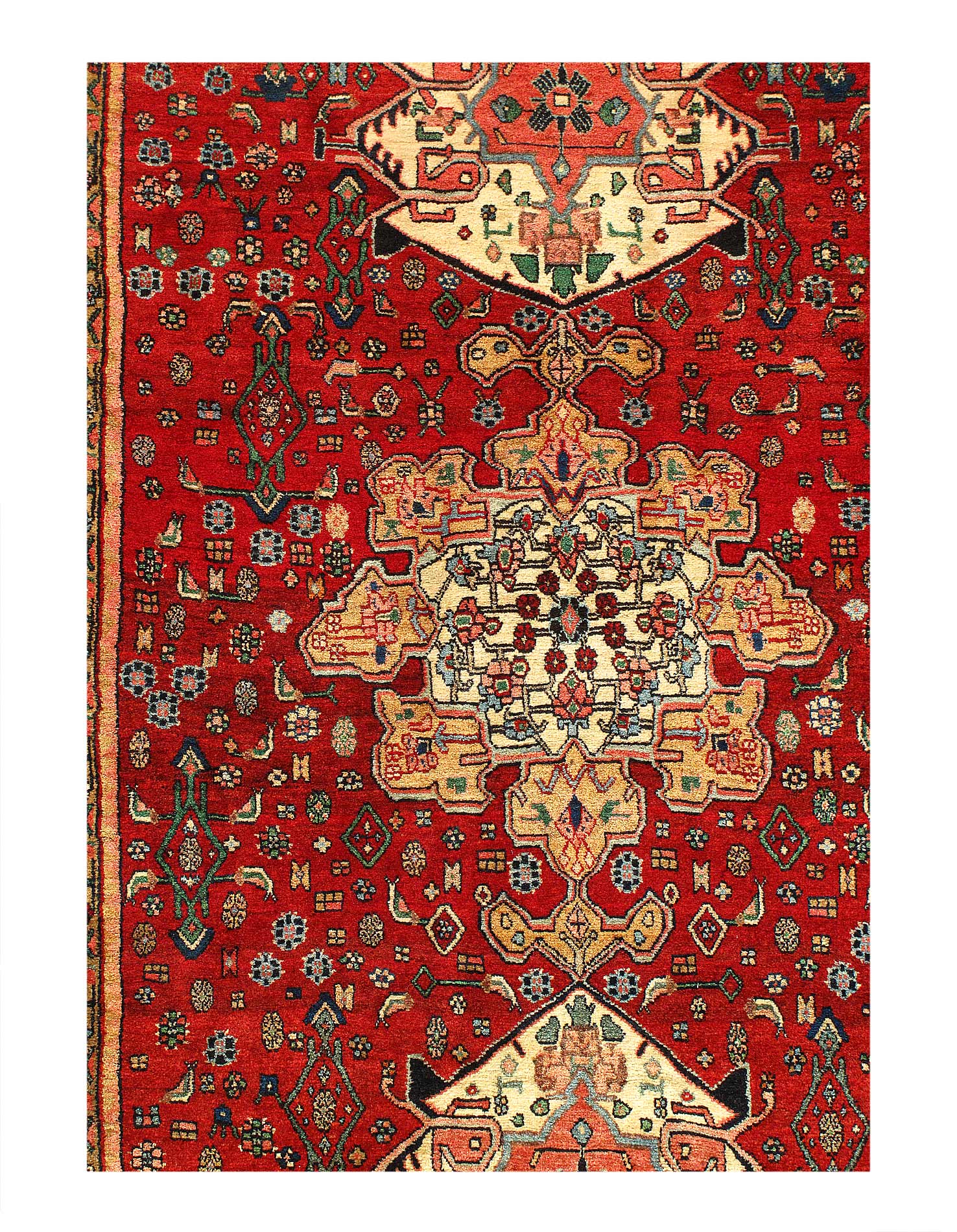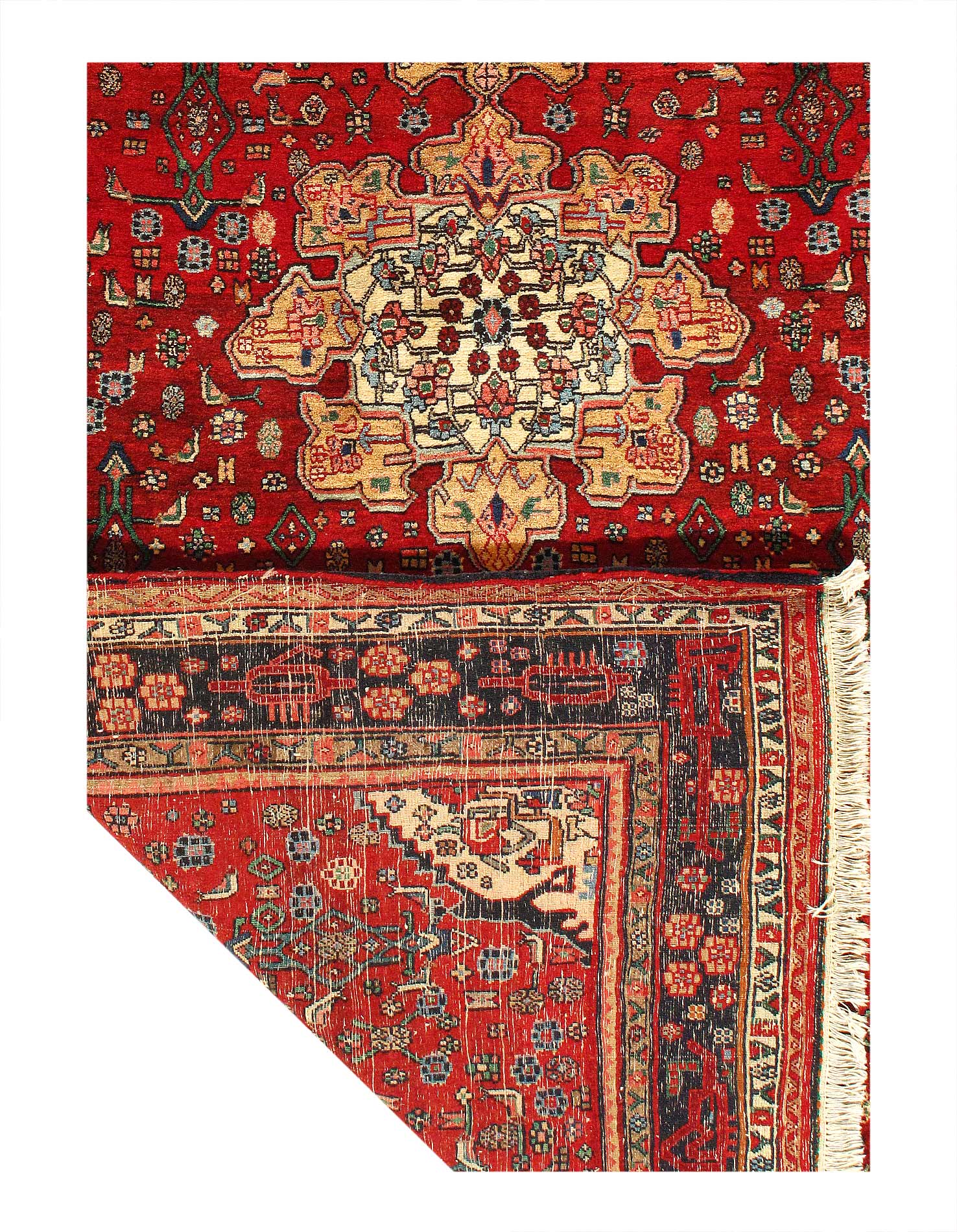 This rug from the town of Bidjar demonstrate this more than any other type of rug. The techniques of the weavers who make Bidjar rugs result in uniquely stiff rug. Lamb's wool. From Persia.