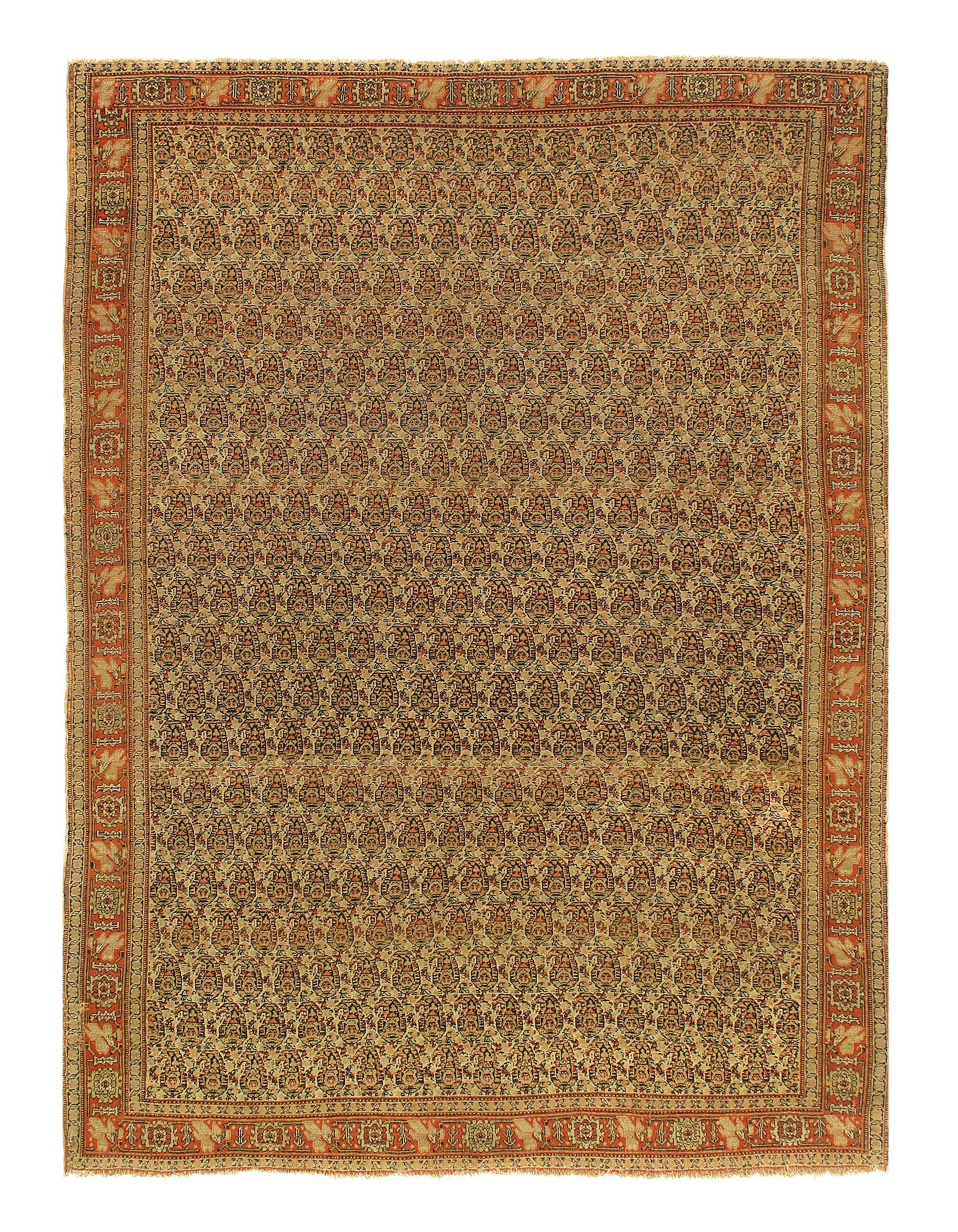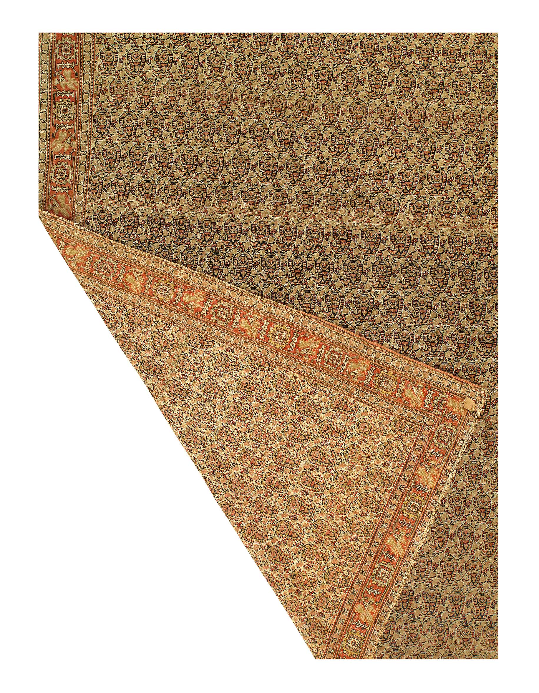 Antique Senneh rugs are one of the most distinctive of all Persian Rugs. Even though the designs are often copied by Bidjar Rugs and Tabriz Rugs but just touching the rugs . Antique Senneh rugs use very tightly spun fine mountain wool. The pile is wondrously silky but the back is scratchy so much so that people compare the backs to sandpaper. Once you eel it it it is unmistakable thereafter. Antique Senneh rugs are fine and durable and are most appreciated by people who know Persian Rugs. The new Senneh rugs are completely diferent.
