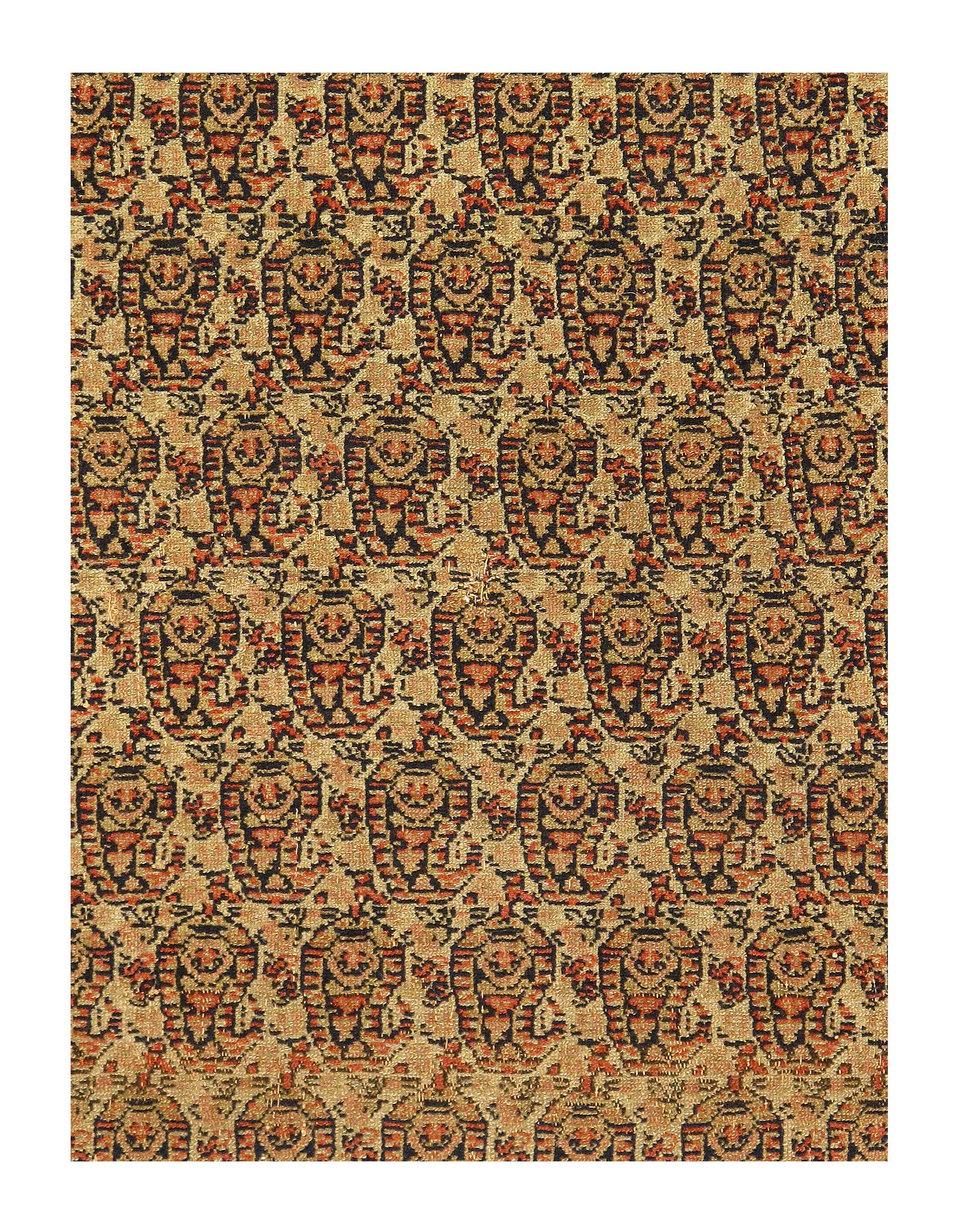 The finely woven Senneh kilims are slit tapestries of the highest quality. Their small-scale borders are carried around the ends, as they are typically in pile carpets but rarely in such weavings. Senneh seems to have been a favourite place of manufacture for saddle cloths, those in pile usually provided with a two-slope arch. Although the town of Senneh has given its name to the asymmetrical Persian knot, it is the Turkish, or symmetrical, knot, that is actually used there,