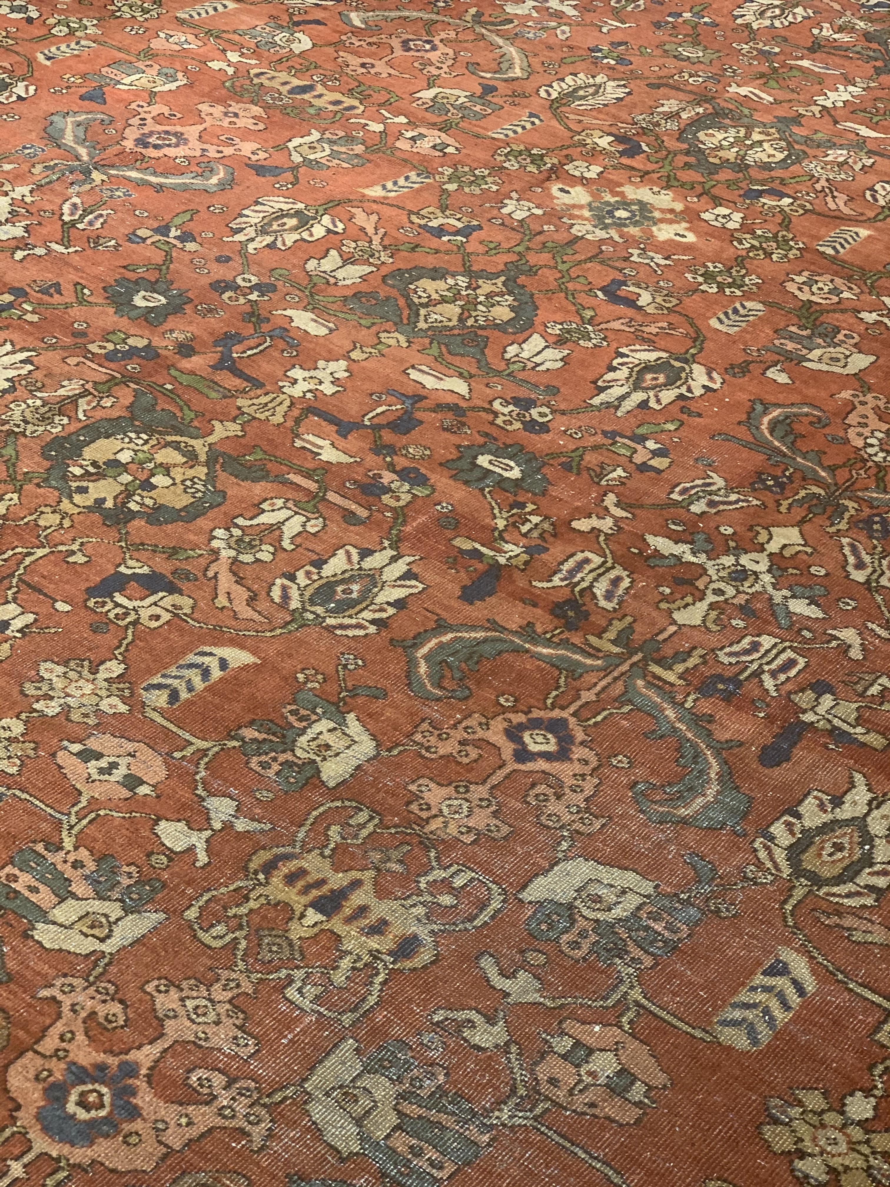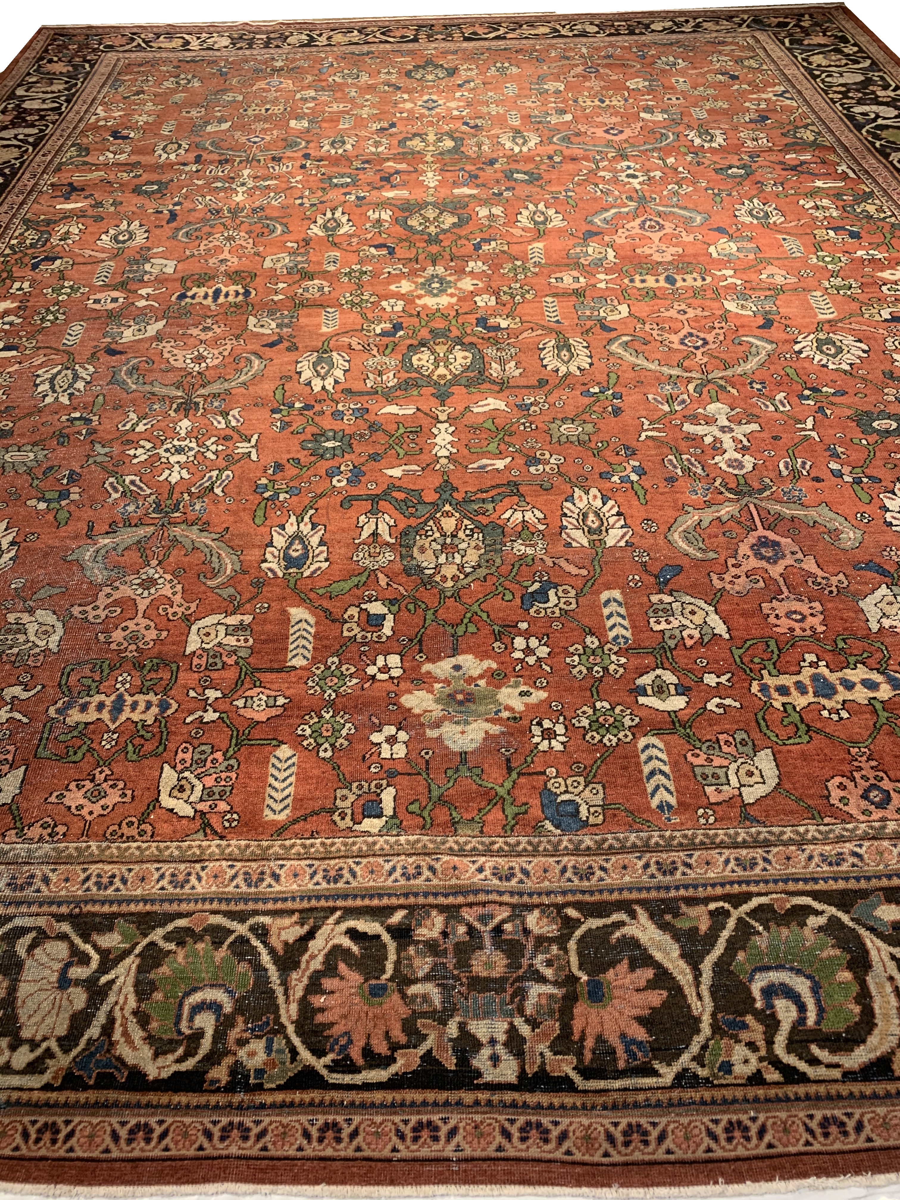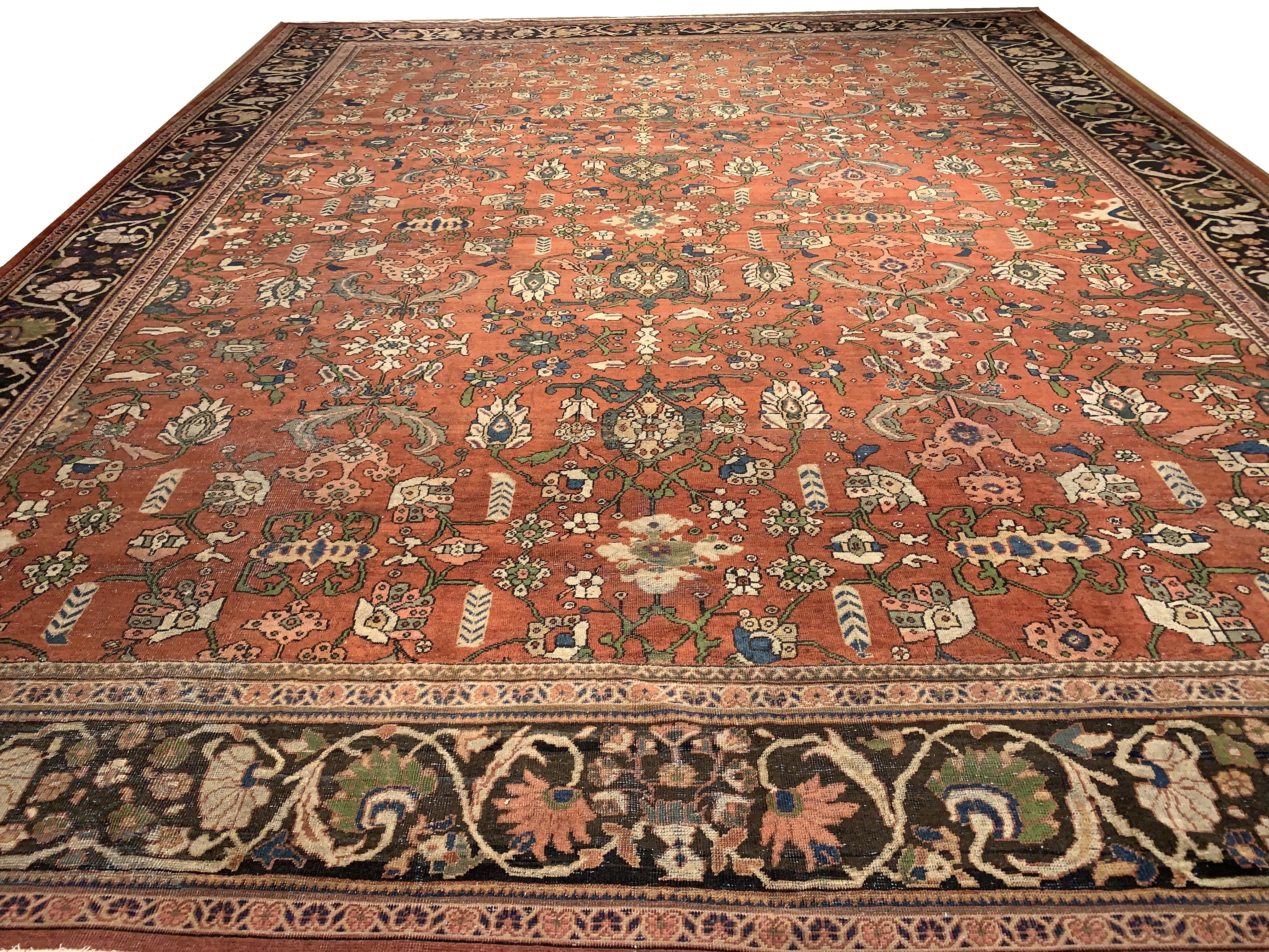 Beautiful Large Oversized Antique Persian Rust Color Sultanabad Area Rug, Persia, Late 19th Century – This antique Persian Sultanabad rug was woven during the late 19th century and features a traditional rust color palette as well as natural inspired design elements.