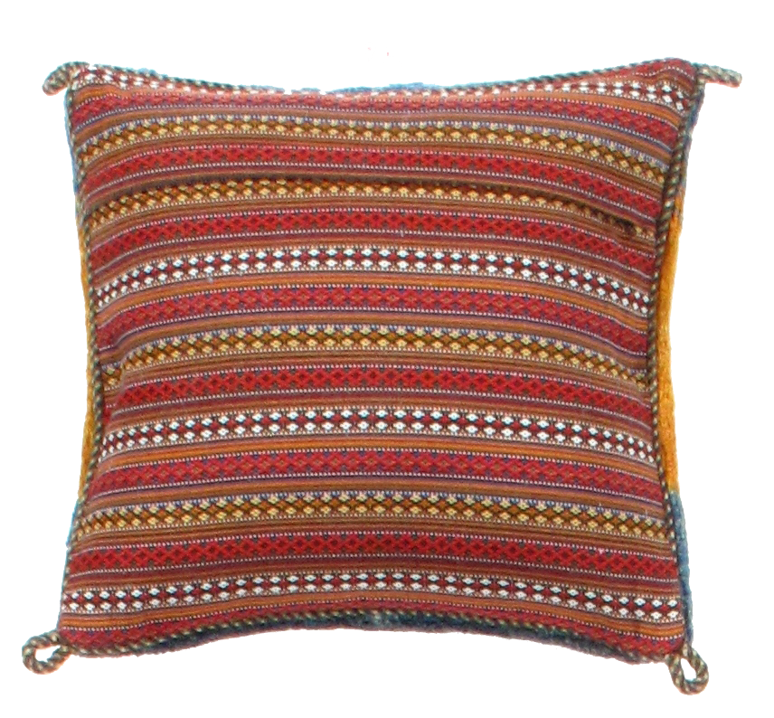 The nice thing about this Gabbeh cushion is that it combines a kilim similar design with a soft and deep pile surface!