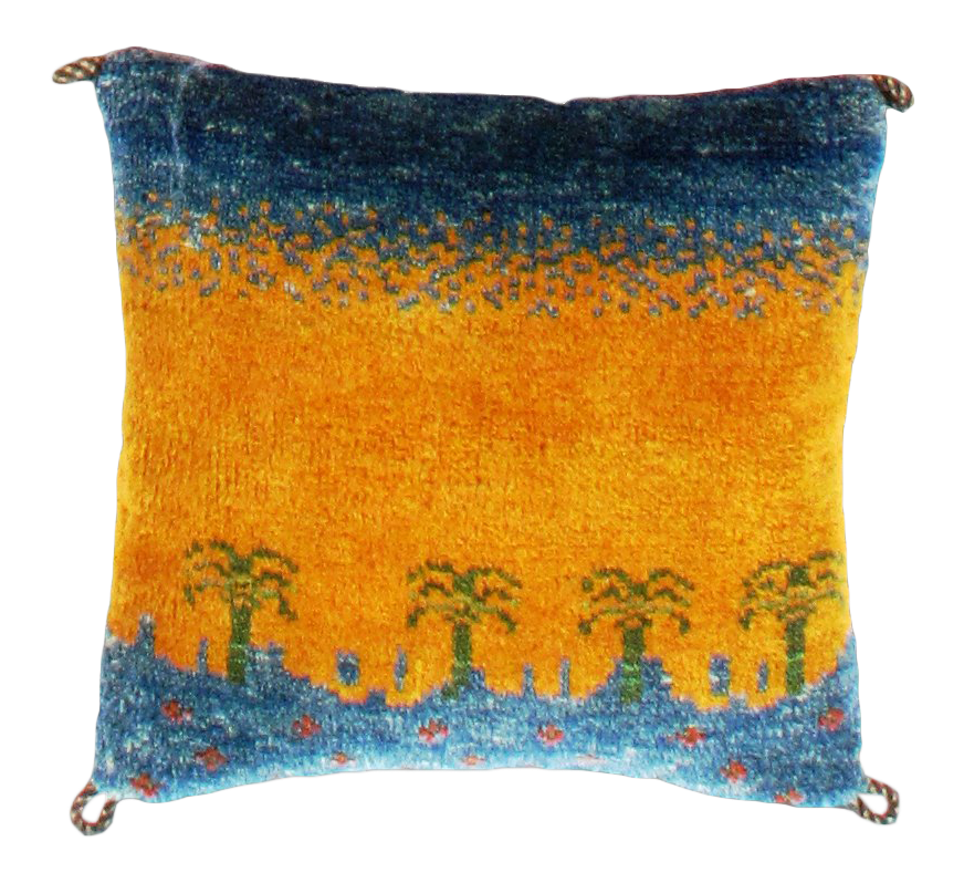 This Gabbeh cushion is made of high-quality old and rare Persian Gabbeh carpets in good workmanship. The Gabbeh carpets used for manufacturing The Persian nomadic Gabbeh carpet is produced like the Persian nomadic Kelim of pure sheep wool and natural colors. This Gabbeh pillow is an extra production, each Gabbeh cushion piece is unique!