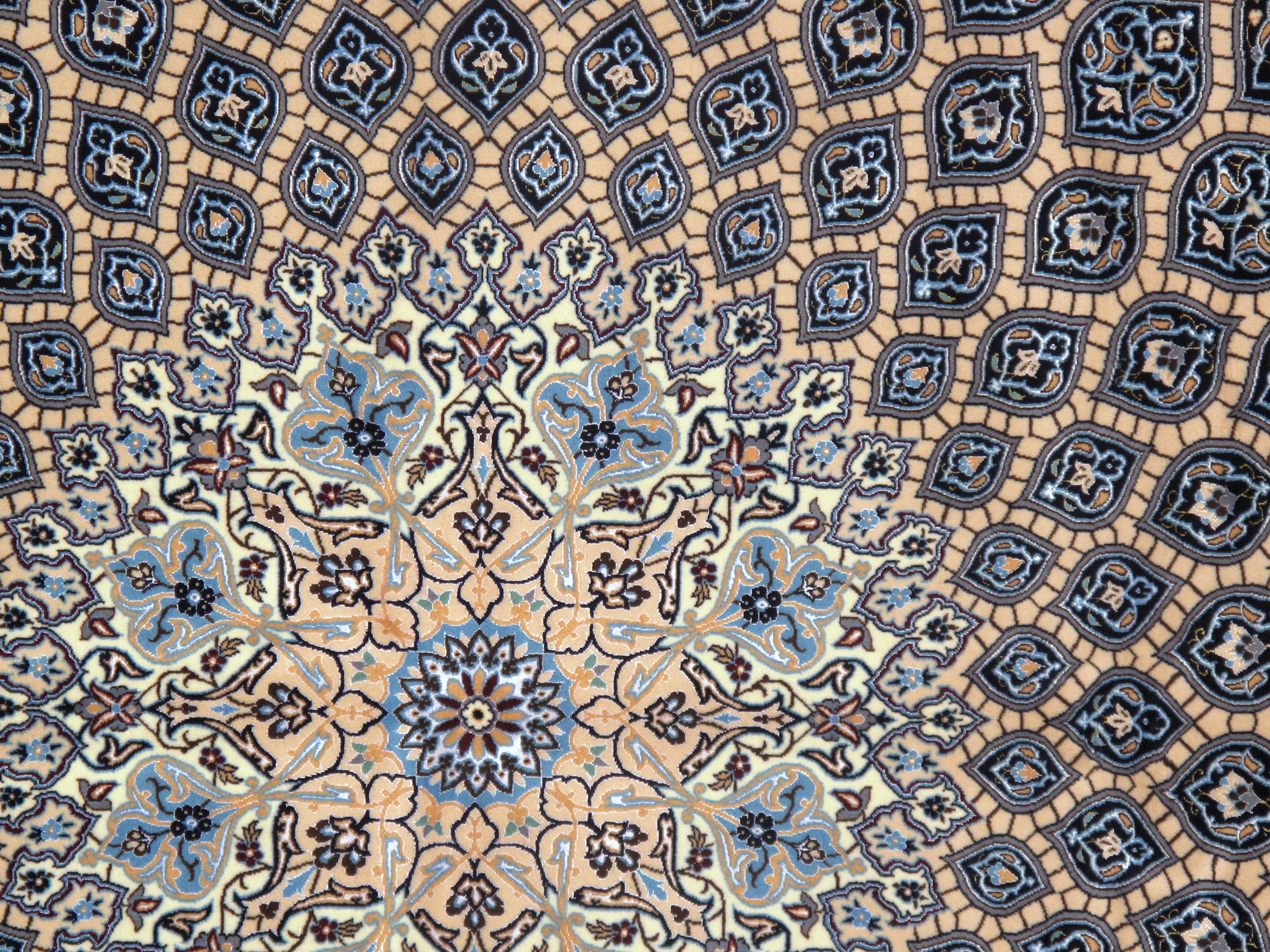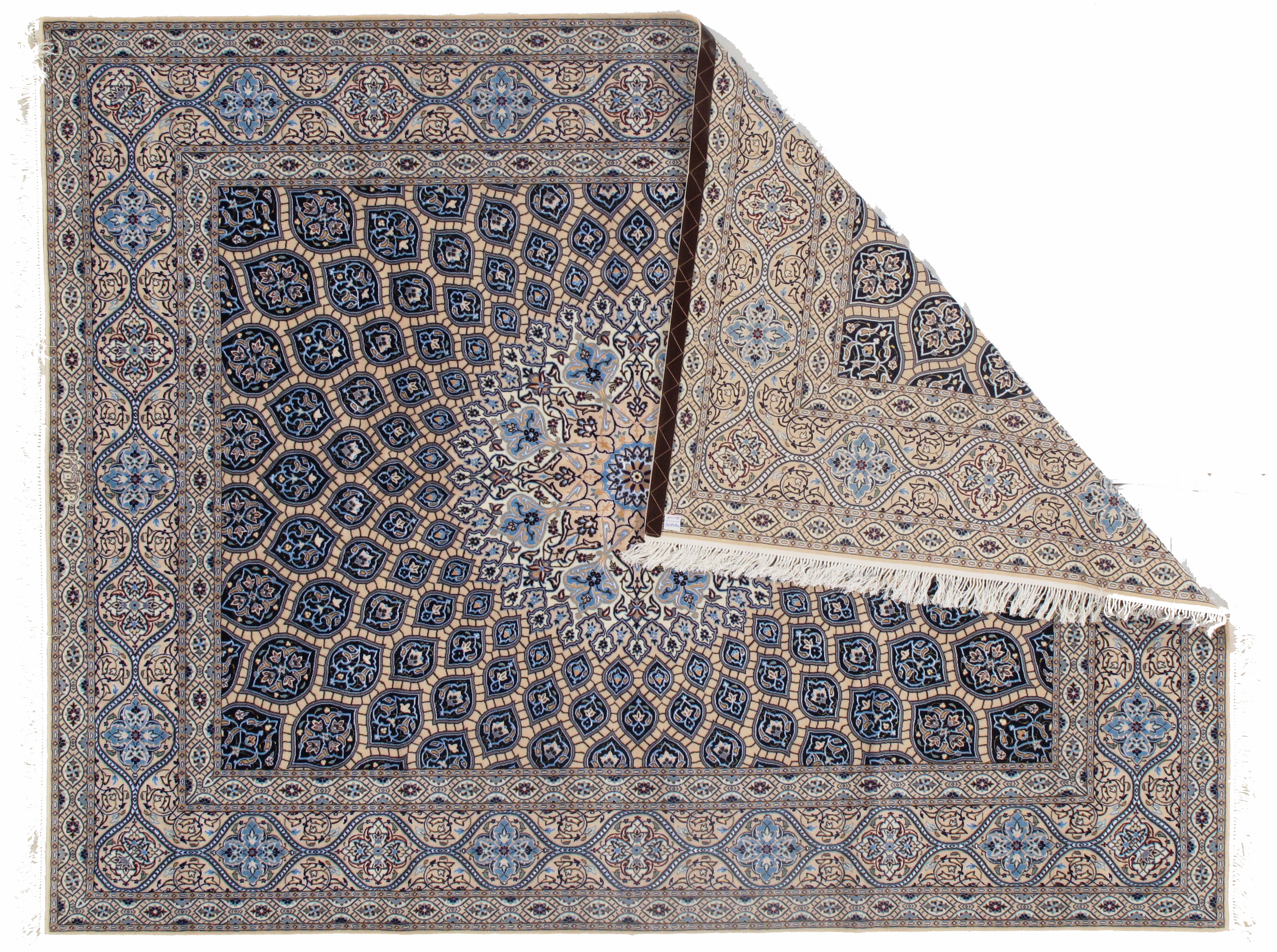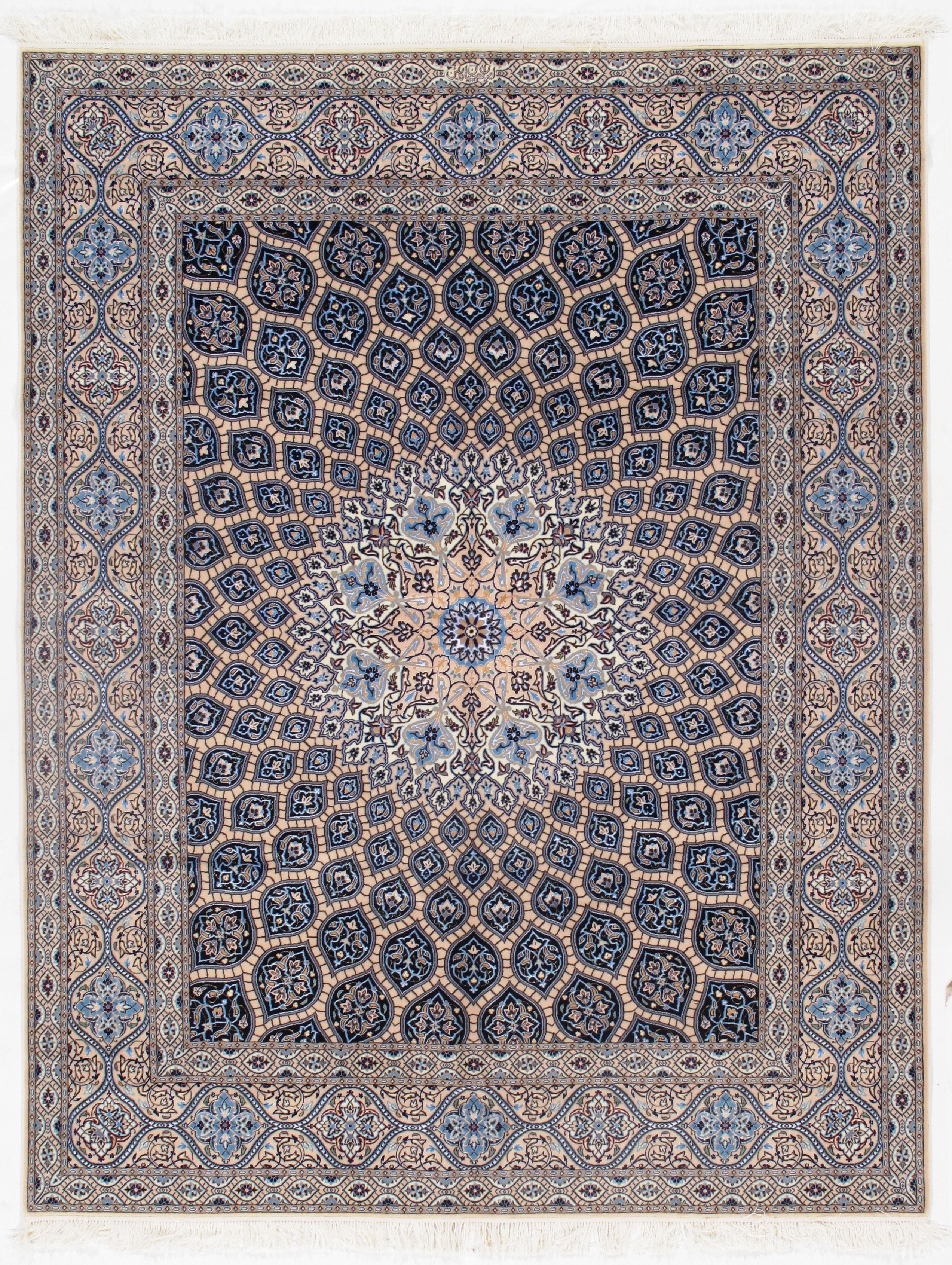 Beautiful Gombad hand knotted Nain rug made from wool and silk.