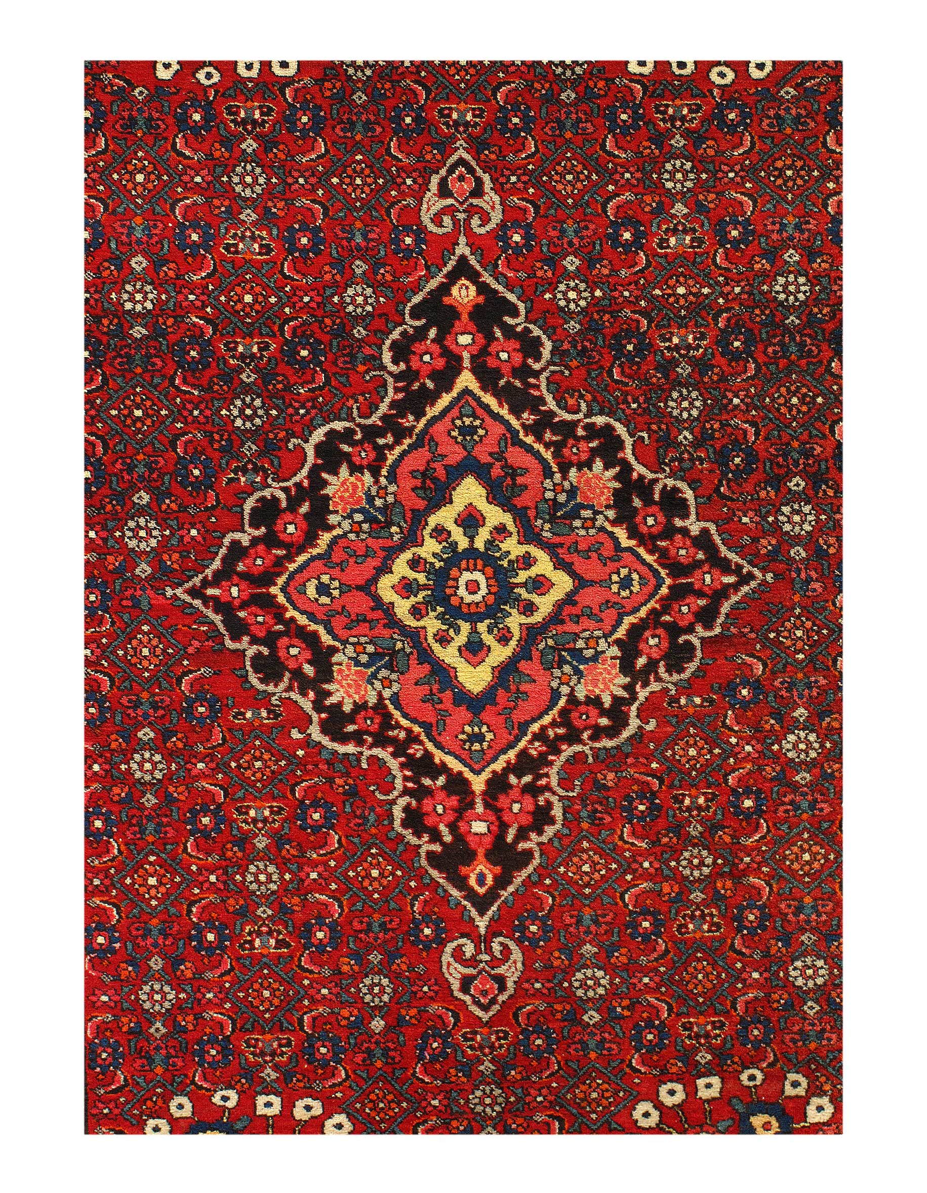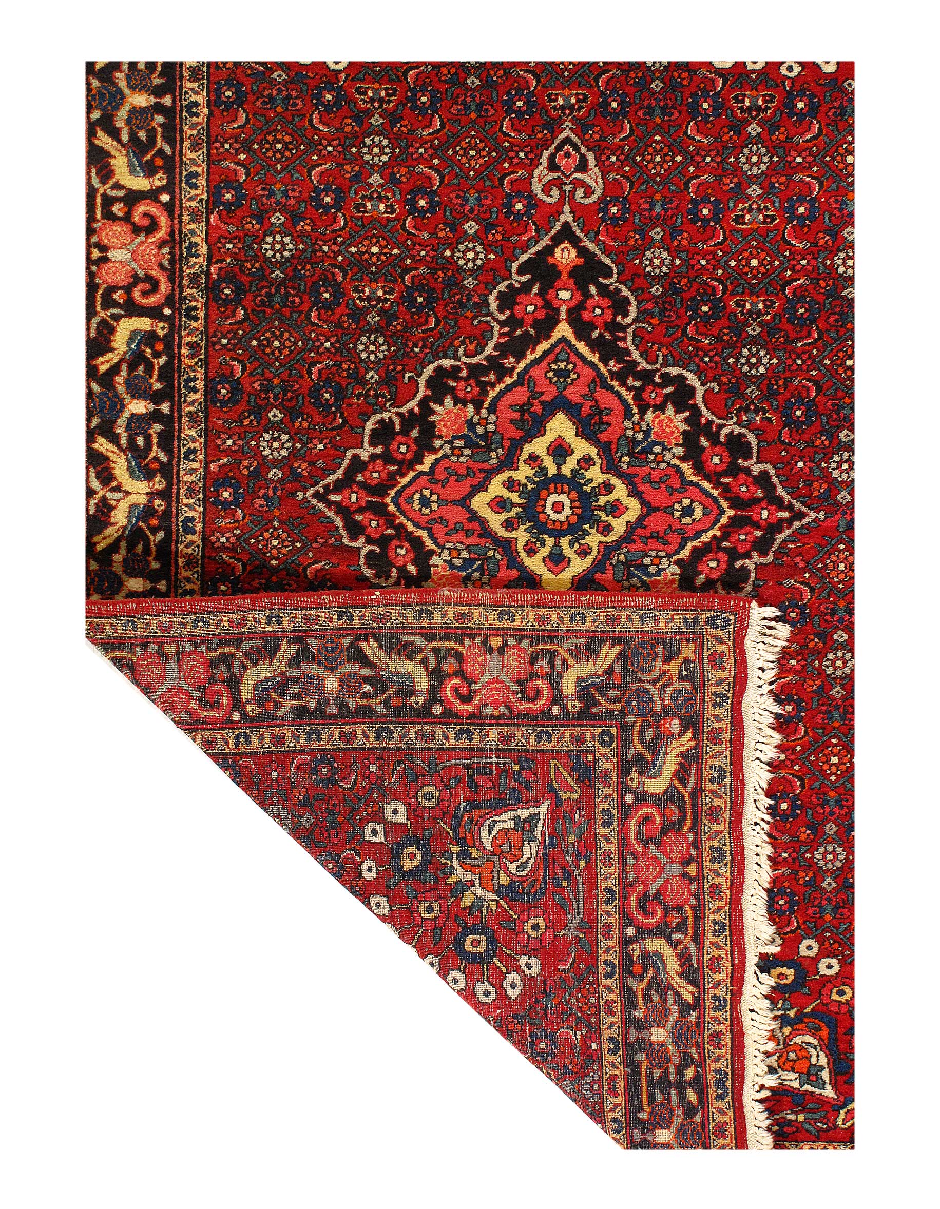 Bidjar rugs, produced in Northwest Iran are among the finest of Persian rugs by virtue of their design and technique. They cannot be identified readily by their patterns, for their repertoire is quite rich and varied. They are distinguished by primarily by their weave, which is perhaps the densest and most durable of all oriental rugs. Bidjar carpets were produced in a classical medallion format as well as in allover designs and pictorial or garden patterns. The quality of their wool is lustrous and soft, the drawing at times classically precise or wildly tribal. Some are attributable to Kurdish weavers living in the Bijar region.