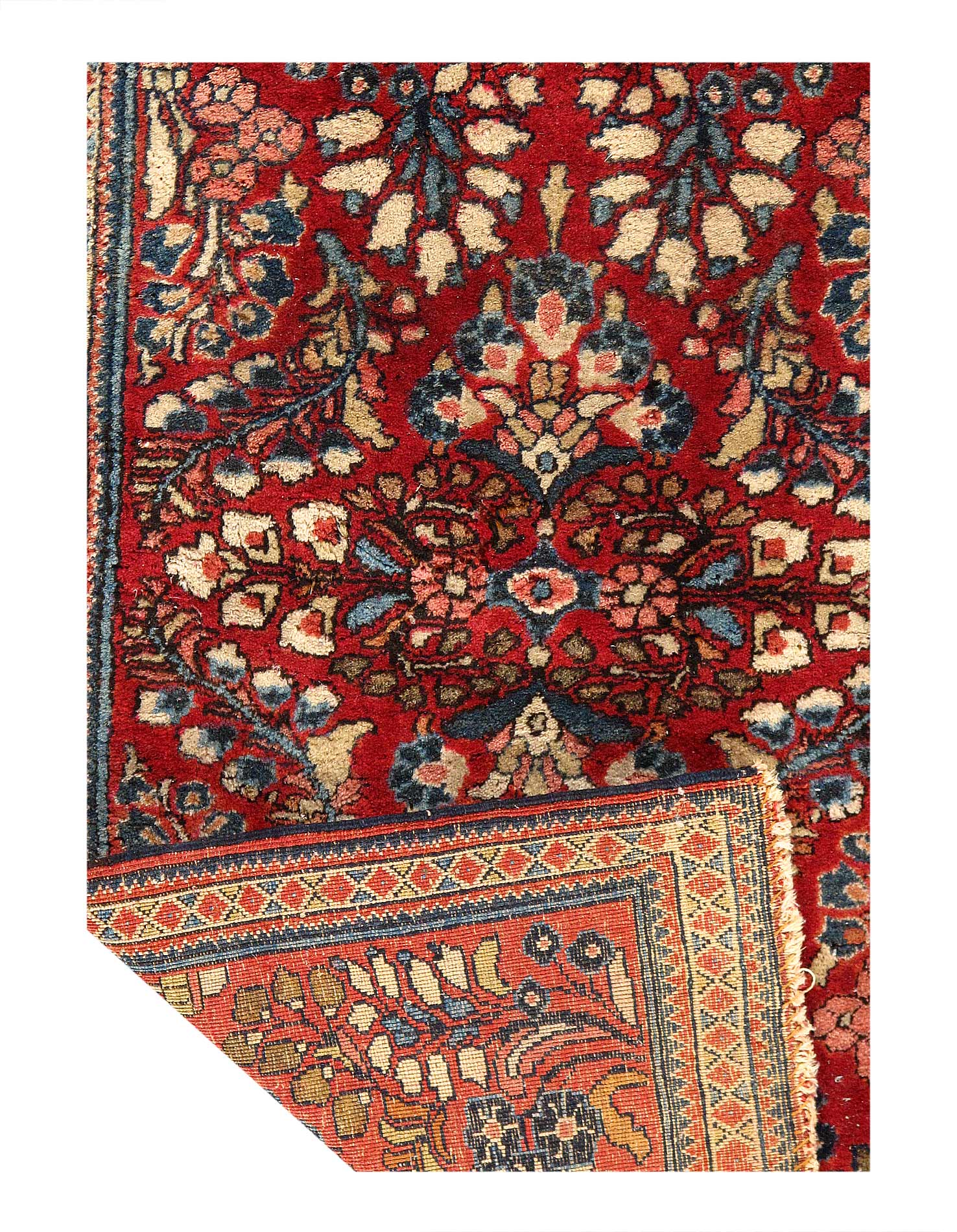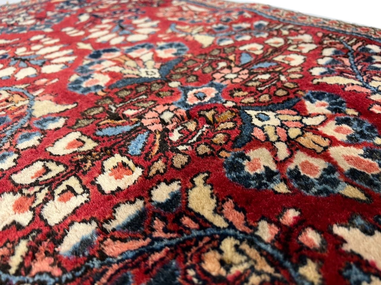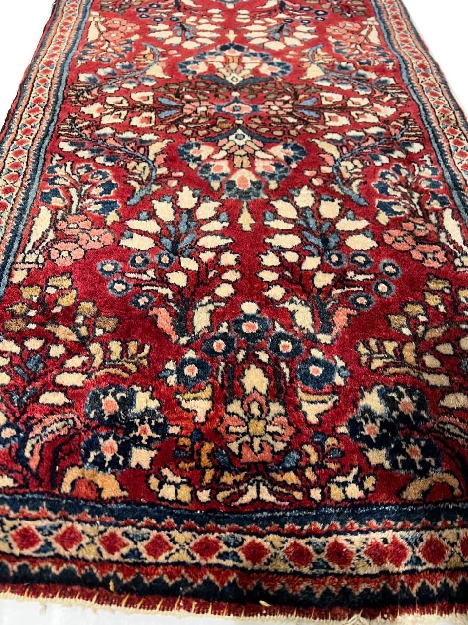 Antique Persian Sarouk rug. These vintage rugs bring traditional sophistication to your home. These rugs feature 100% Premium Lamb's Wool Pile hand-knotted into elegant designs, perfect for your elegant decor. Circa 1920.