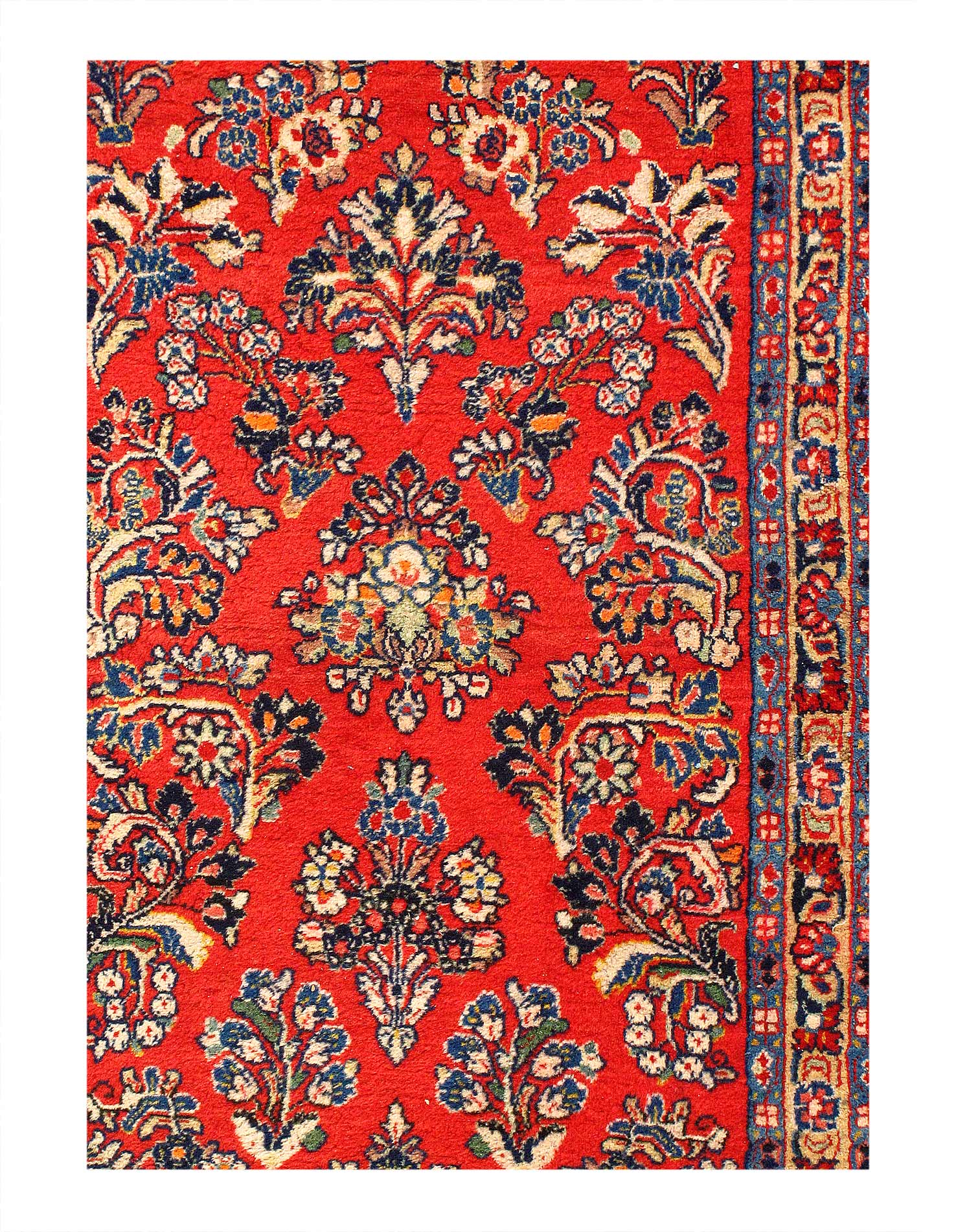 Antique Persian Sarouk rug. These vintage rugs bring traditional sophistication to your home. These rugs feature 100% Premium Lamb's Wool Pile hand-knotted into elegant designs, perfect for your elegant decor. Circa 1920.
